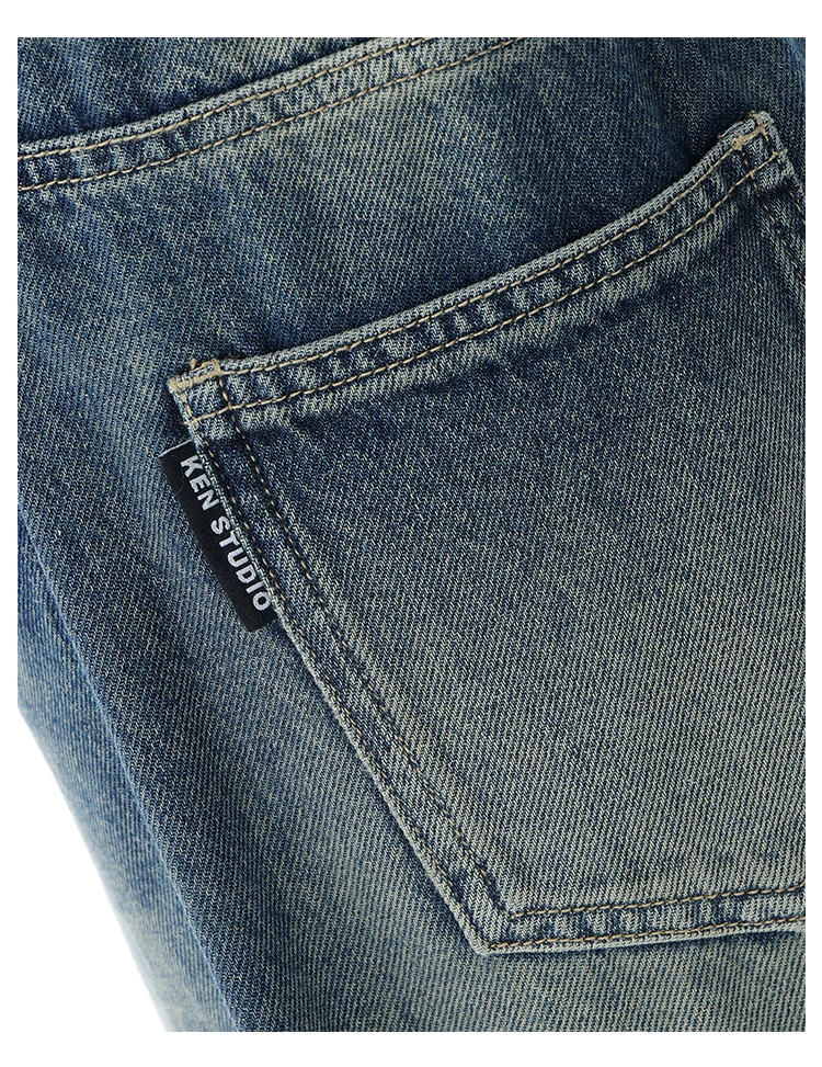 Quần jean nữ dáng thẳng, chất liệu nỉ lót lông, kiểu Mỹ cổ điển, giặt mài, mùa thu đông KEN STUDIO2025, quần ống rộng, dáng suông