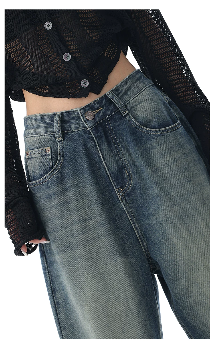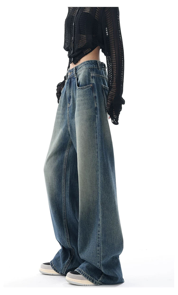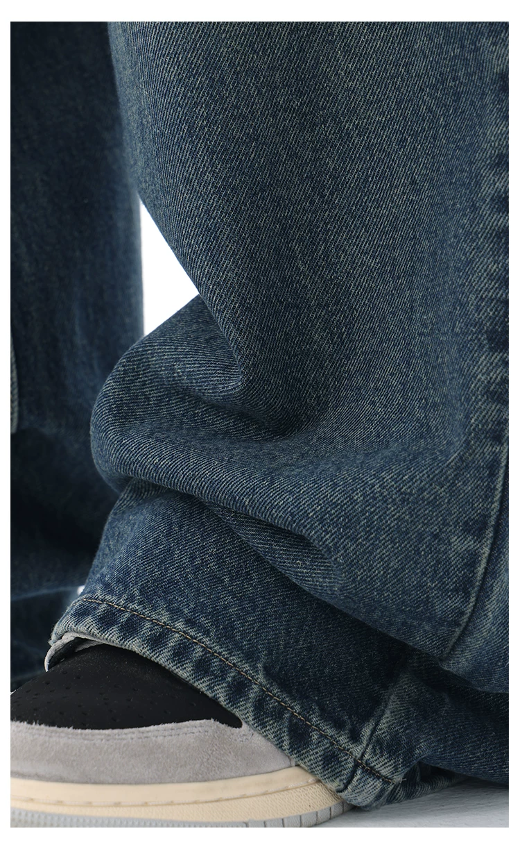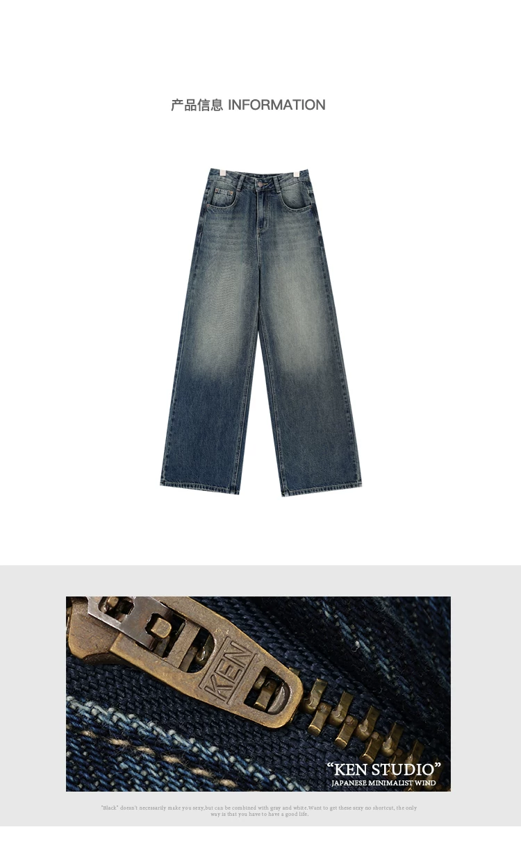 - Quần jean nữ dáng thẳng, chất liệu nỉ lót lông, kiểu Mỹ cổ điển, giặt mài, mùa thu đông KEN STUDIO2025, quần ống rộng, dáng suông