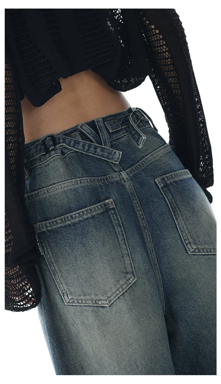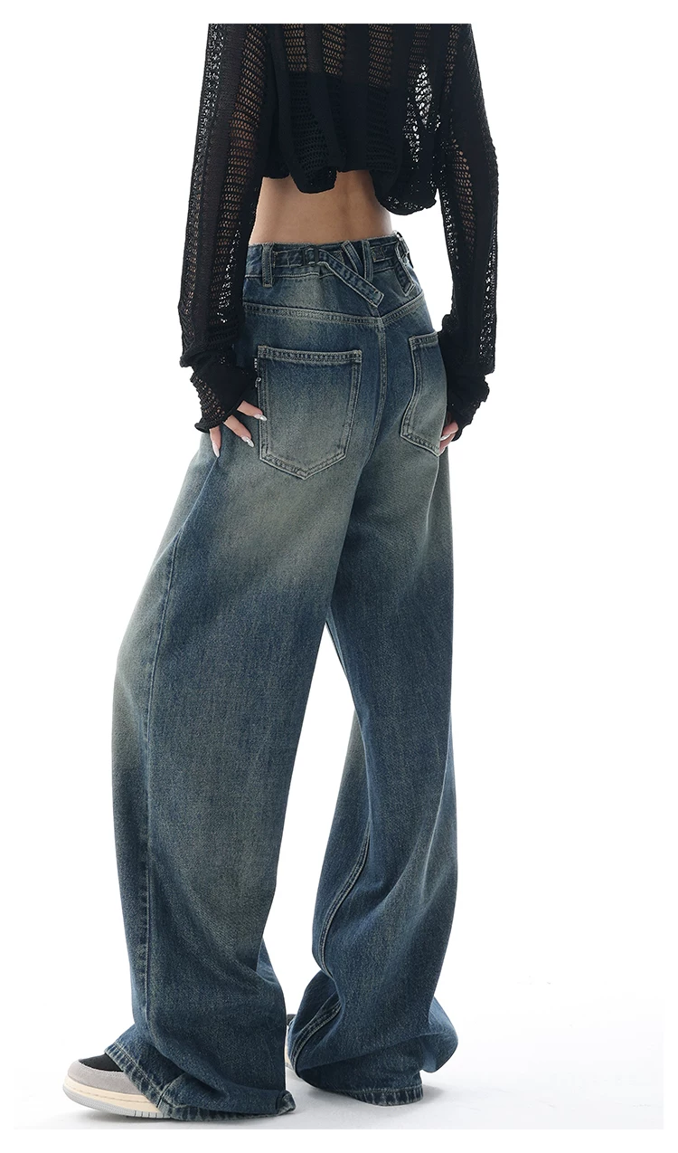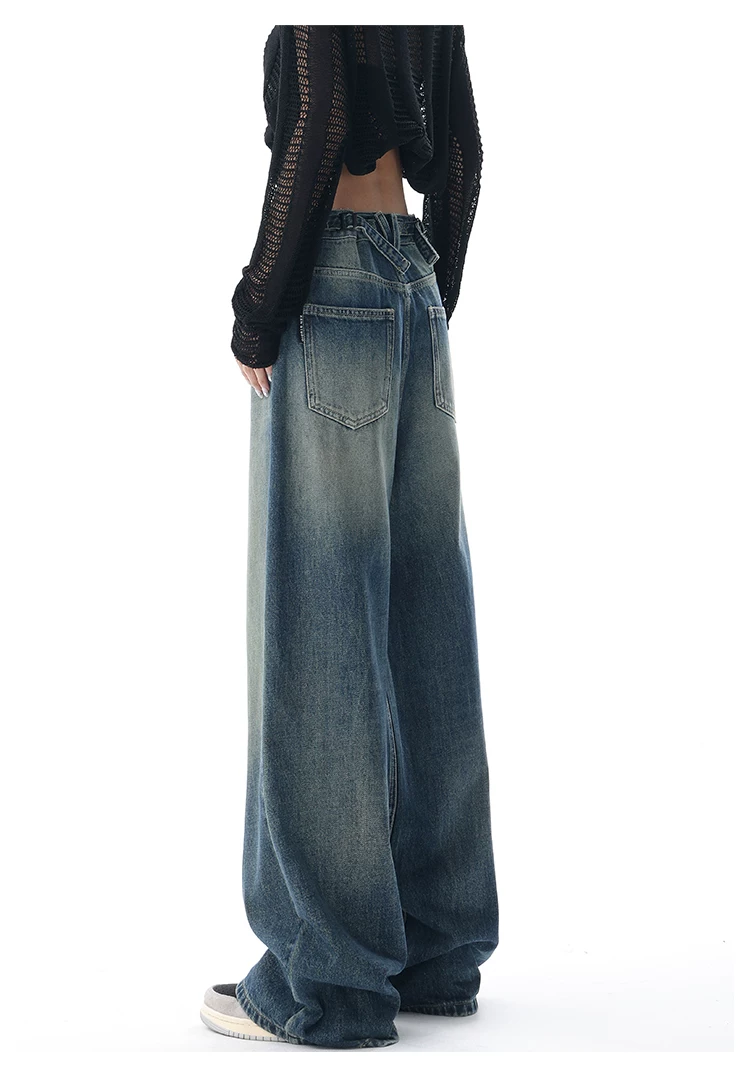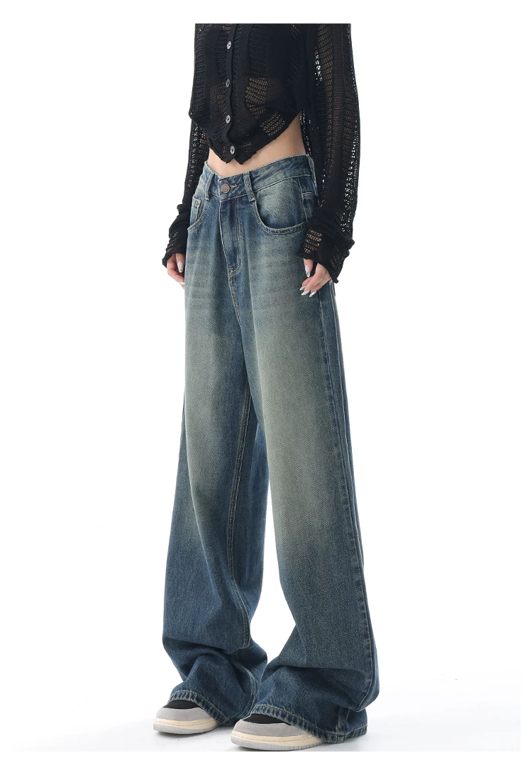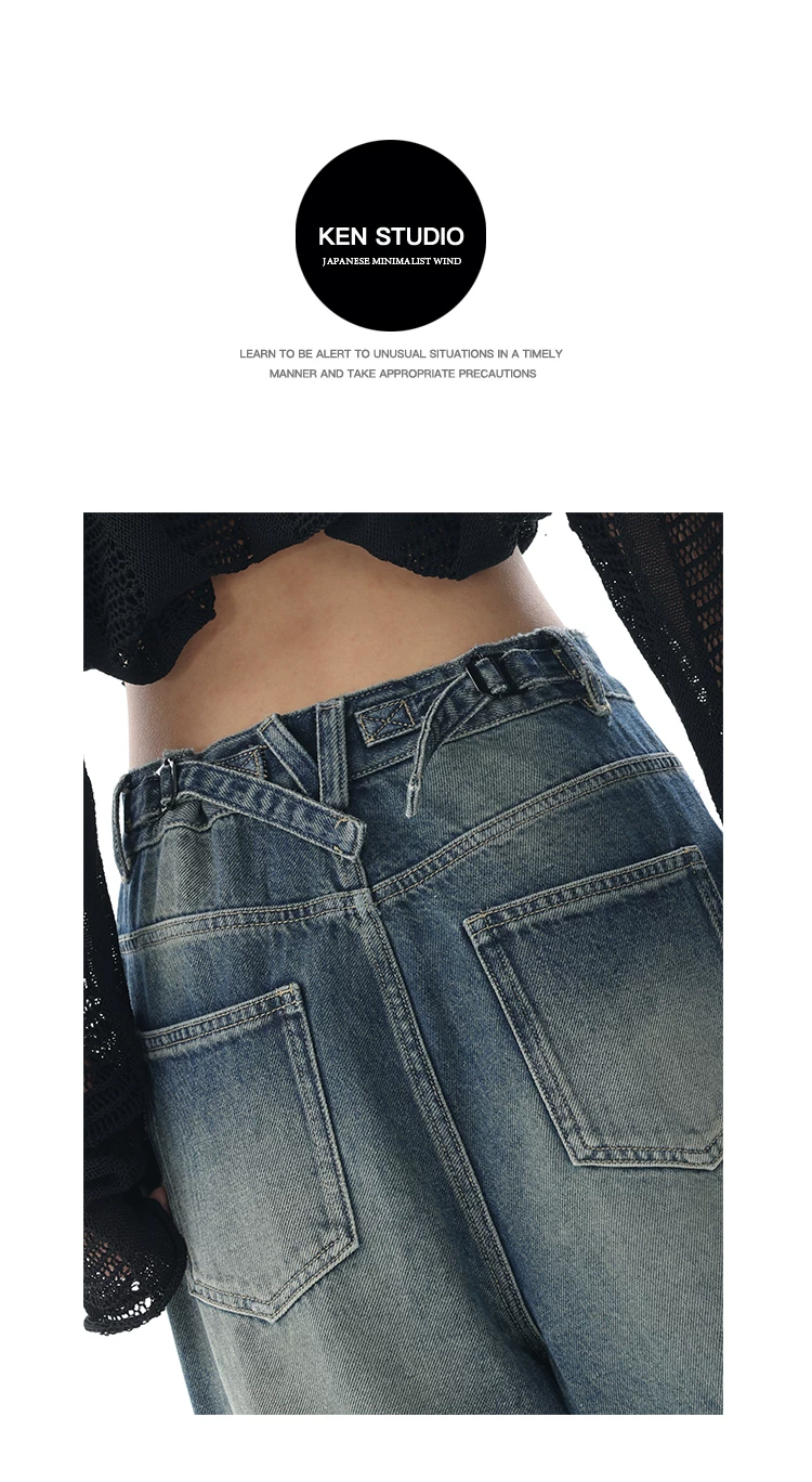 - Quần jean nữ dáng thẳng, chất liệu nỉ lót lông, kiểu Mỹ cổ điển, giặt mài, mùa thu đông KEN STUDIO2025, quần ống rộng, dáng suông