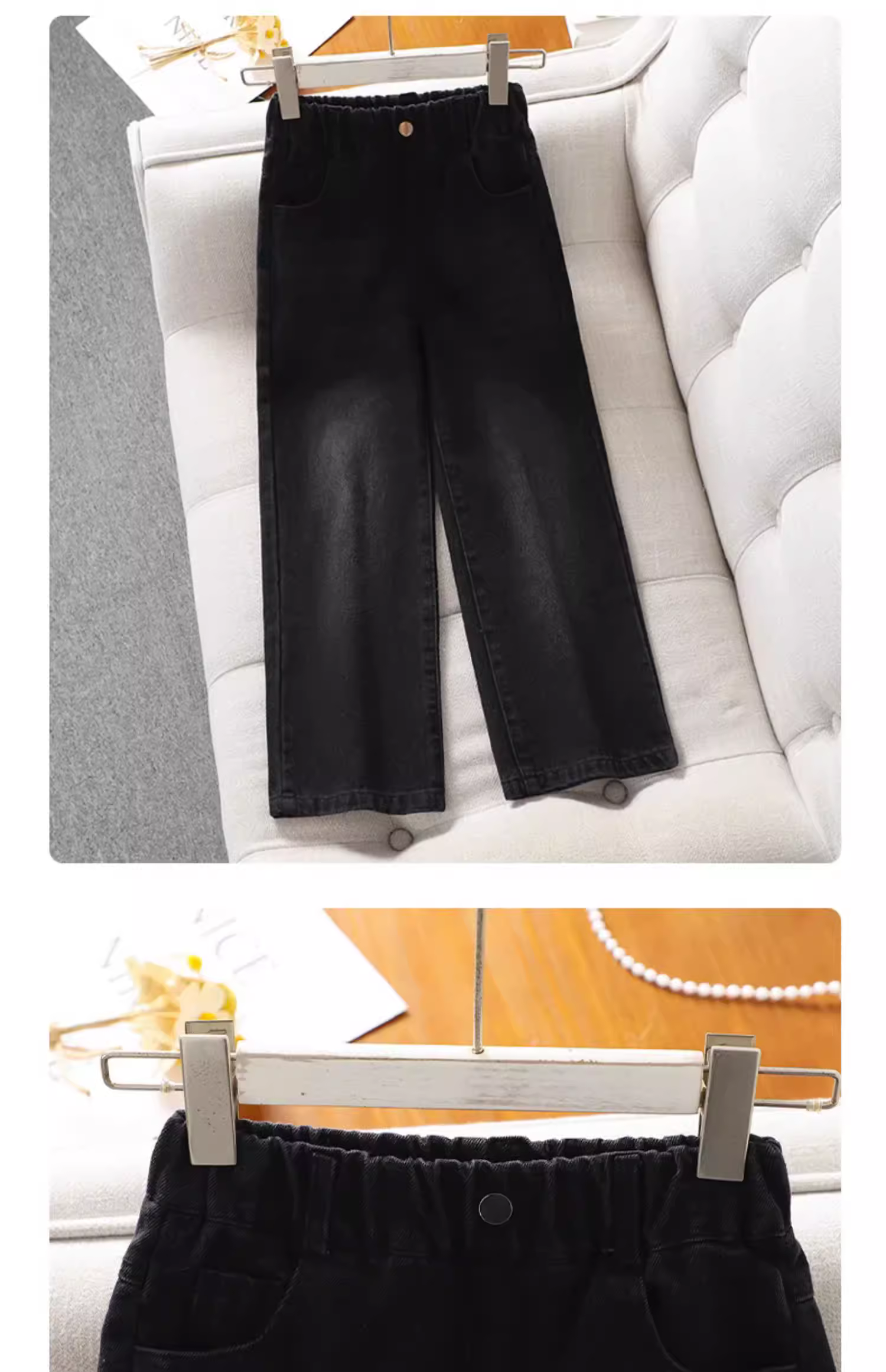 - Quần jean nữ phong cách xuân thu quần áo trẻ em quần ống rộng thẳng dáng rộng mùa thu quần dài thời trang sành điệu cho bé gái lớn