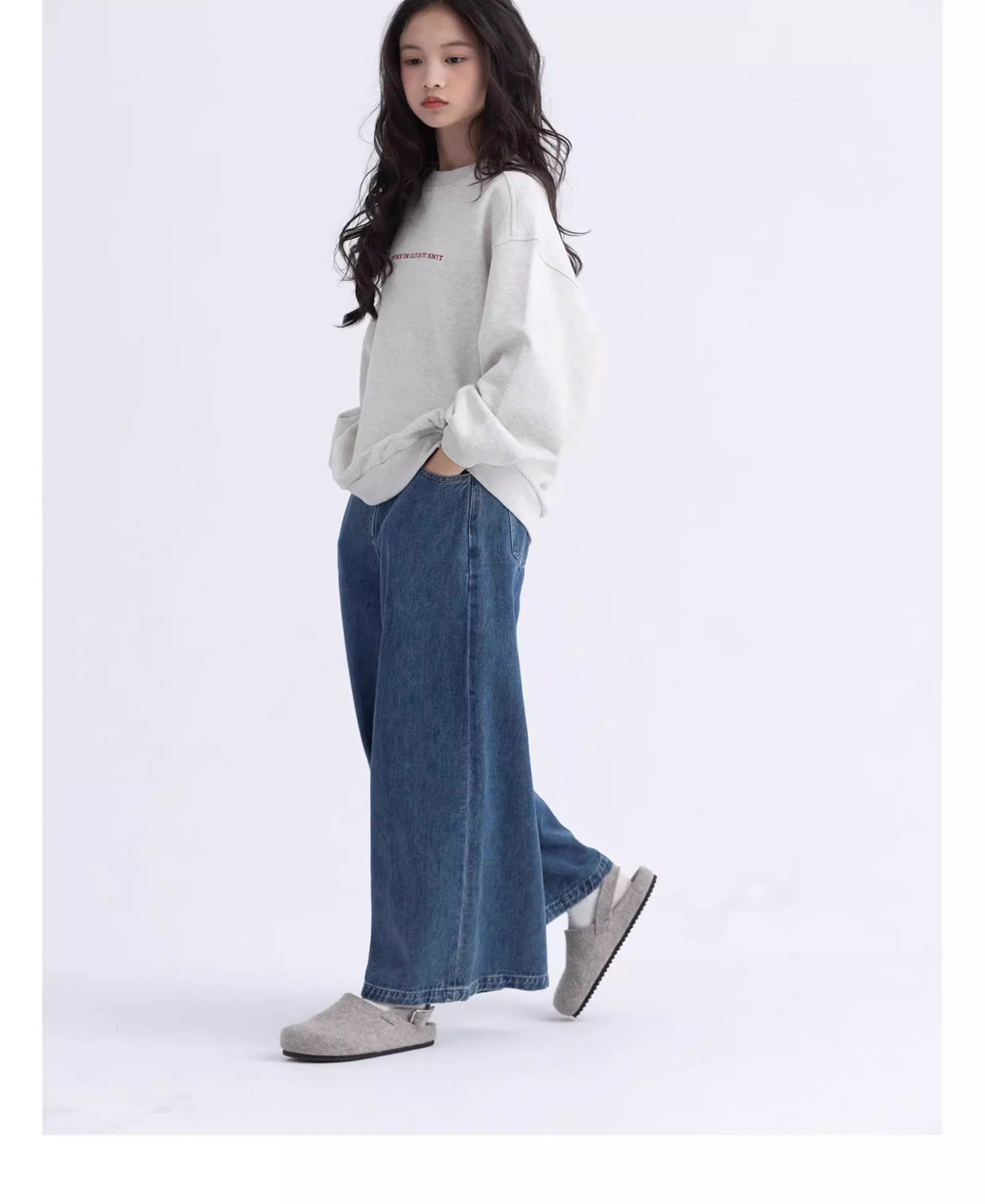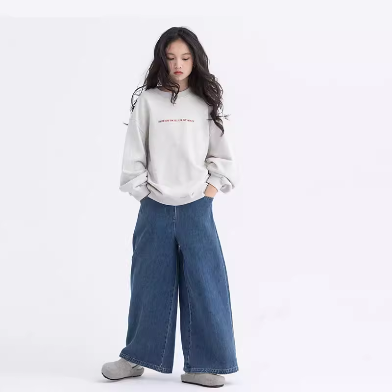 - Quần jean nữ xuân thu 2025 kiểu mới, quần trẻ em thời trang, dáng rộng, thoải mái, dành cho trẻ lớn, kiểu dáng suông, ống rộng, chất liệu mềm mại.