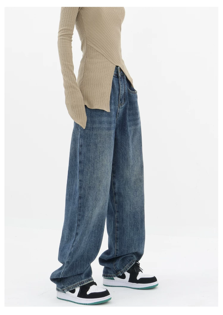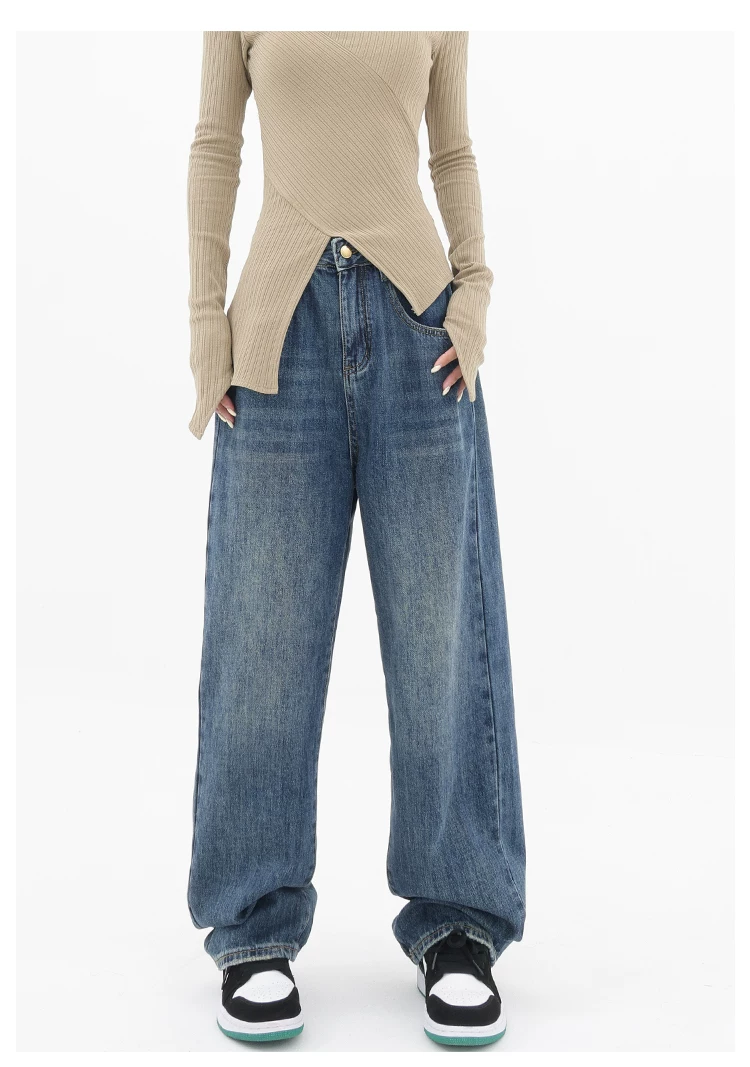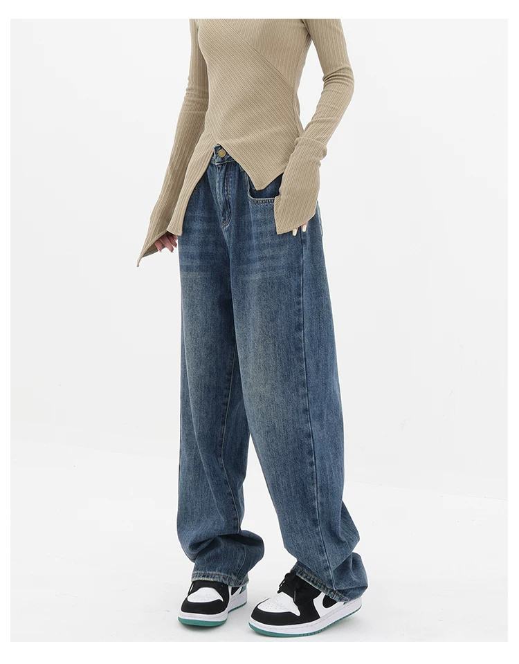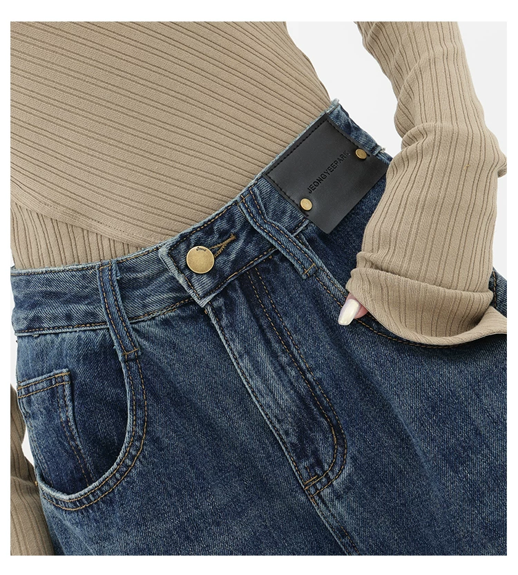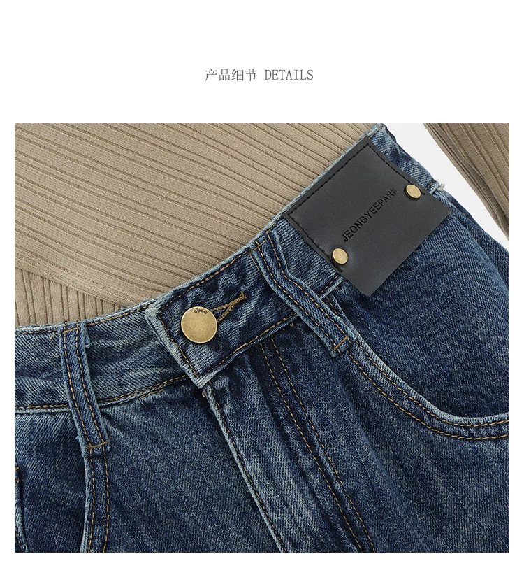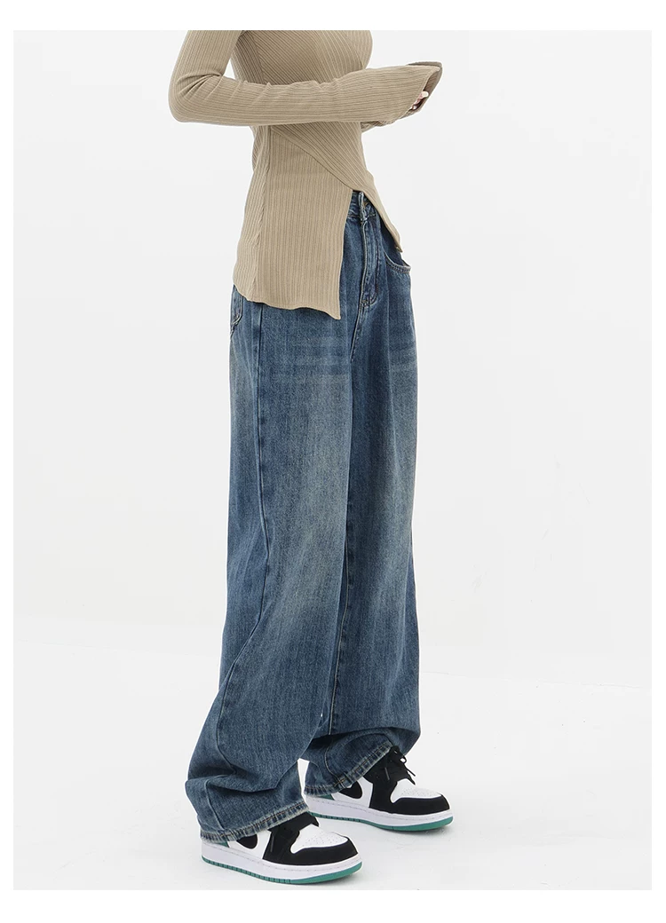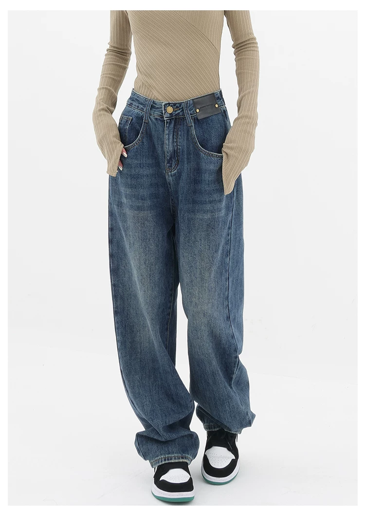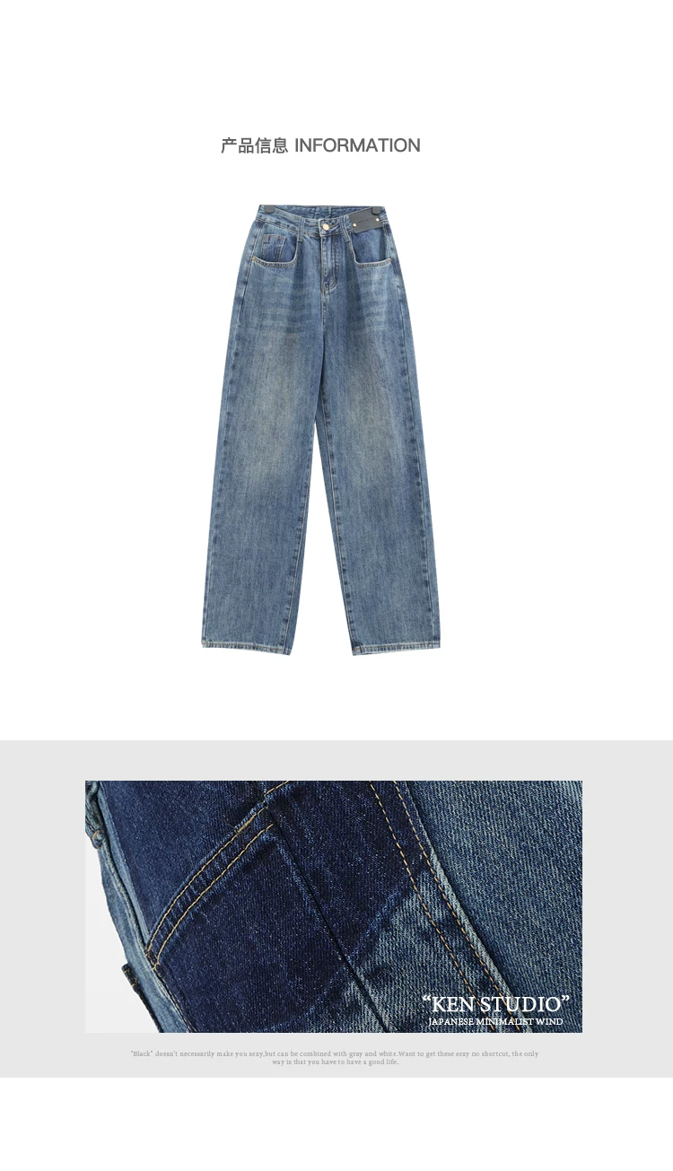 - Quần jean ống đứng lưng cao màu xanh cổ điển của KEN STUDIO dành cho nữ, quần dài dáng rộng có lót lông cừu mùa thu đông, quần dáng rộng thời trang