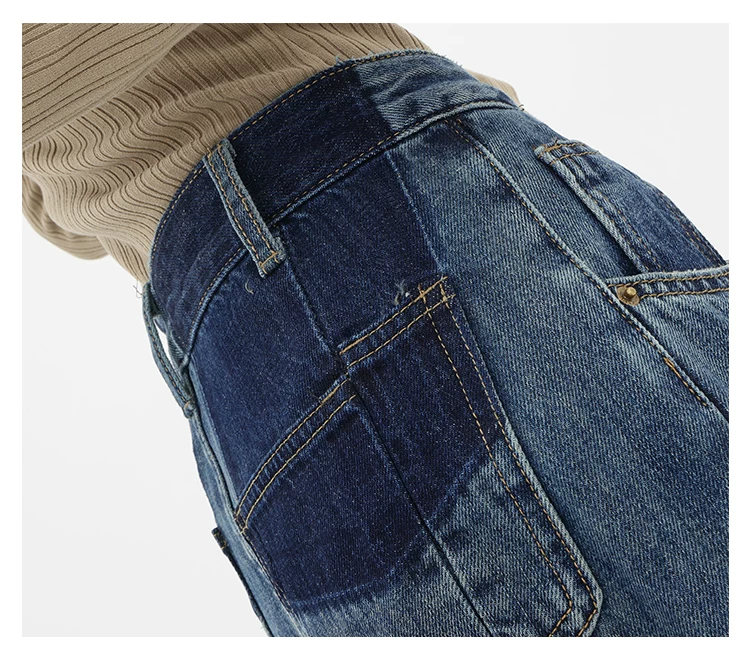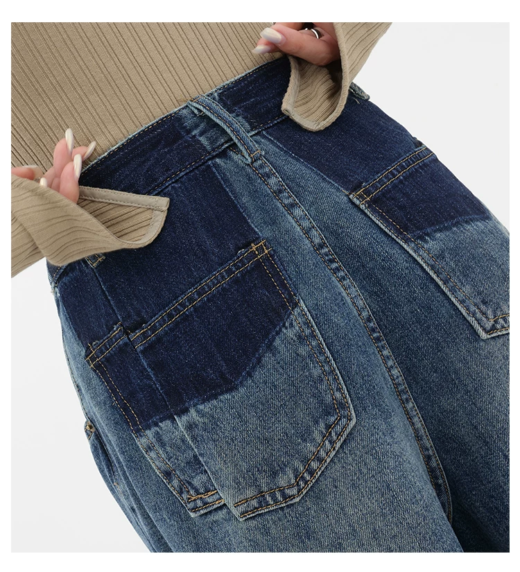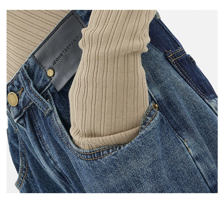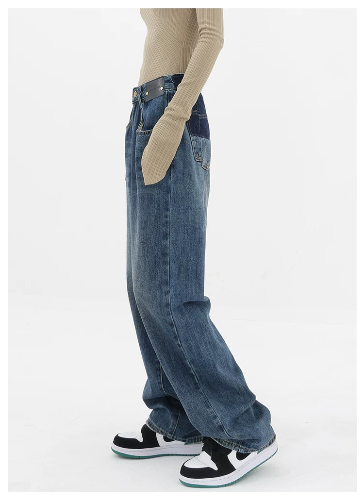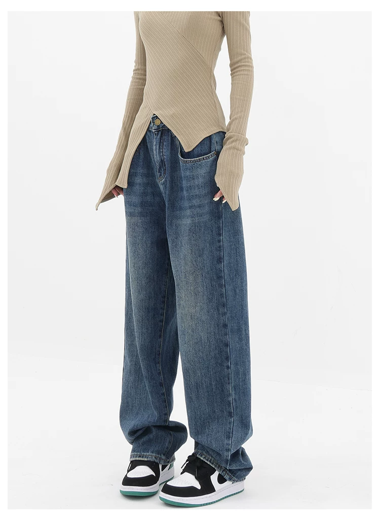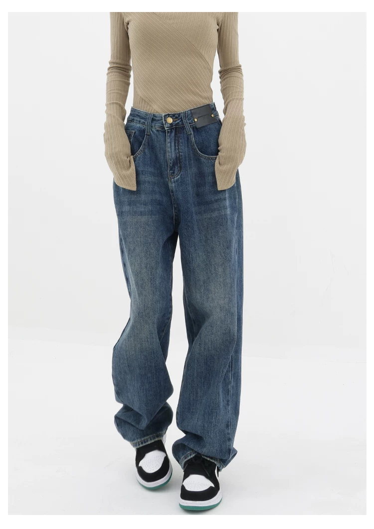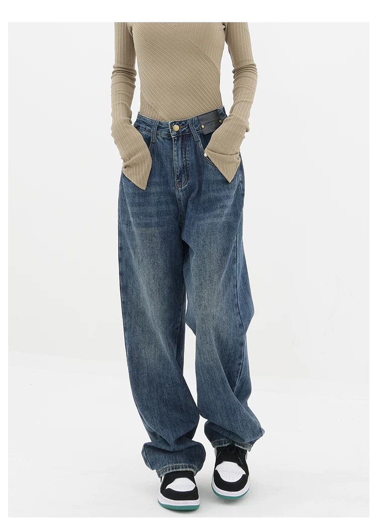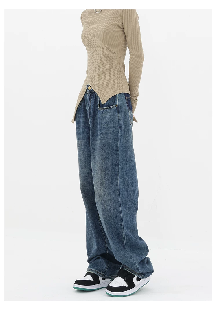 - Quần jean ống đứng lưng cao màu xanh cổ điển của KEN STUDIO dành cho nữ, quần dài dáng rộng có lót lông cừu mùa thu đông, quần dáng rộng thời trang