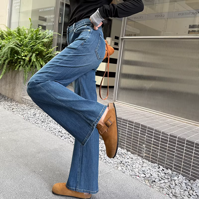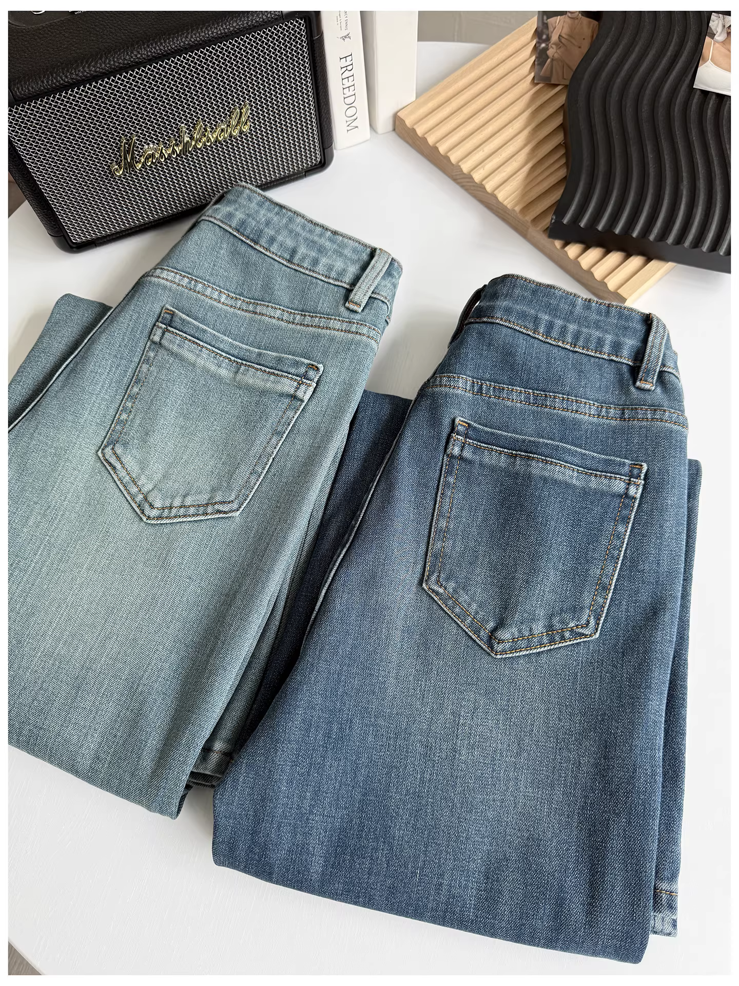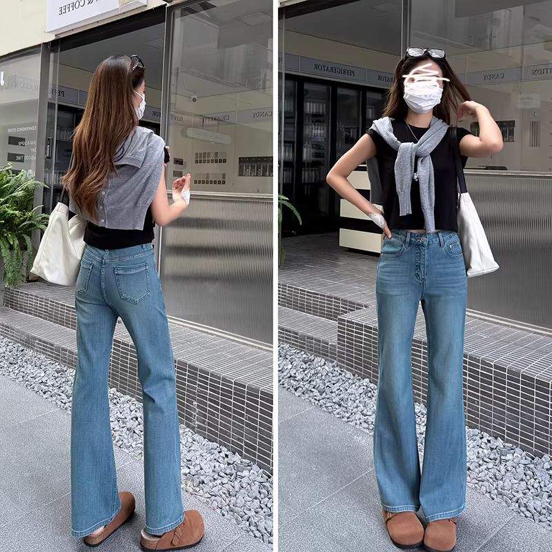 Quần jean ống loe cạp cao phong cách Hàn Quốc dành cho nữ 25 kiểu quần mới kiểu dáng nhỏ gọn, tôn dáng, đa năng, dài chấm đất, ống rộng