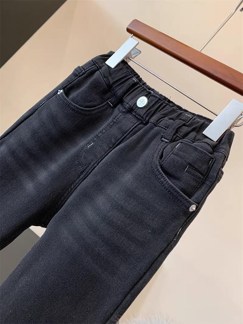 - Quần jean ống loe đen lót lông cừu cao cấp, đa năng, mùa đông 2025 dành cho bé gái và trẻ lớn hơn, thích hợp làm quần mặc ngoài.