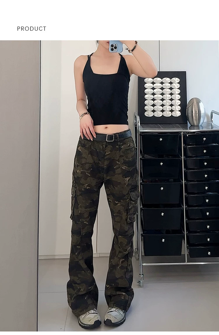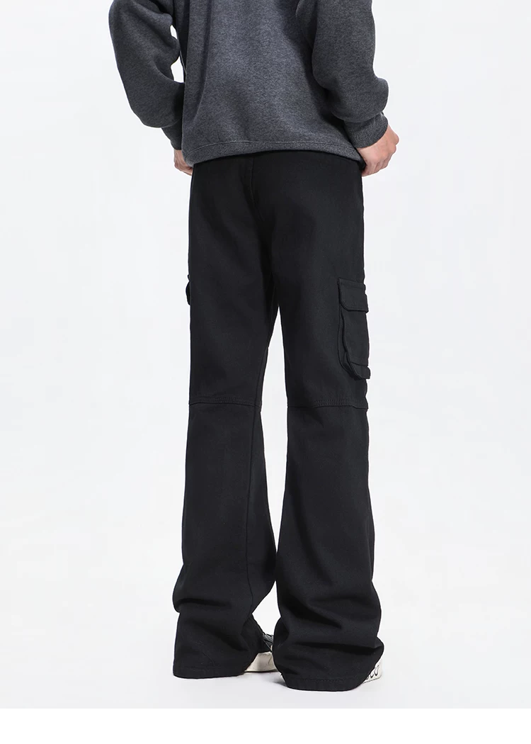 - Quần jean ống loe kiểu Mỹ dành cho nam, quần dài chấm đất dáng rộng mùa xuân thu, quần công sở thiết kế nhiều túi theo xu hướng thời trang.