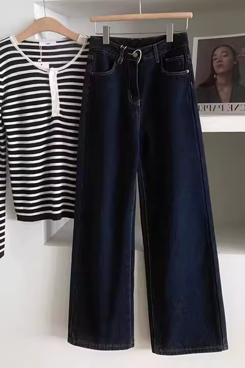- Quần jean ống rộng cạp cao màu tối cổ điển lót lông cừu dành cho nữ, size nhỏ, dáng ôm, ống thẳng, mùa đông, size 25