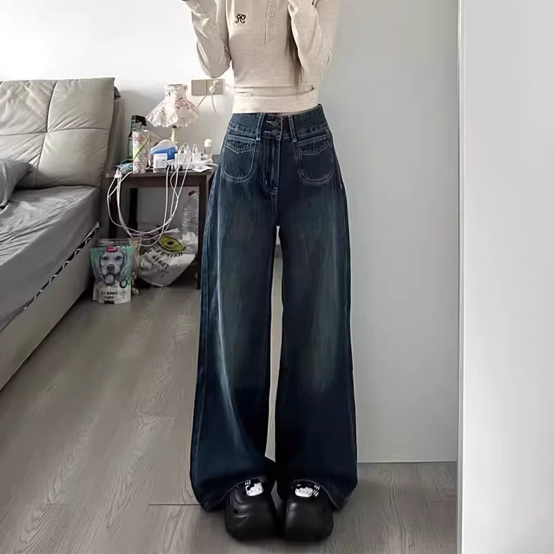 Quần jean ống rộng dành cho nữ có hông và đùi dày, phong cách đầu xuân, cỡ lớn, lưng cao, dáng rộng, mềm mại, tôn dáng, ống thẳng, quần dài chạm sàn