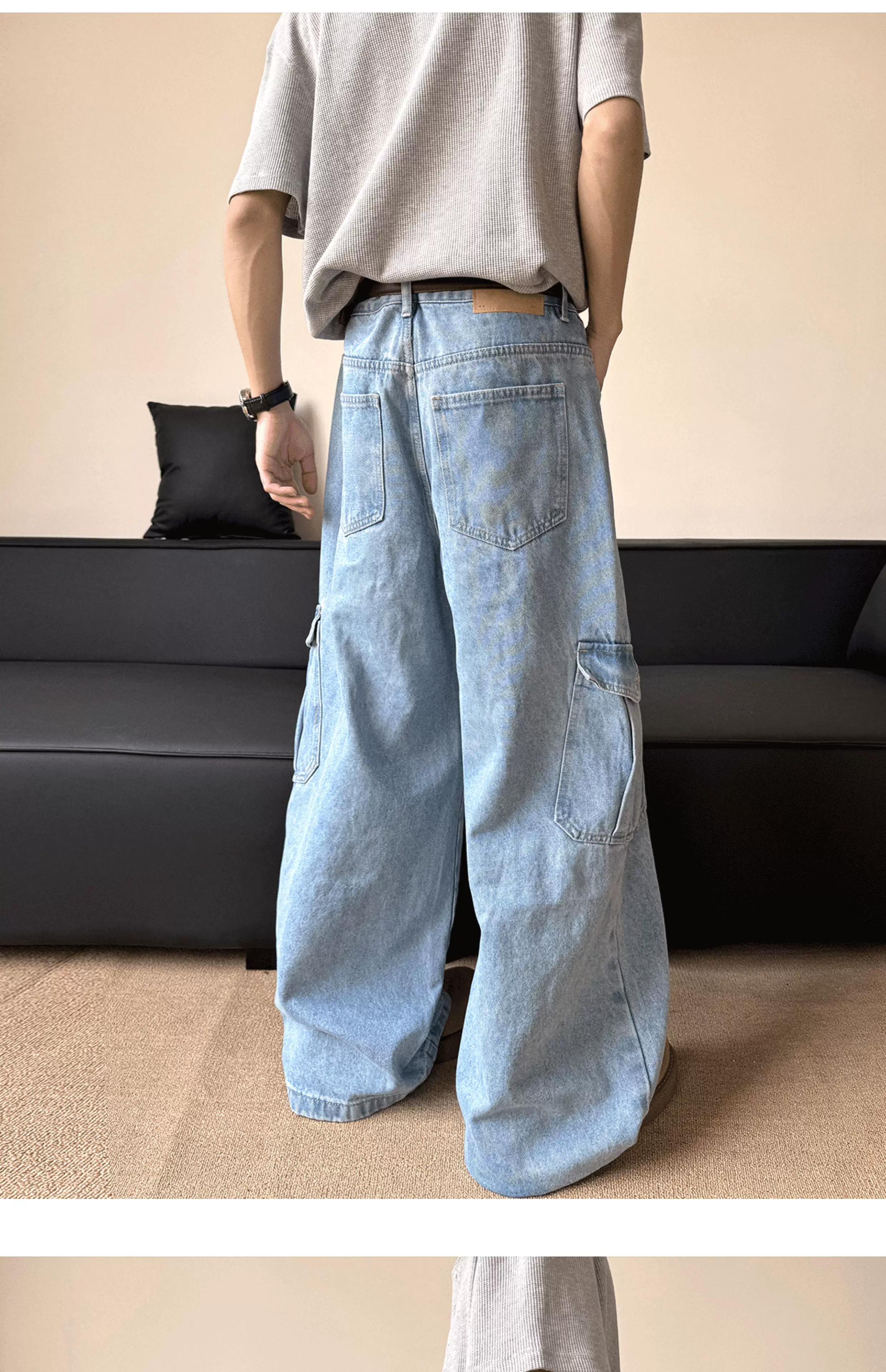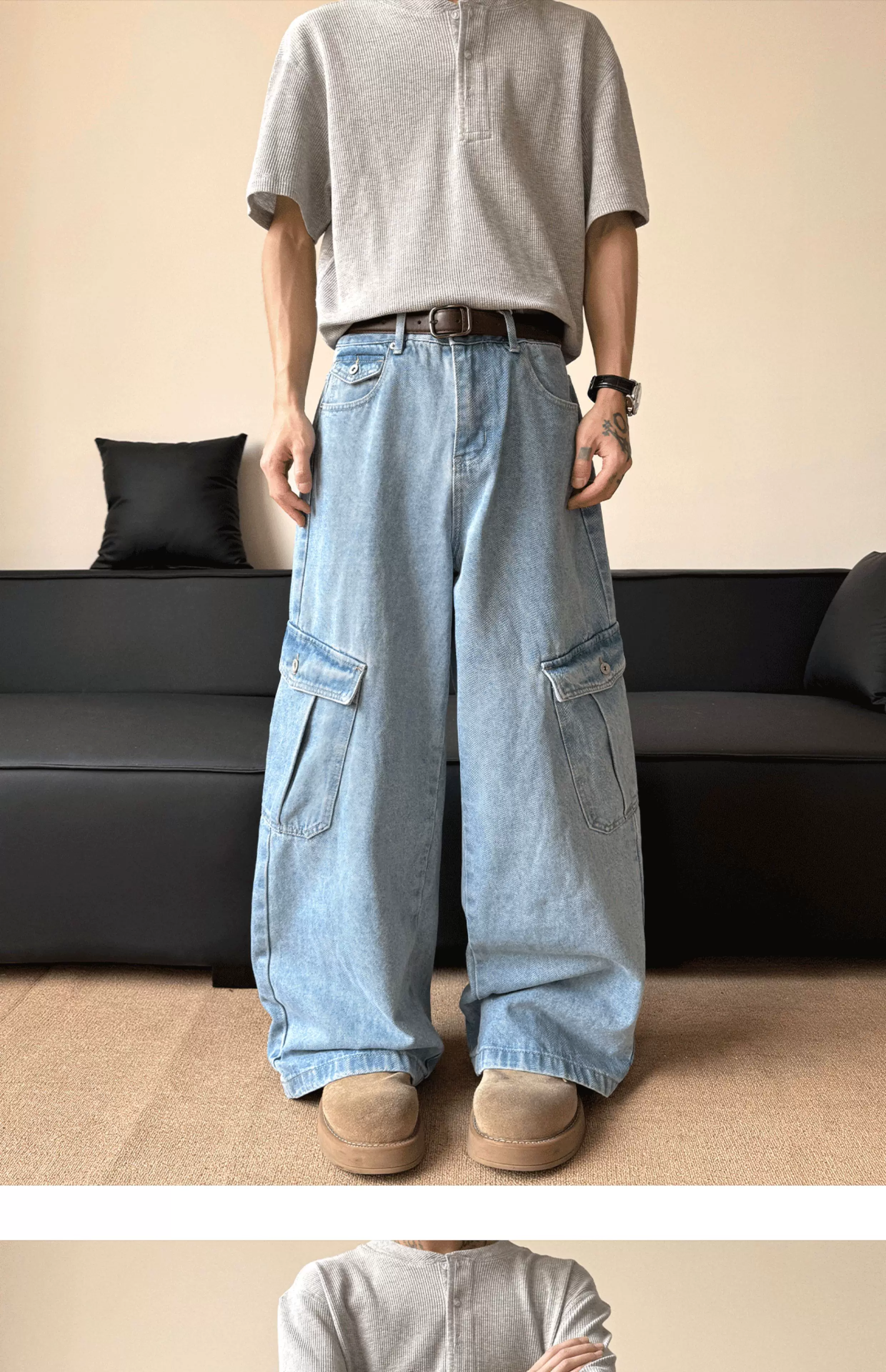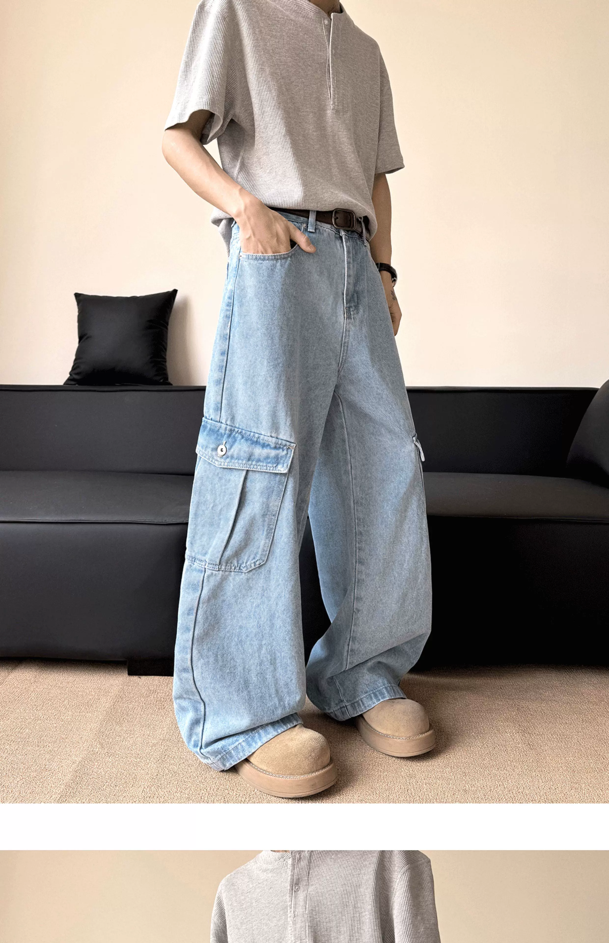 - Quần jean ống rộng mỏng mùa hè dành cho nam, có túi lớn, quần công sở ống rộng, quần dài chạm sàn phong cách Mỹ thời thượng dành cho cặp đôi.