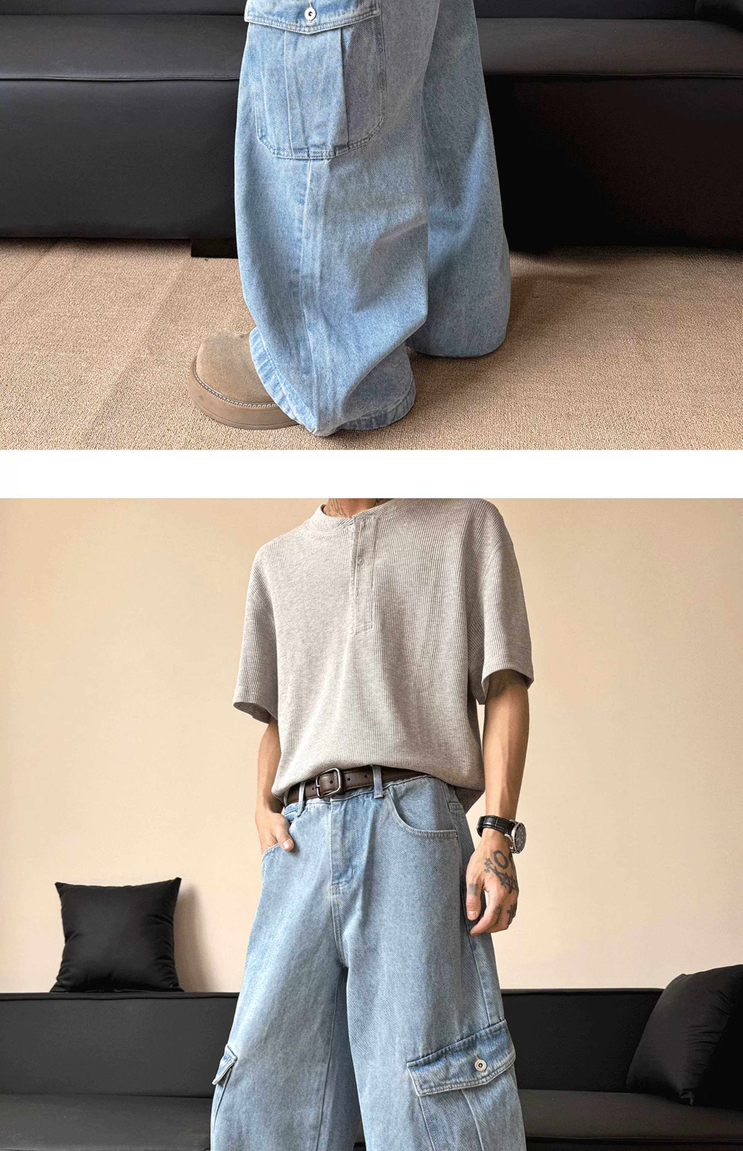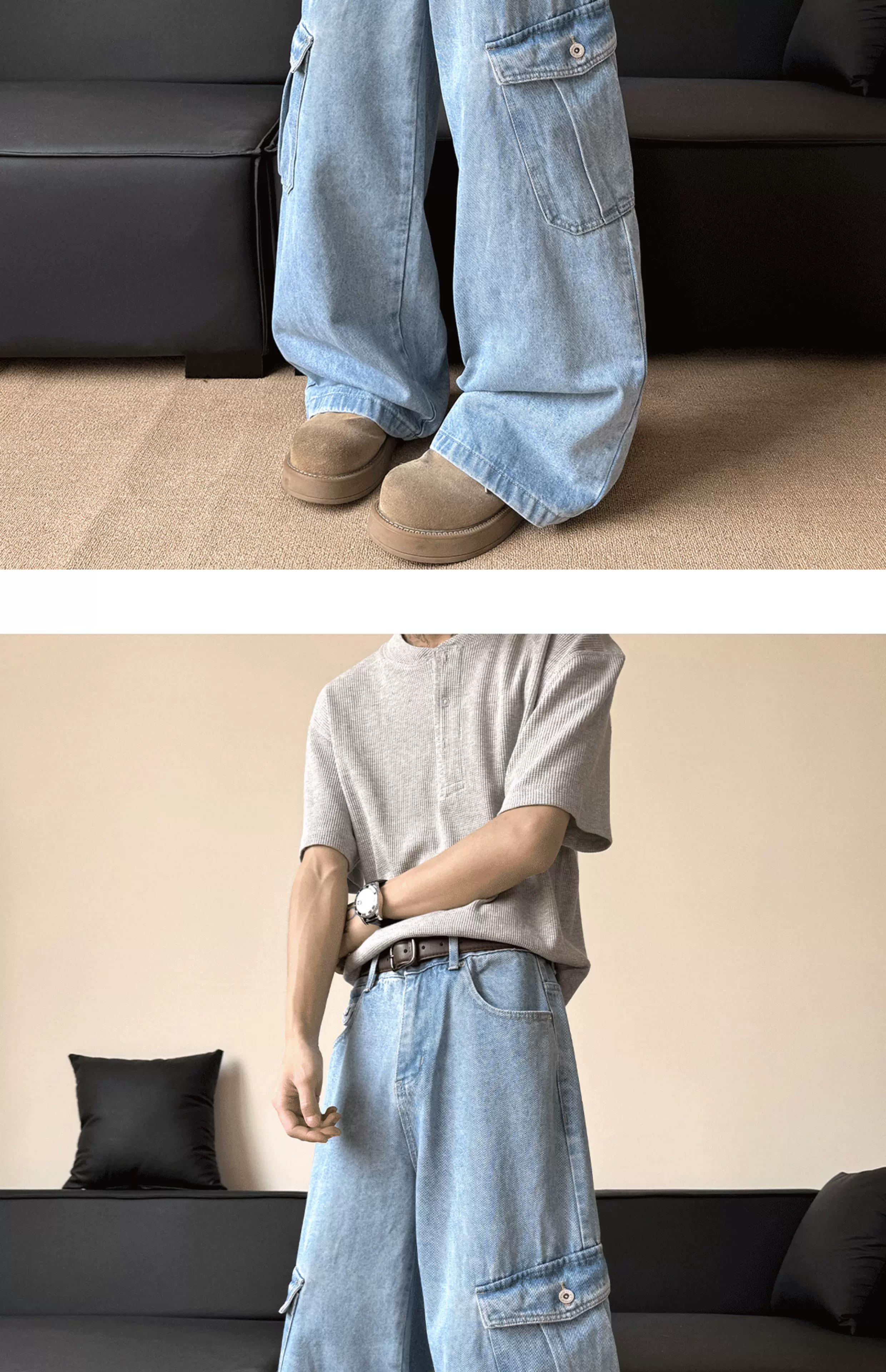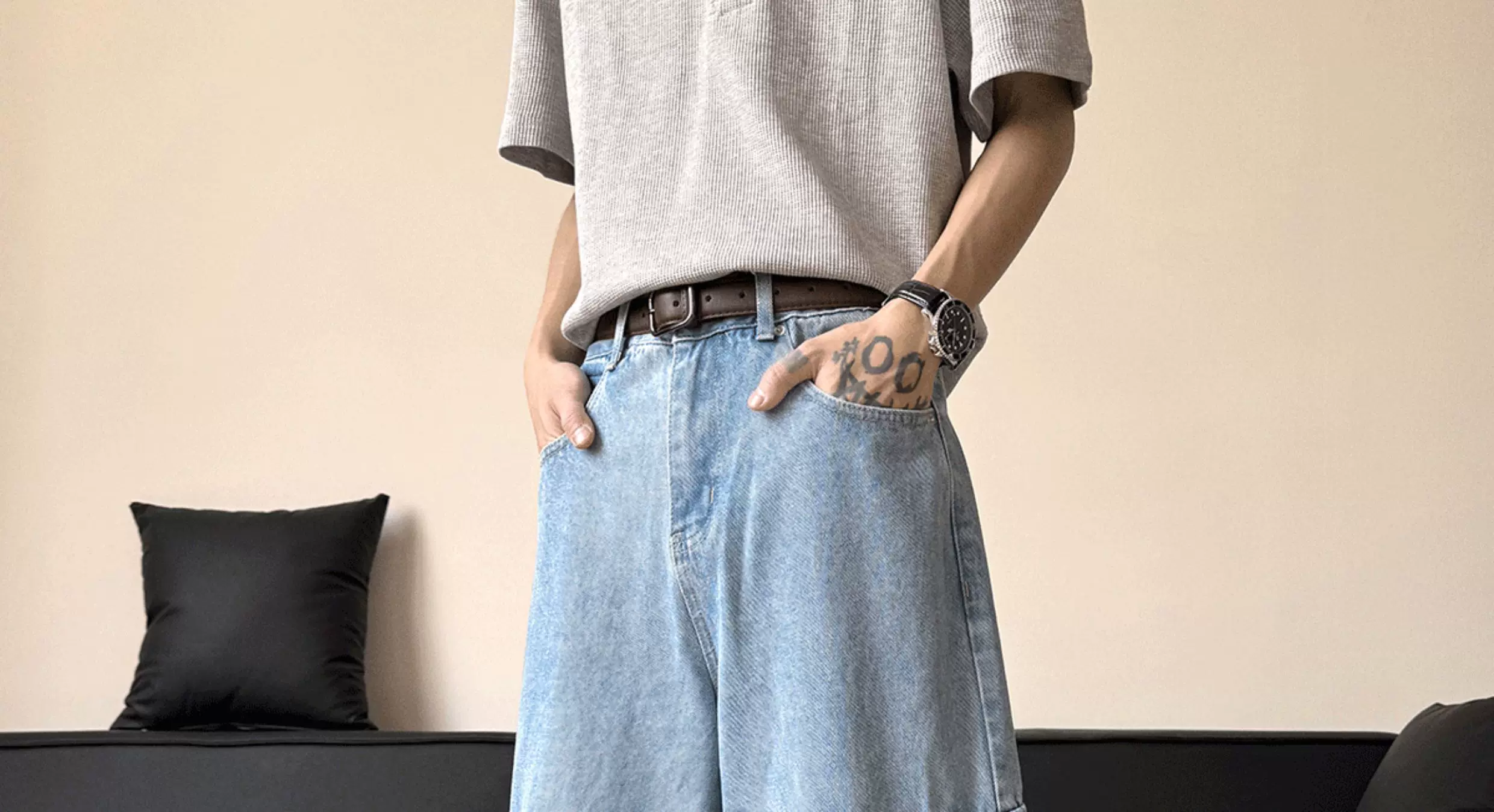 - Quần jean ống rộng mỏng mùa hè dành cho nam, có túi lớn, quần công sở ống rộng, quần dài chạm sàn phong cách Mỹ thời thượng dành cho cặp đôi.