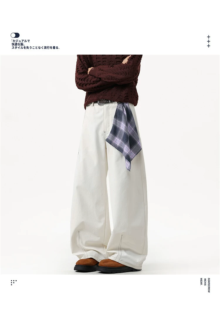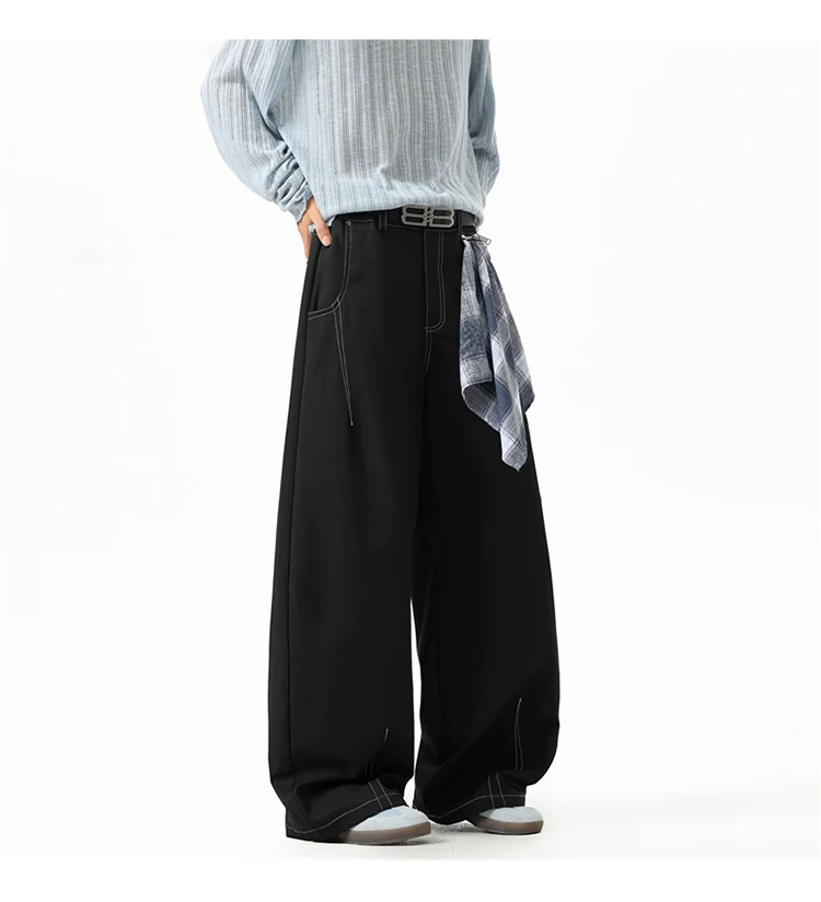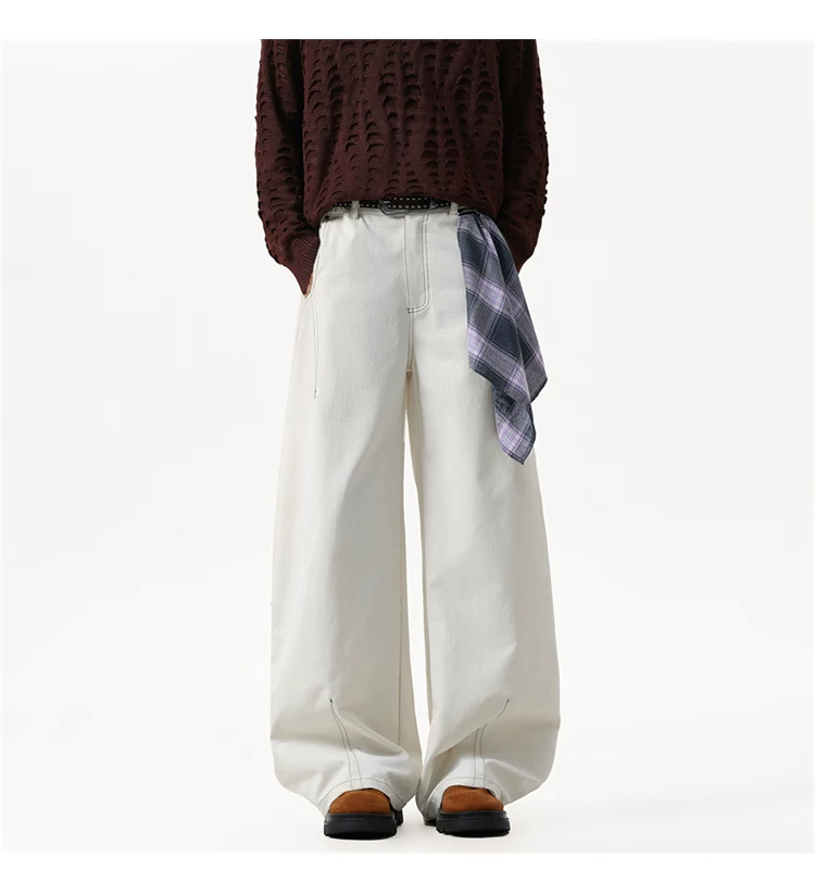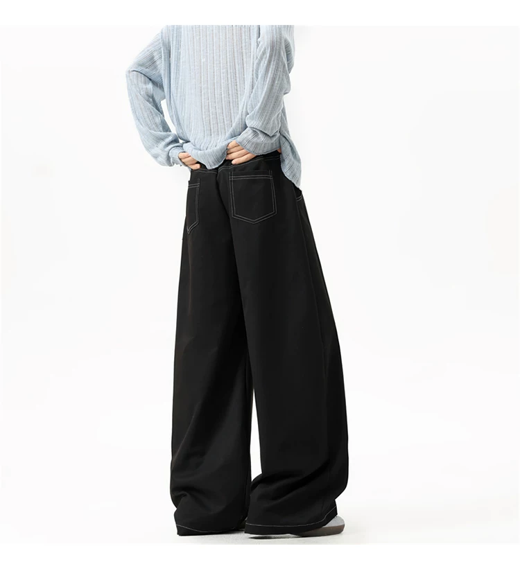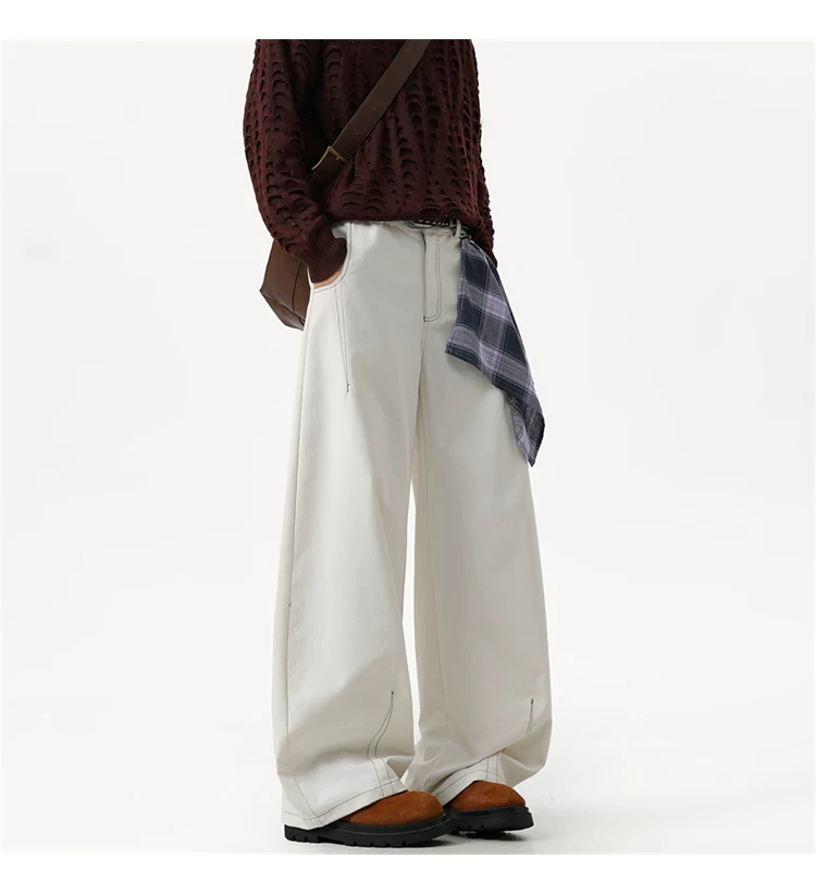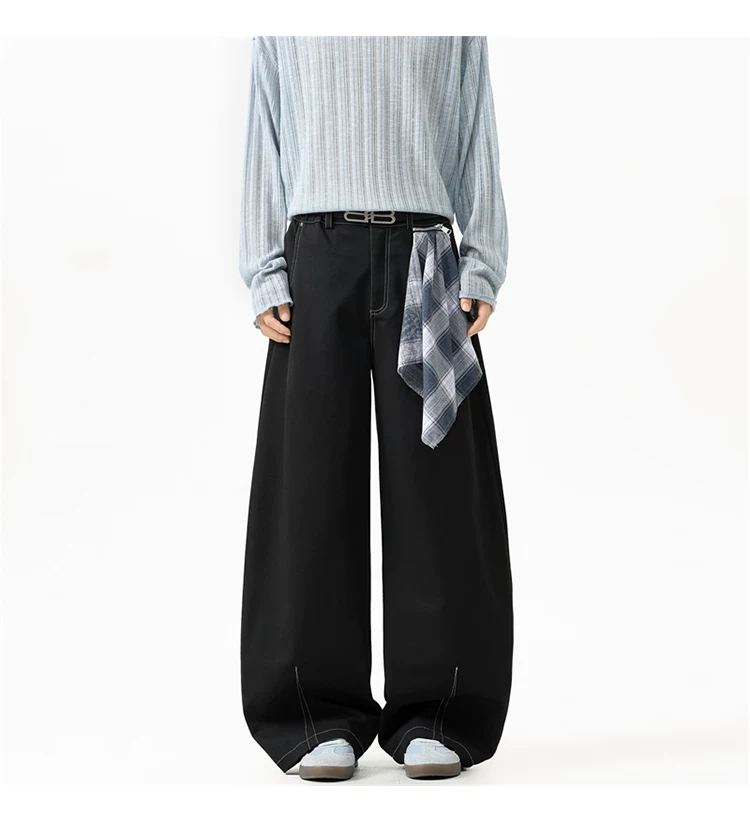 - Quần jean ống rộng phong cách retro Mỹ dành cho nam, quần ống đứng dáng cong mùa xuân, quần dài chạm đất phong cách cao cấp thời thượng.