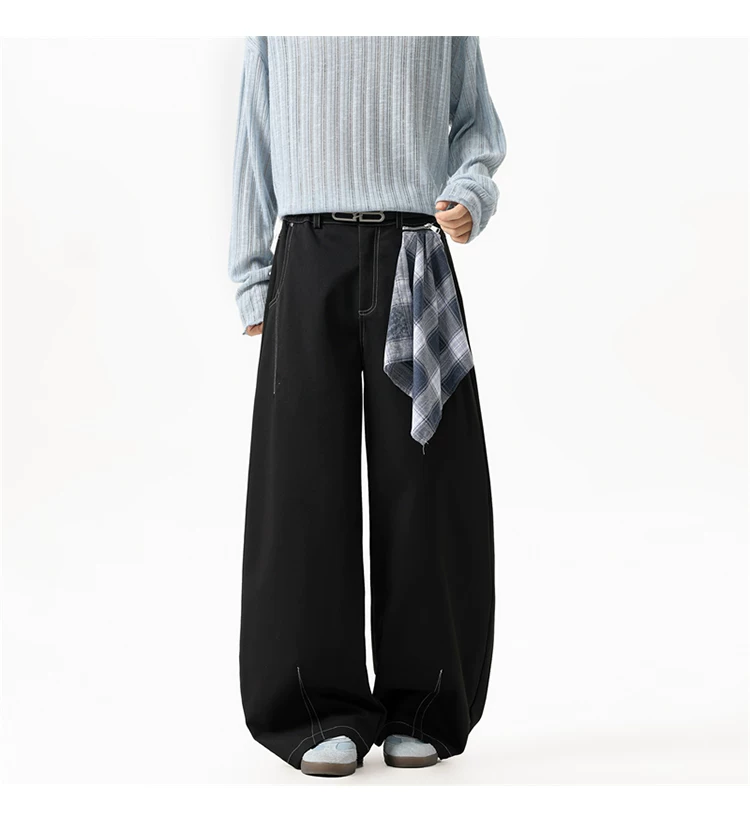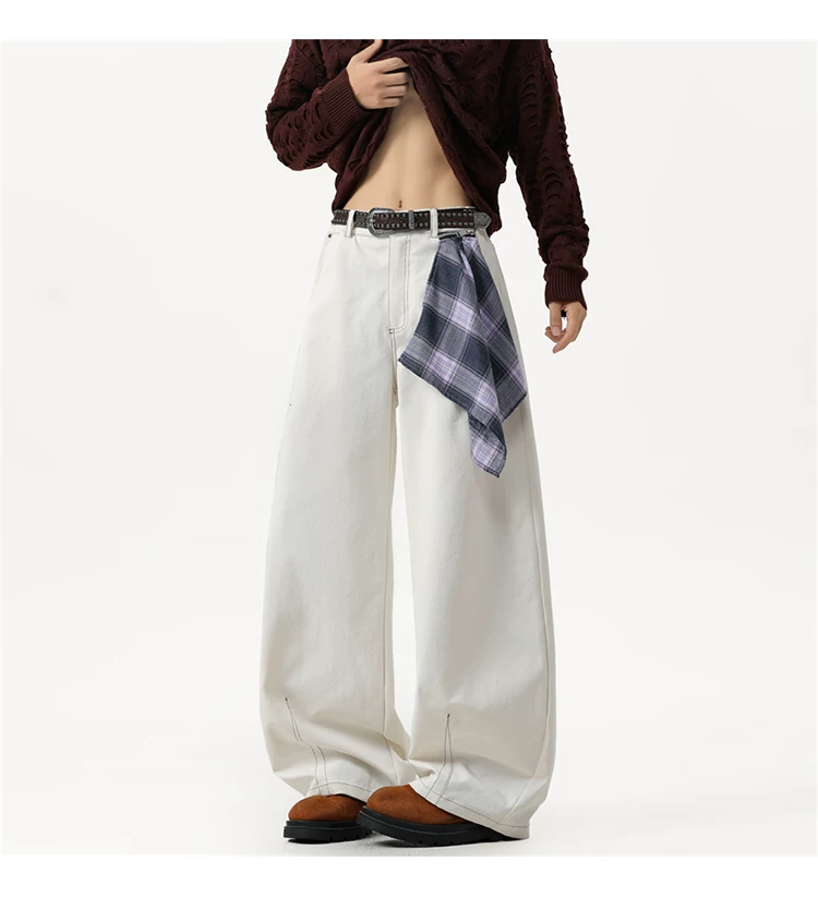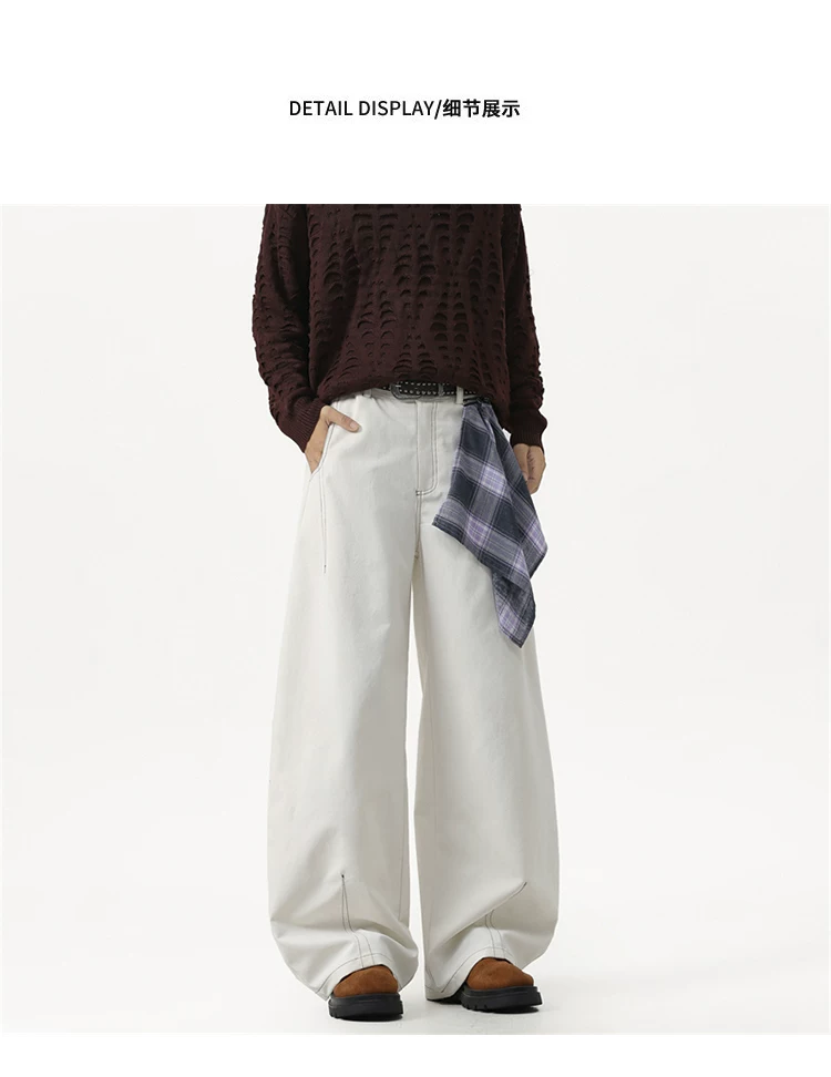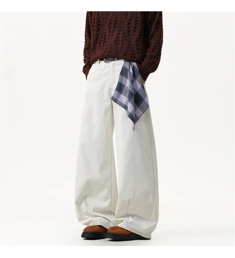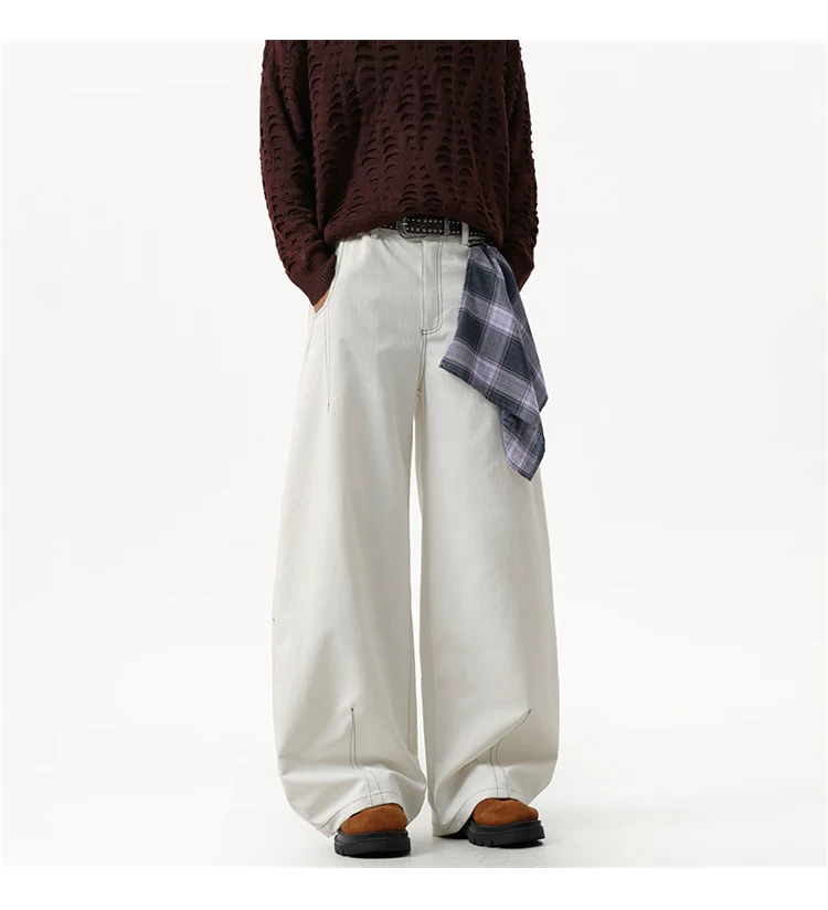 - Quần jean ống rộng phong cách retro Mỹ dành cho nam, quần ống đứng dáng cong mùa xuân, quần dài chạm đất phong cách cao cấp thời thượng.