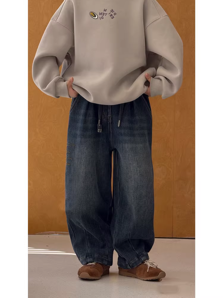 - Quần jean ống thẳng lót lông cừu cho bé gái, quần ống rộng thời trang trẻ em lót lông cừu, kiểu dáng rộng rãi đa năng hợp thời trang mùa đông.
