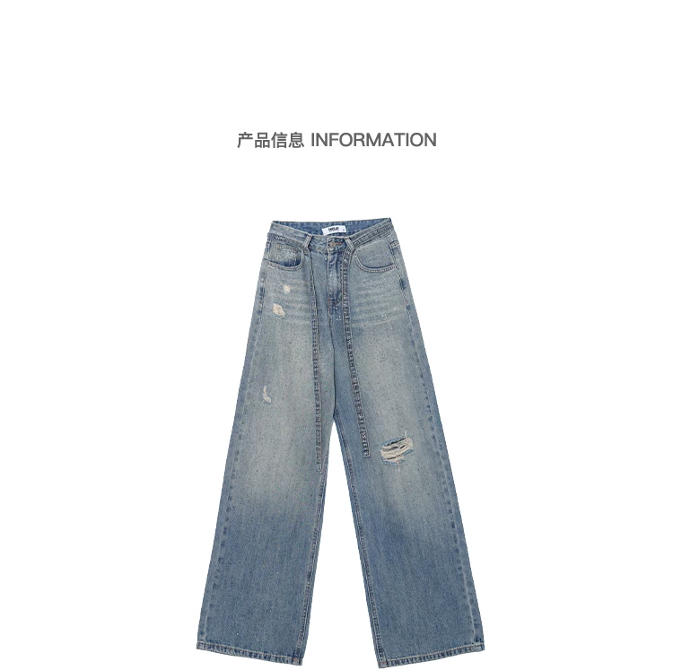 Quần jean rách đính đá Galaxy của KEN STUDIO dành cho nữ, Quần dài ống rộng đính đá hình ngôi sao mùa hè