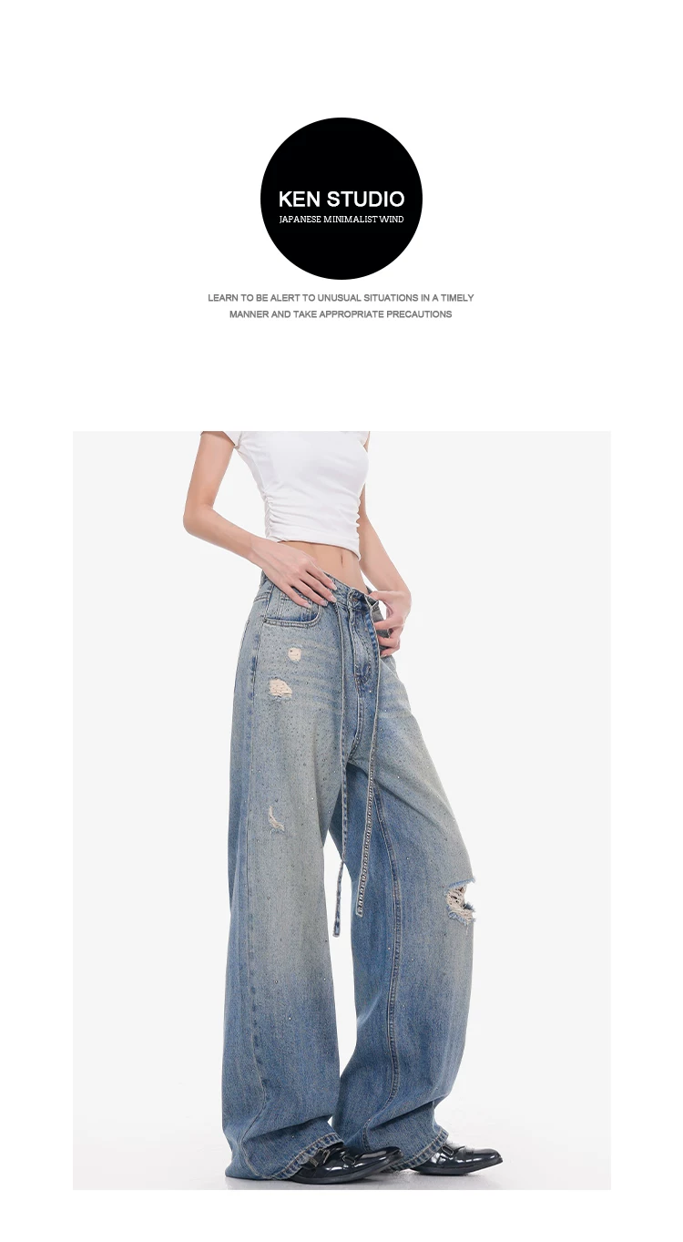 - Quần jean rách đính đá Galaxy của KEN STUDIO dành cho nữ, Quần dài ống rộng đính đá hình ngôi sao mùa hè