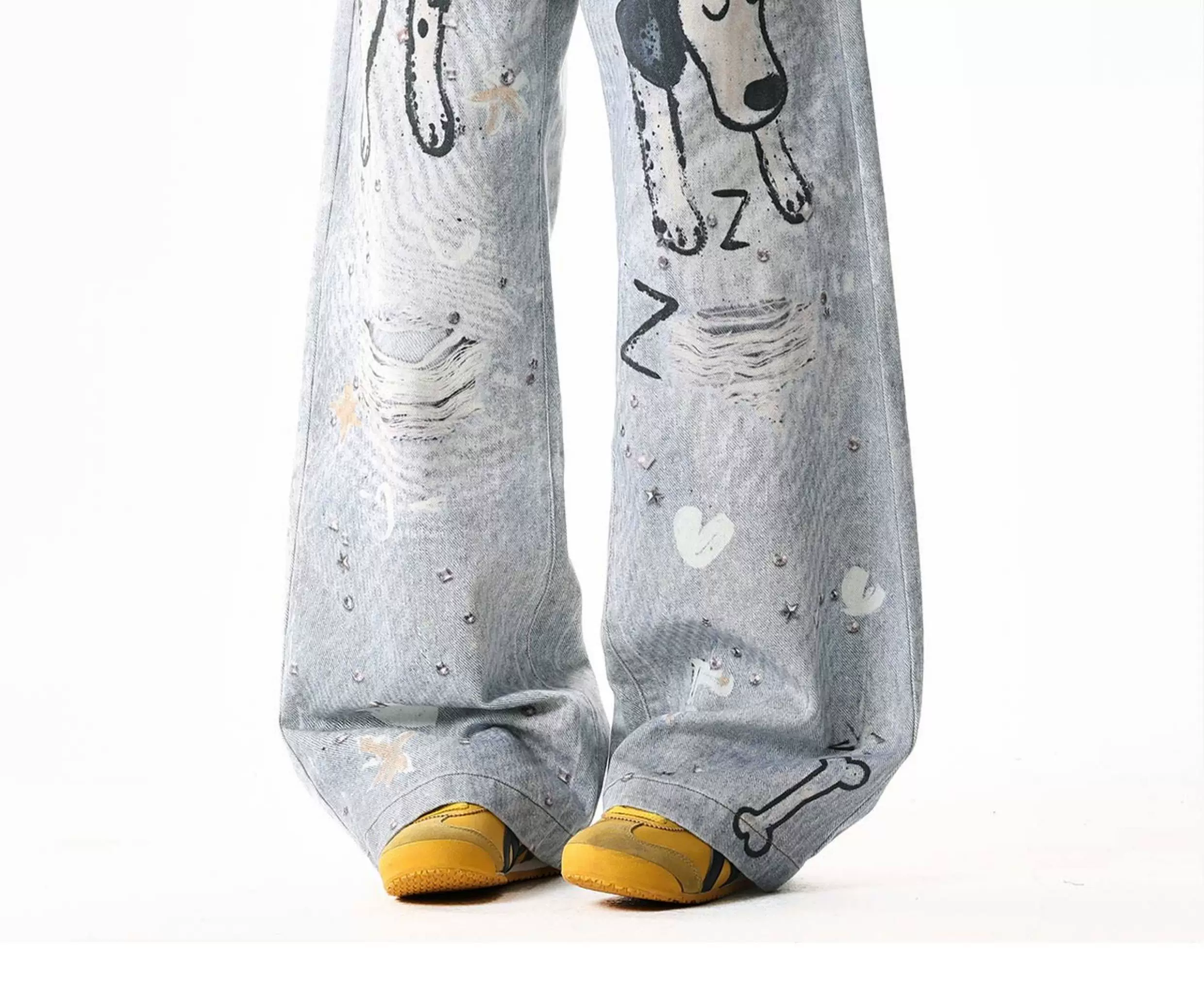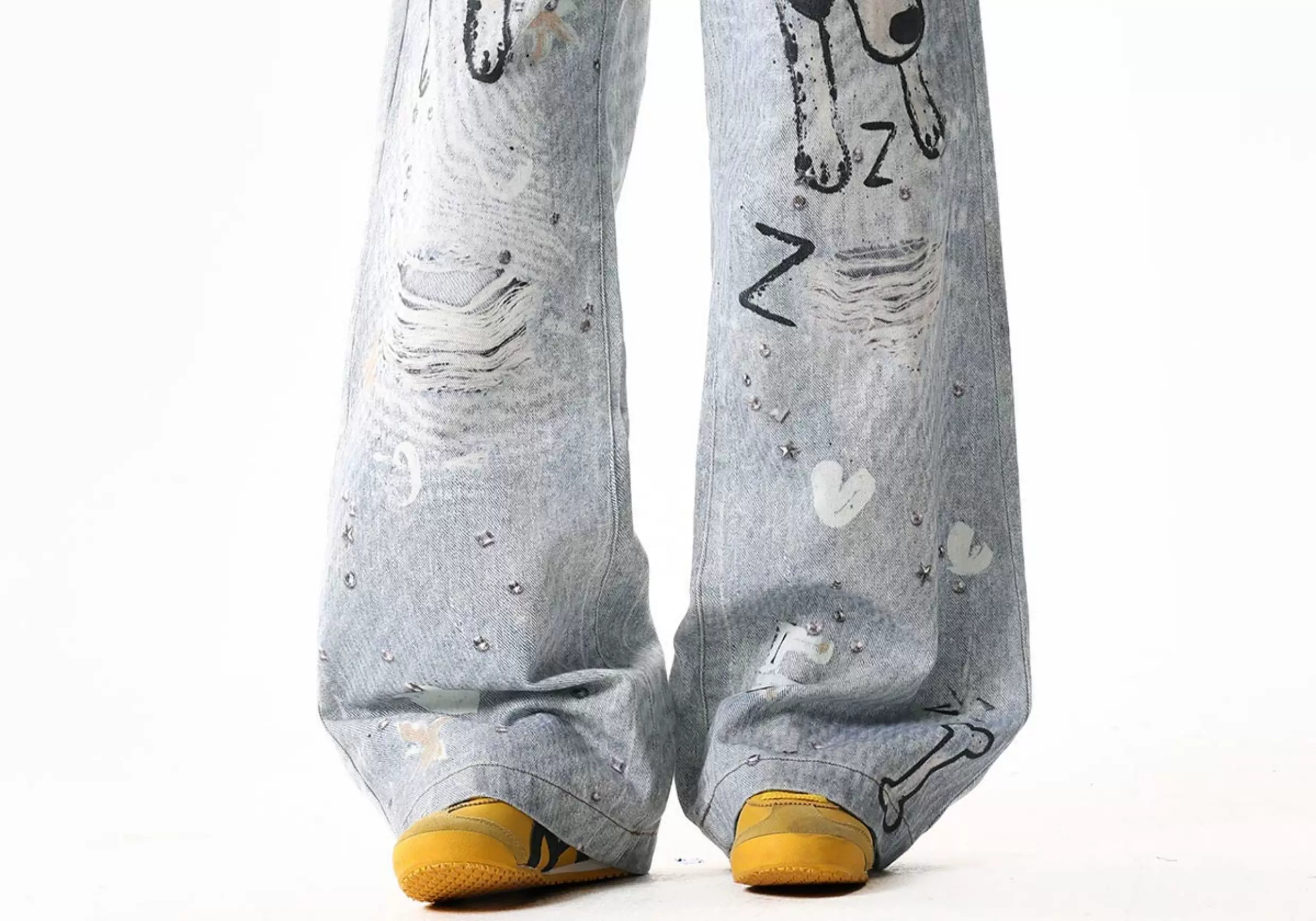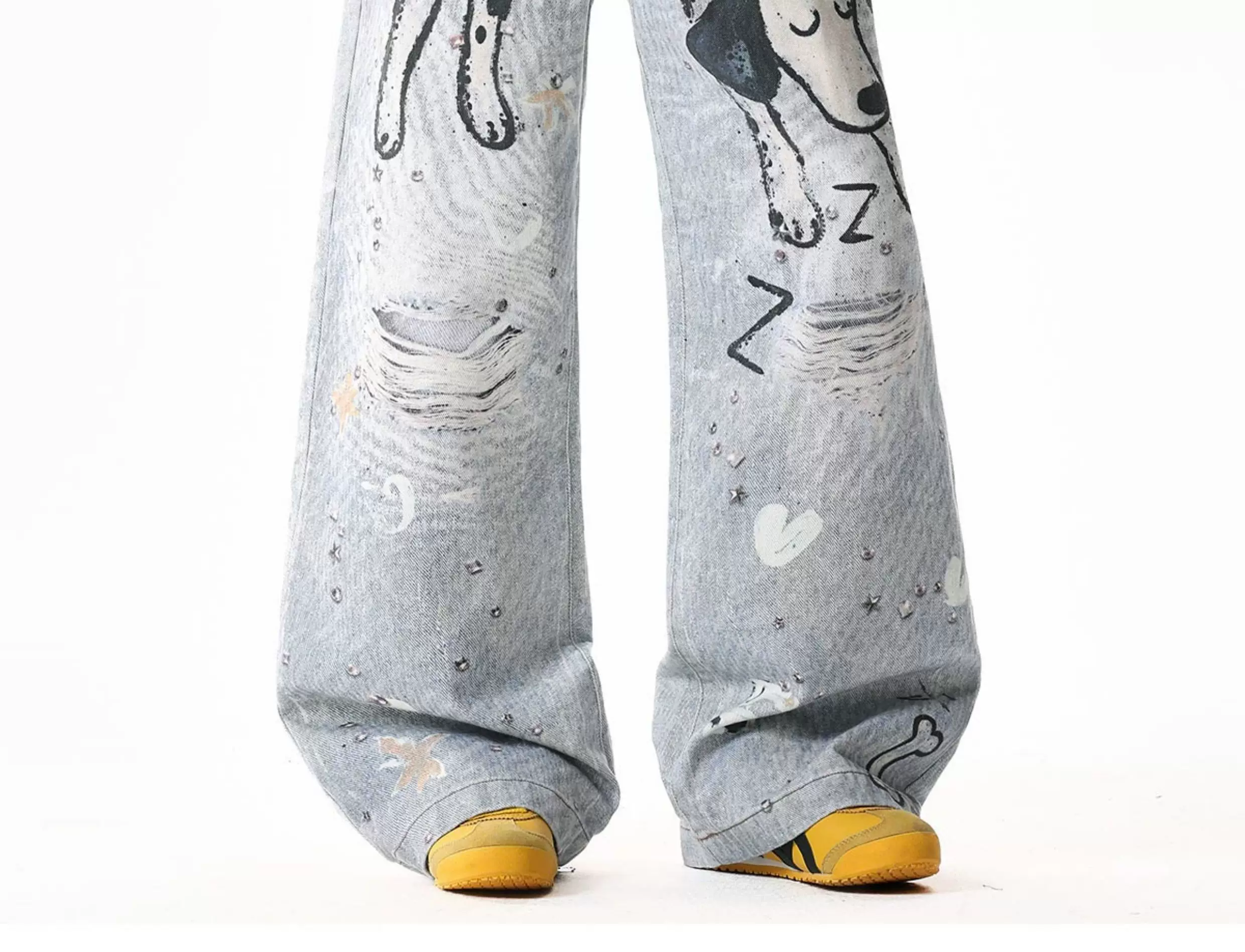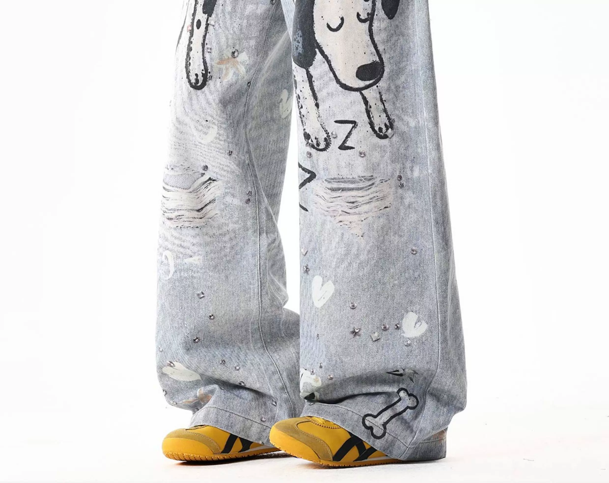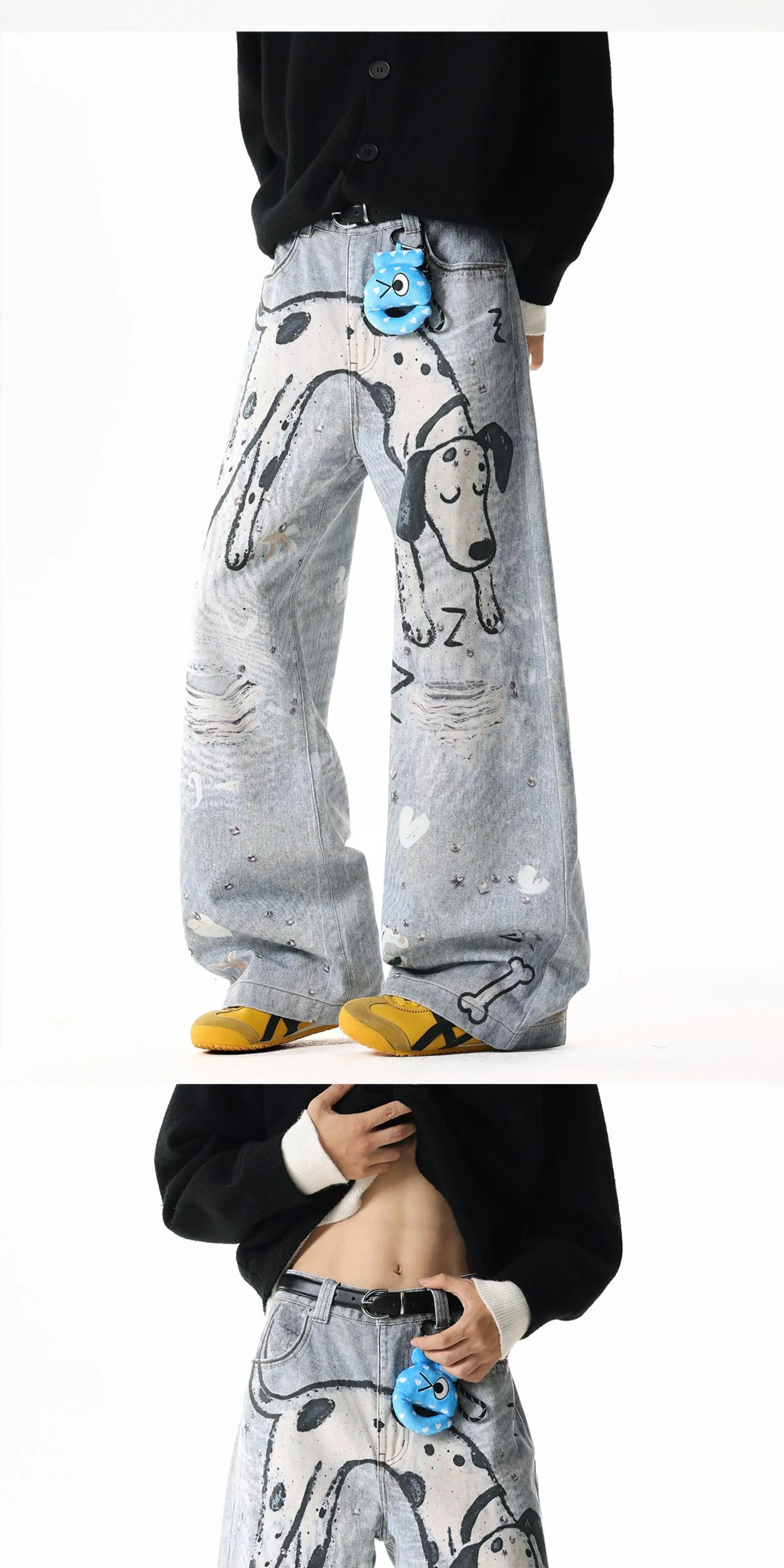 - Quần jean rách in 3D dành cho nam, phong cách mùa thu mới, quần ống rộng in họa tiết graffiti Dalmatian, quần ống đứng thương hiệu thời thượng của Mỹ.
