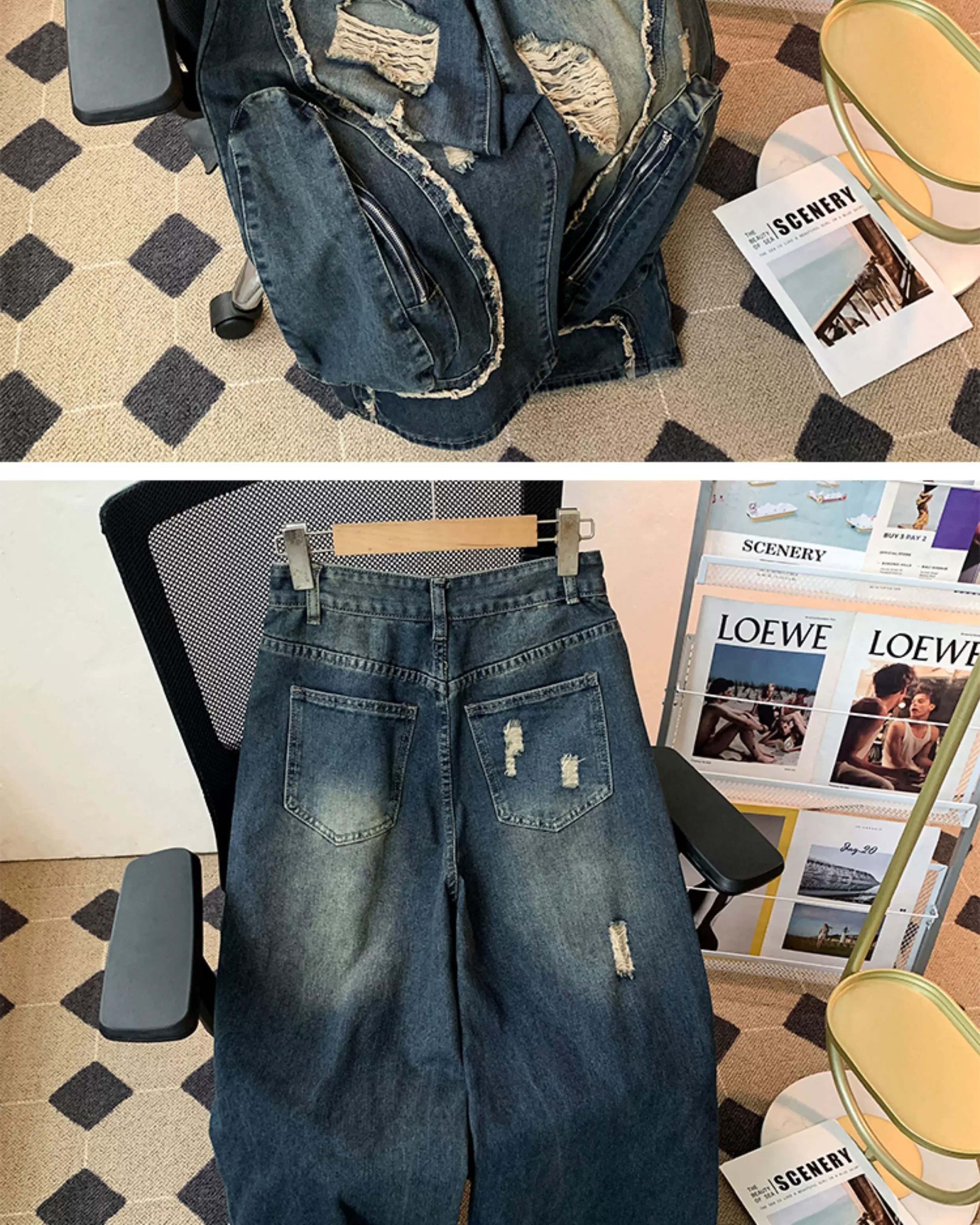 Quần jean rách nam cao cấp, quần công sở thiết kế phá cách phong cách Mỹ mùa hè, quần ống rộng dáng thẳng túi lớn thời thượng.