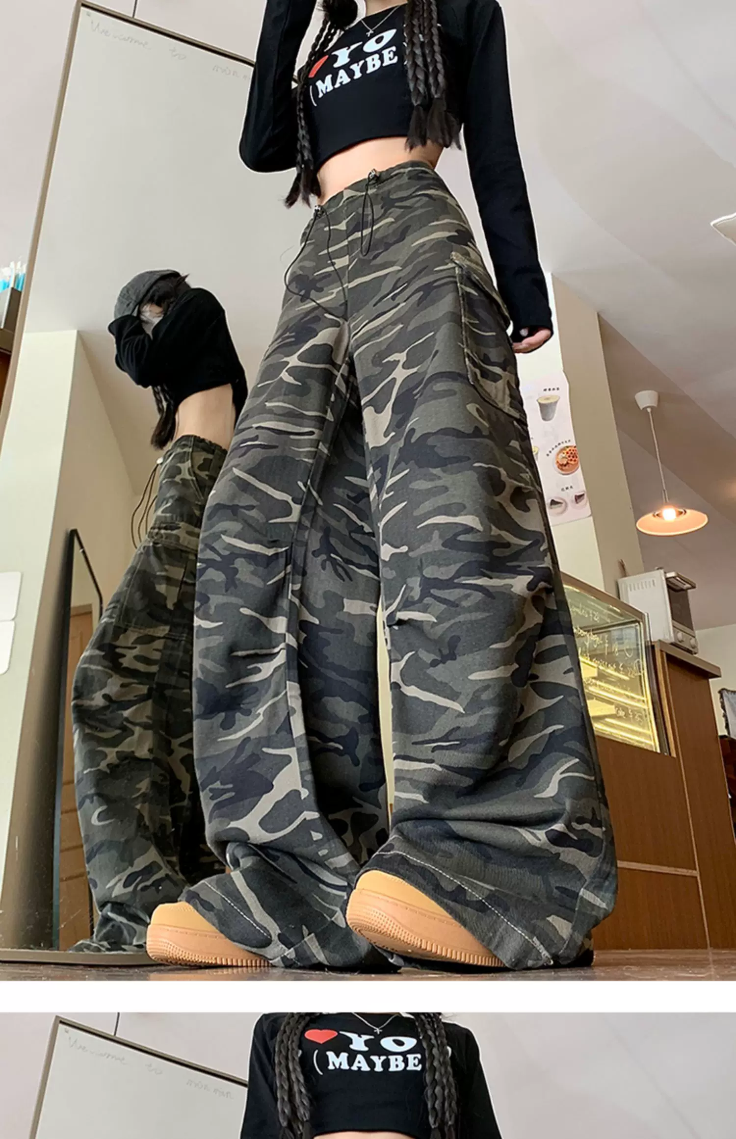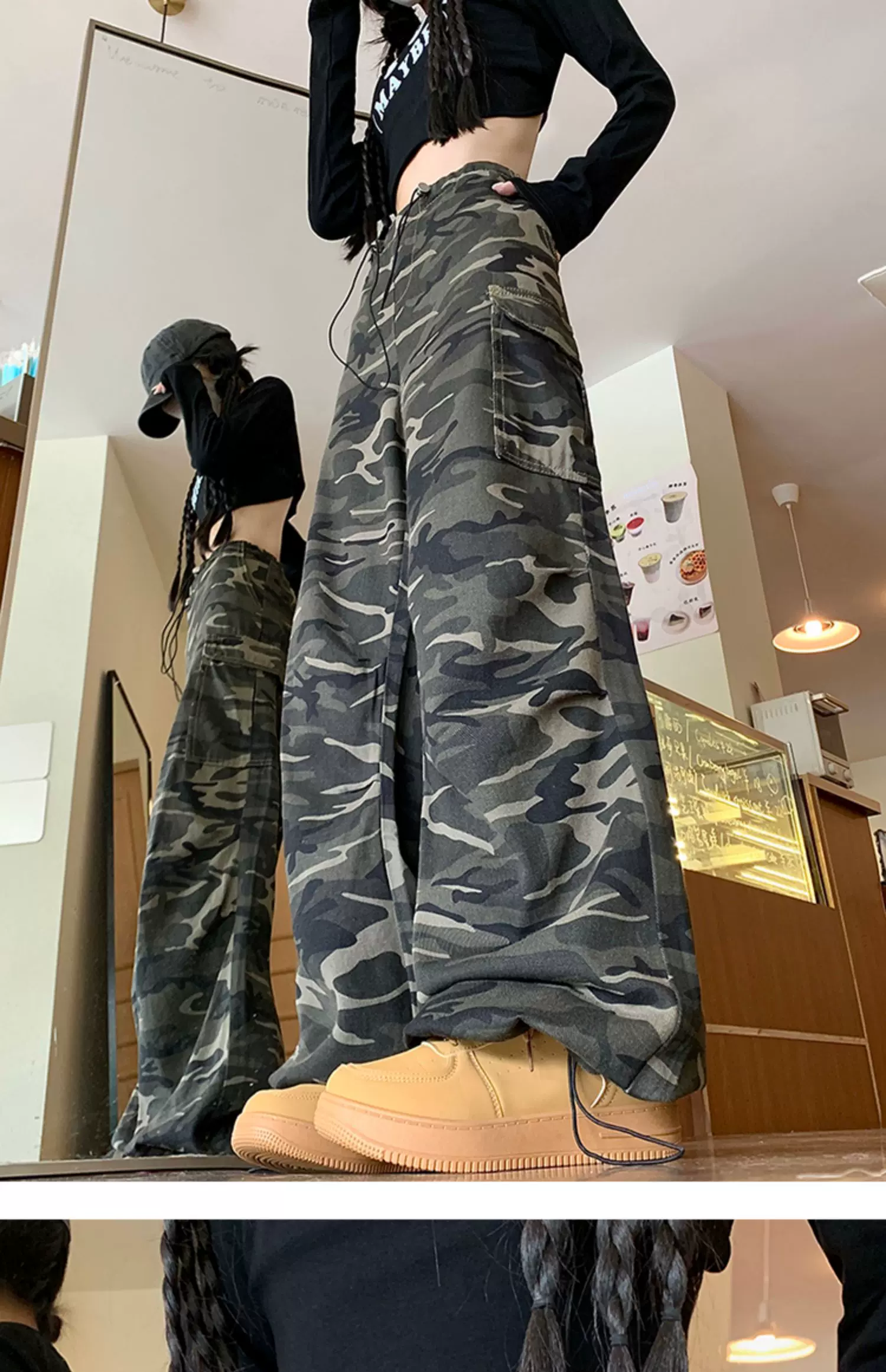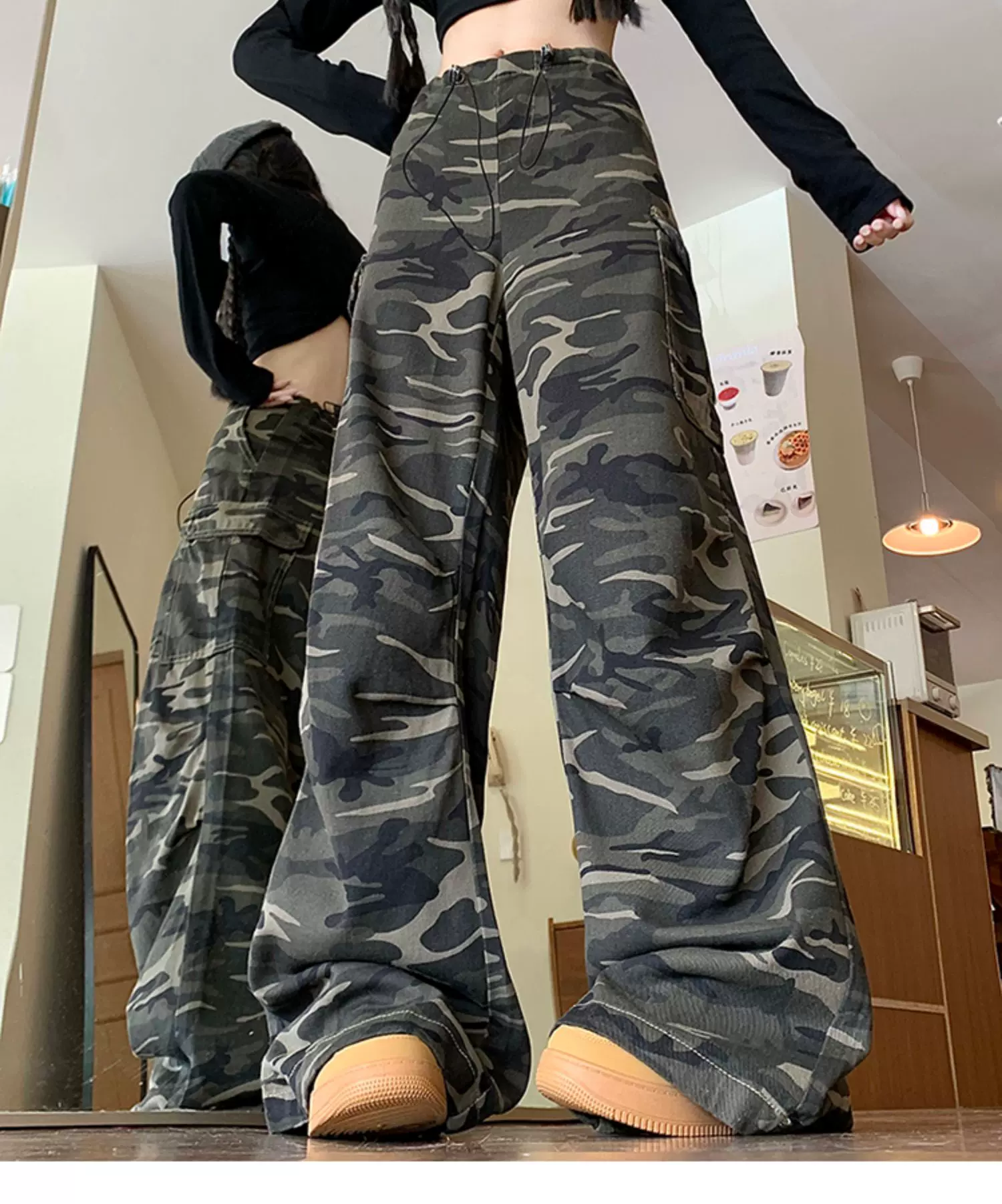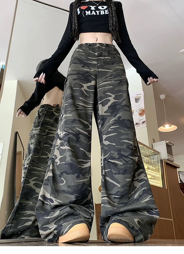 - Quần jean rằn ri phong cách hip-hop kiểu Mỹ dành cho nam và nữ, quần công sở dáng rộng mùa xuân thu, quần dài ống rộng hợp thời trang.