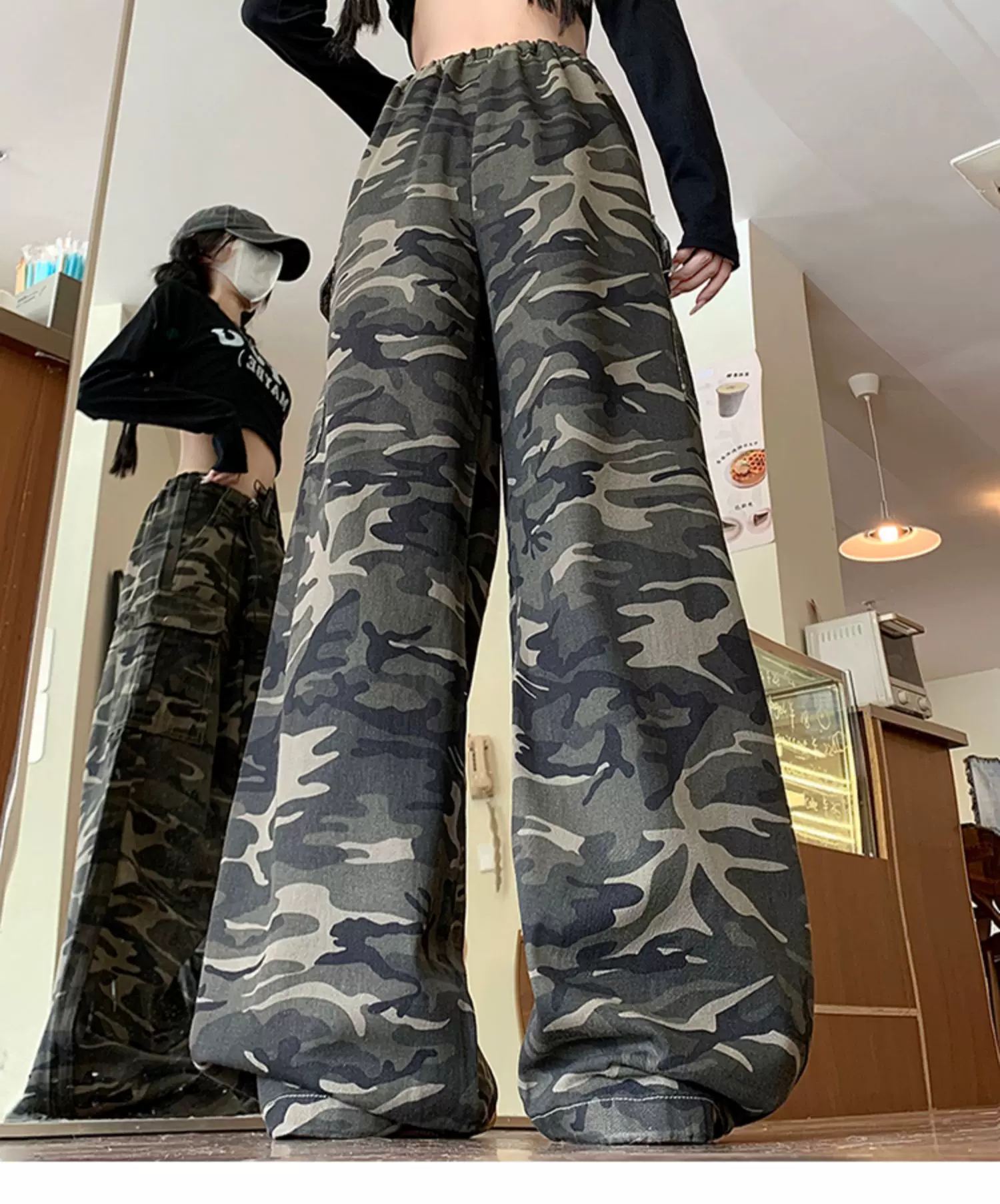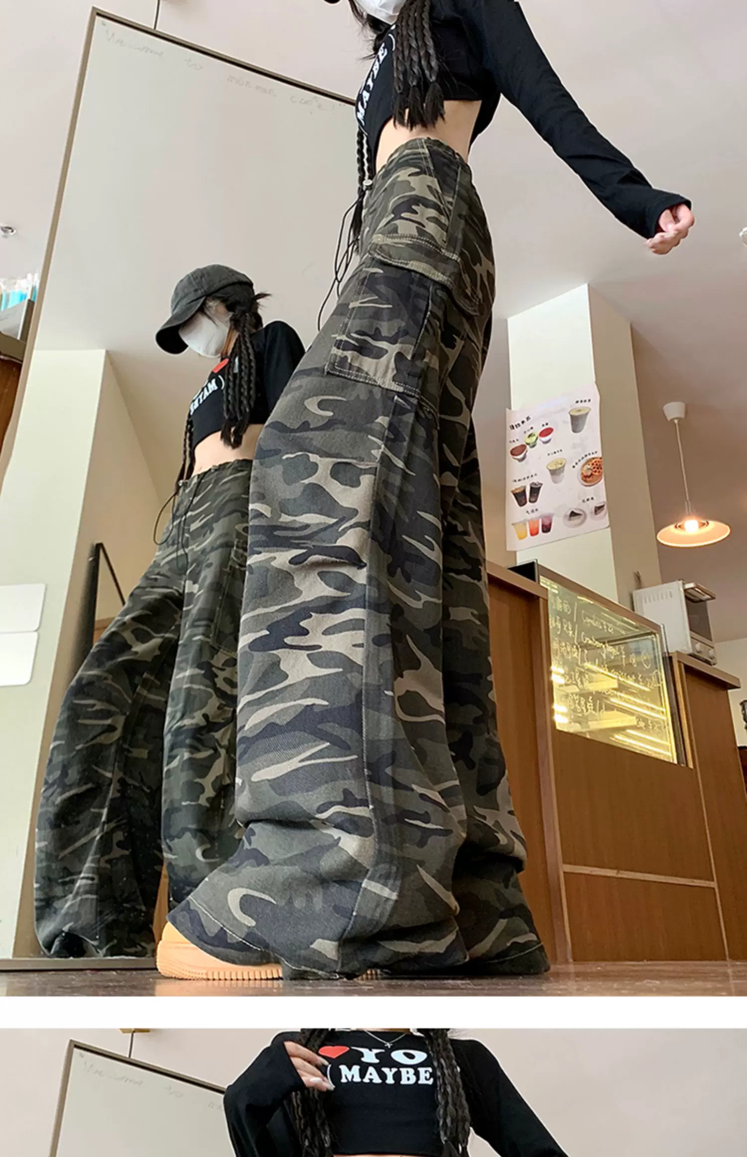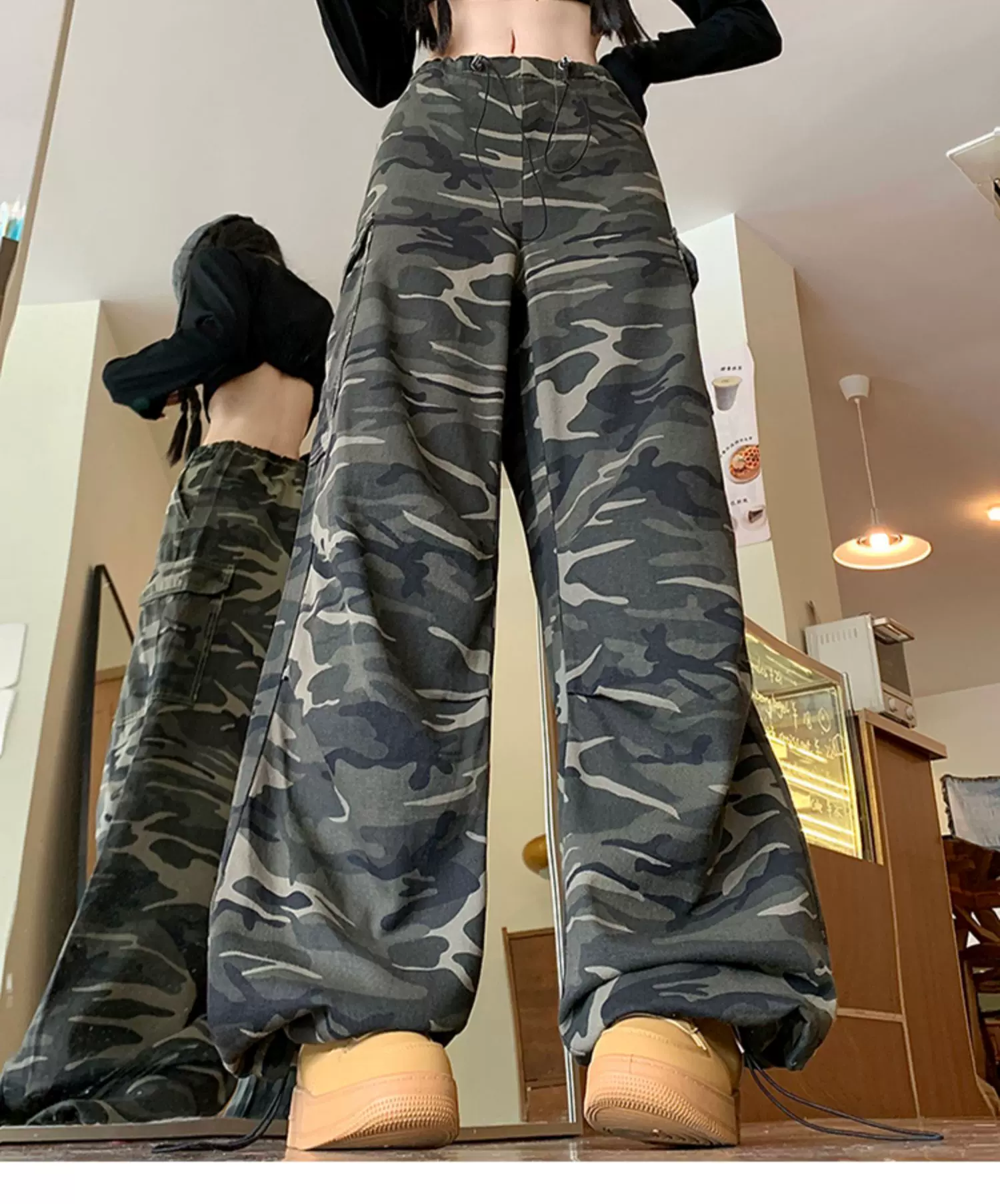 - Quần jean rằn ri phong cách hip-hop kiểu Mỹ dành cho nam và nữ, quần công sở dáng rộng mùa xuân thu, quần dài ống rộng hợp thời trang.