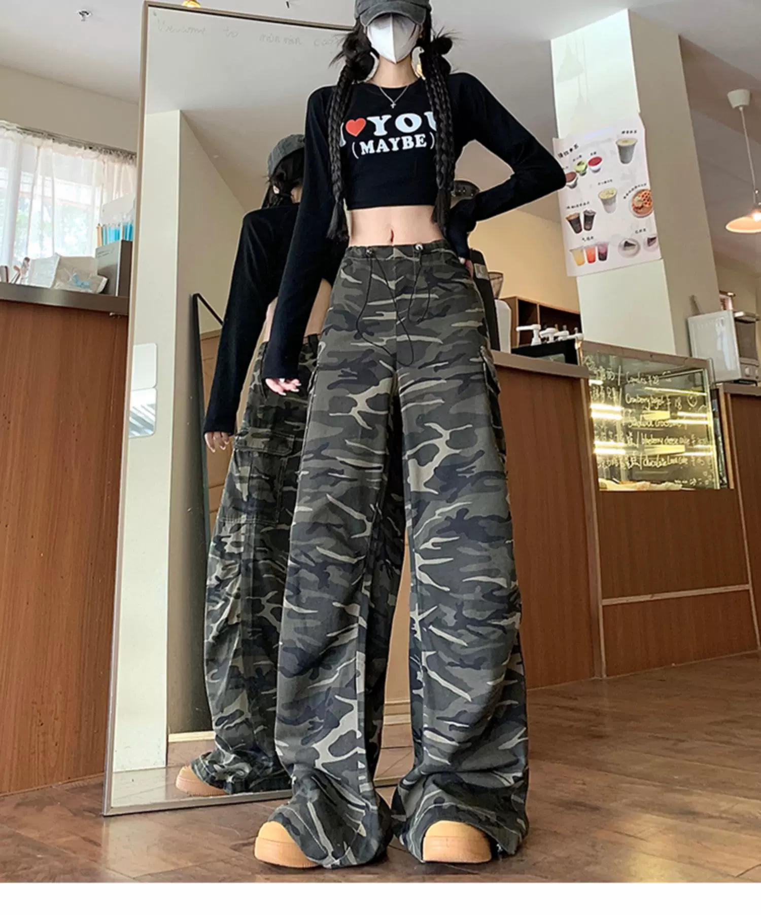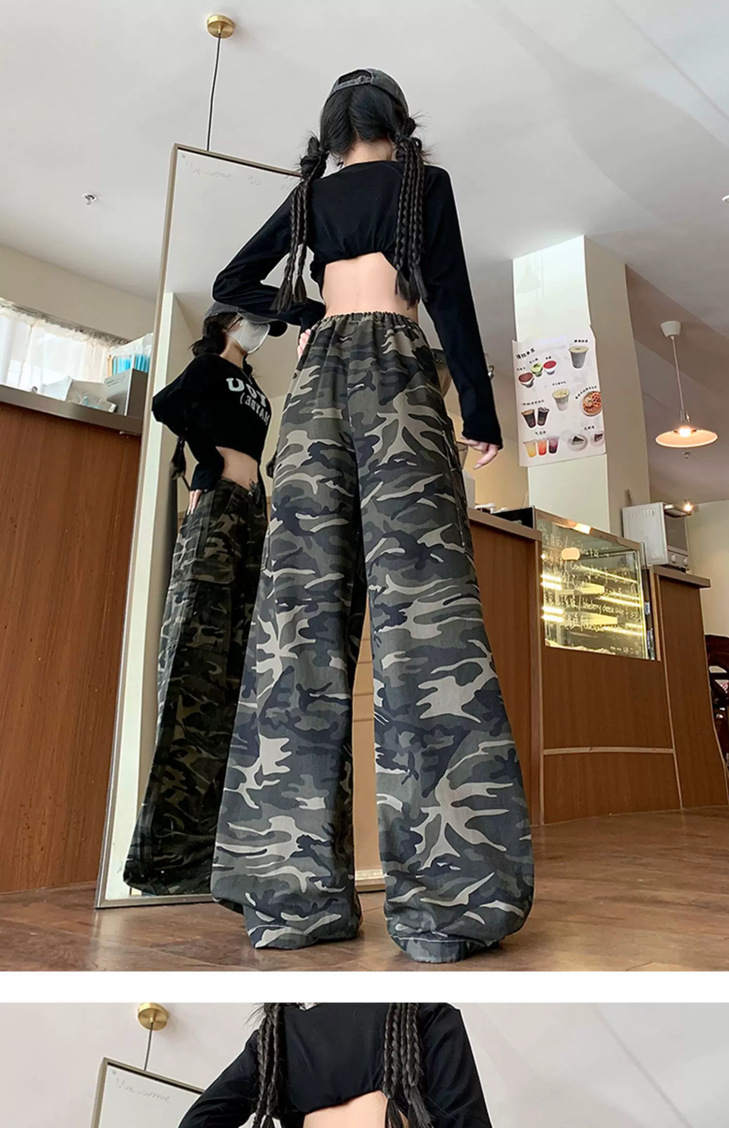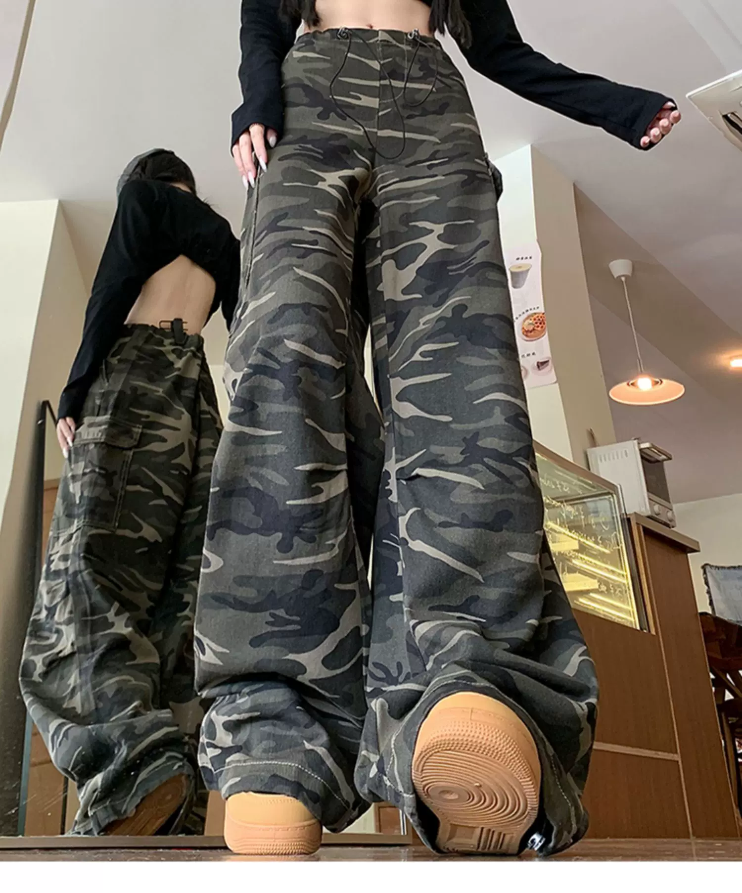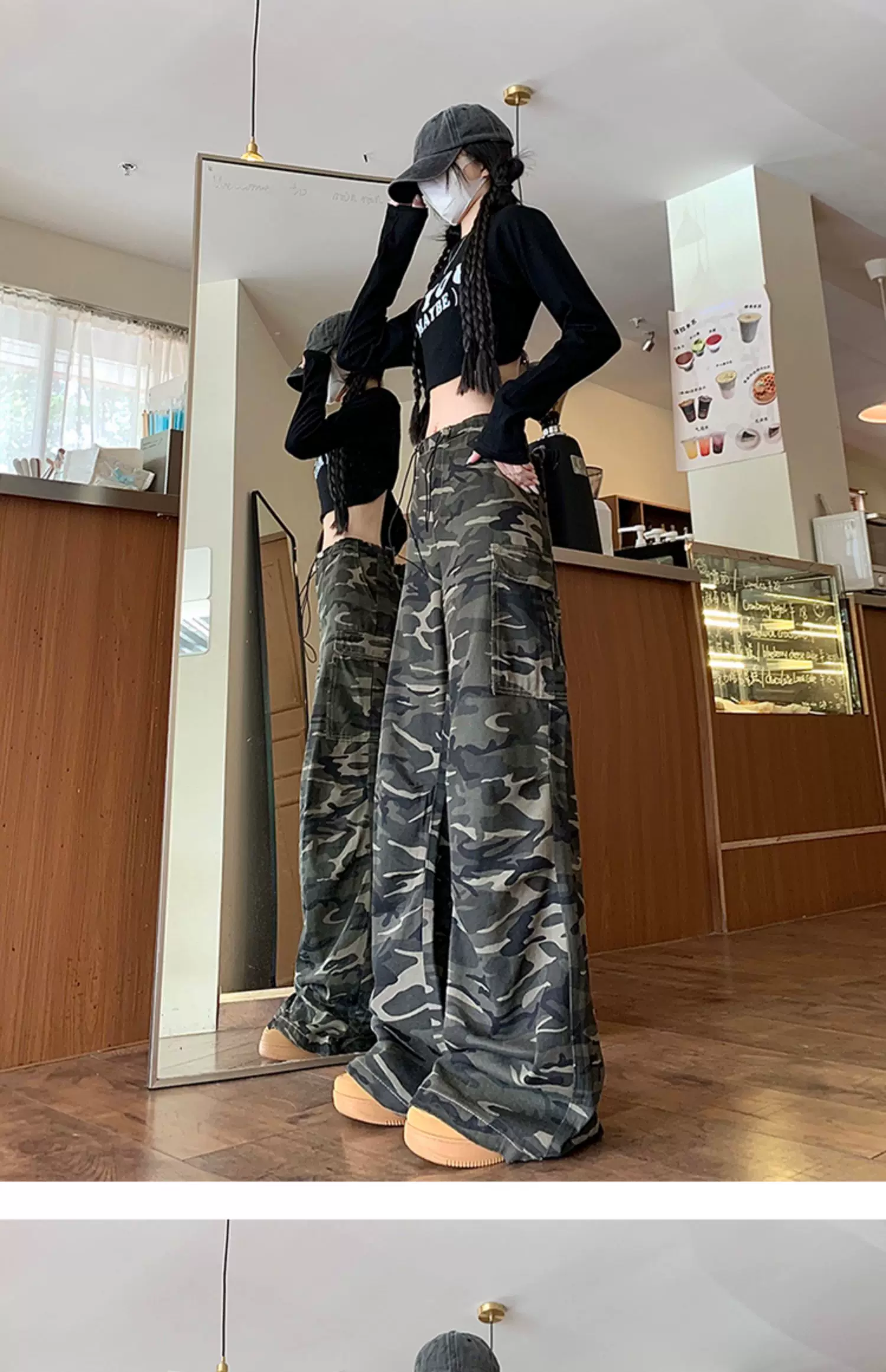 - Quần jean rằn ri phong cách hip-hop kiểu Mỹ dành cho nam và nữ, quần công sở dáng rộng mùa xuân thu, quần dài ống rộng hợp thời trang.