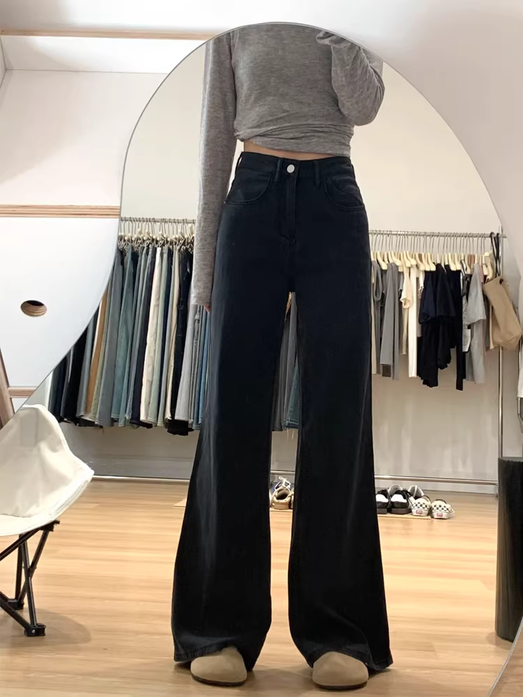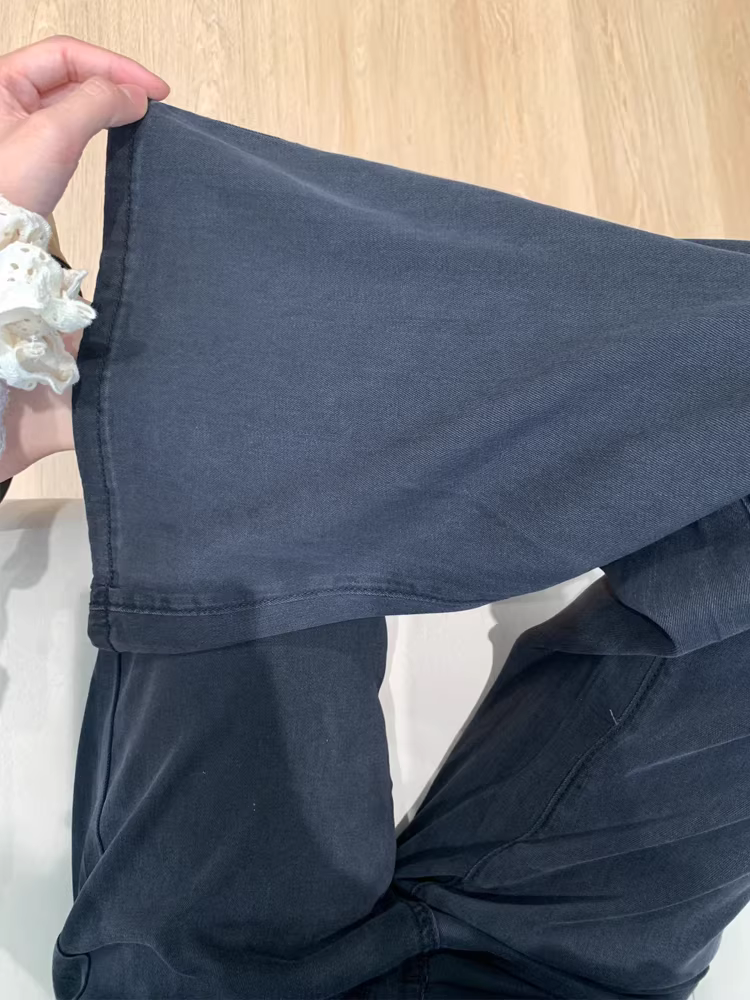 - Quần jean Tencel đen không bó sát dành cho nữ, cỡ lớn mùa hè, lưng cao, dáng suôn, tôn dáng, quần chuông bằng vải lụa băng