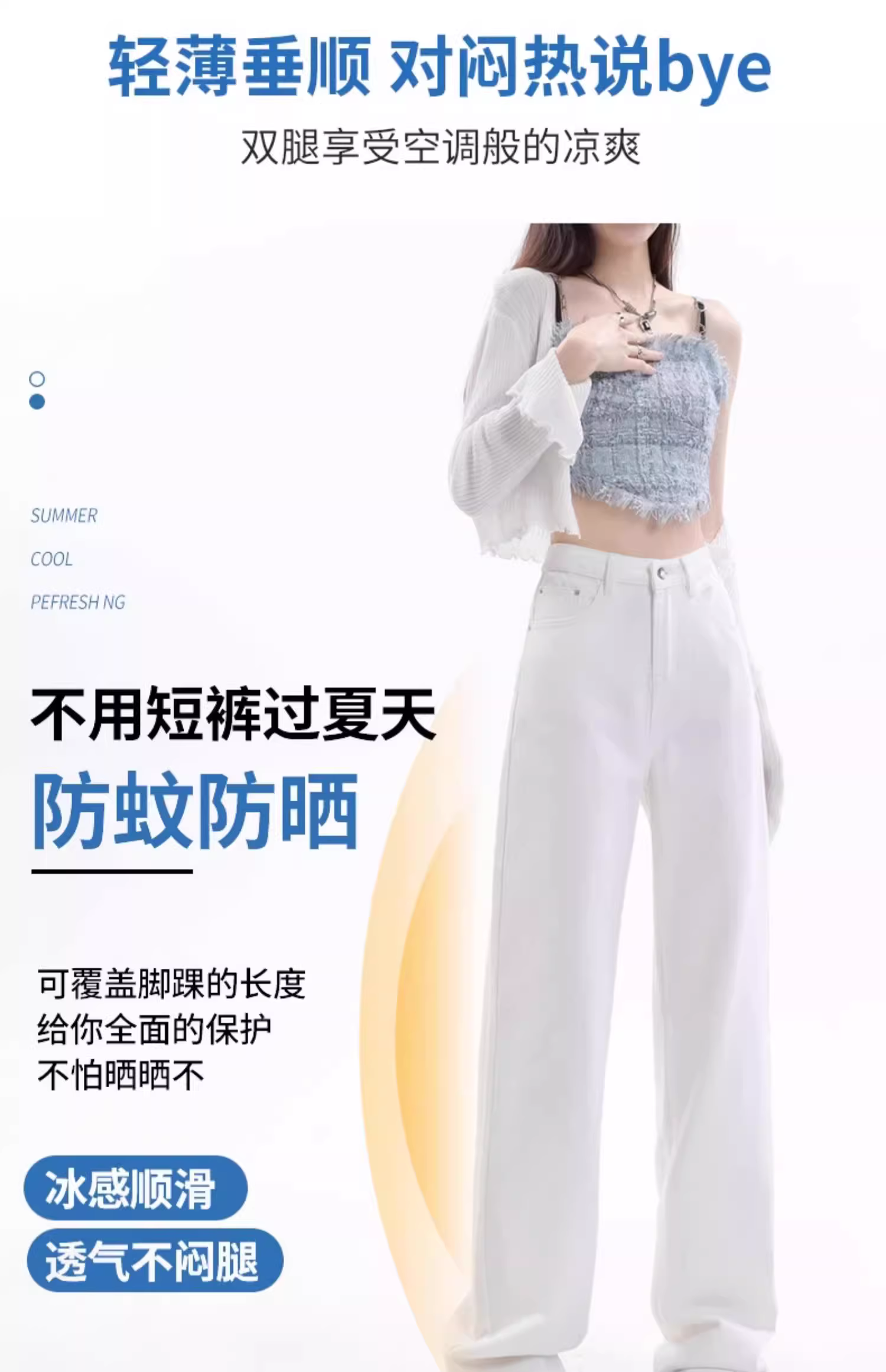 Quần jean tencel trắng dáng lê dành cho nữ, size lớn mùa hè, cạp cao, dáng rộng, mềm mại, tôn dáng, quần ống rộng