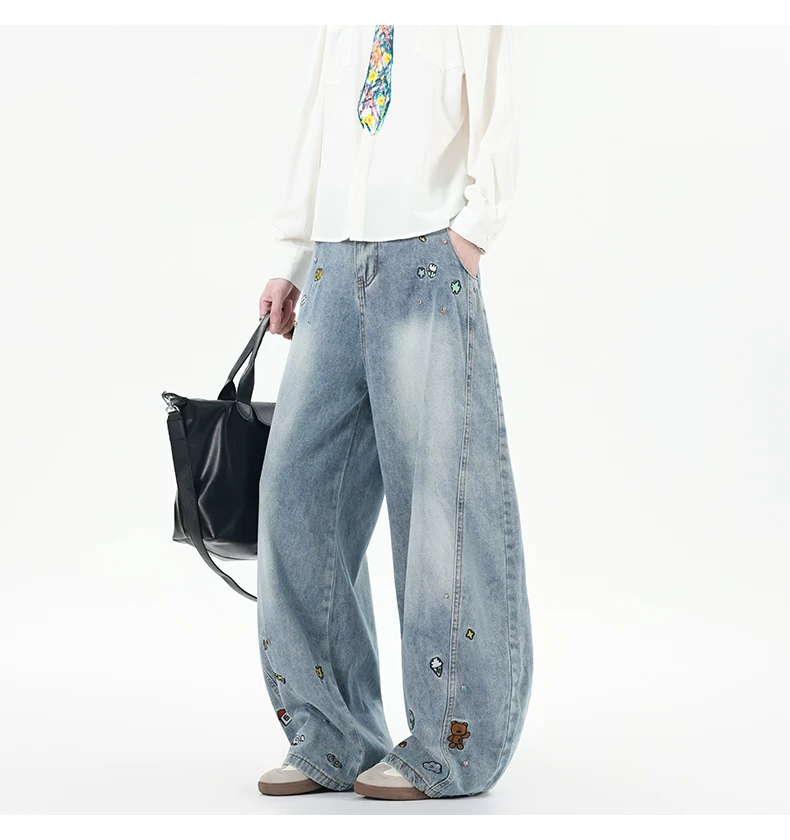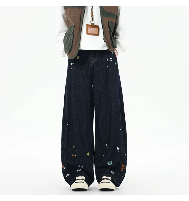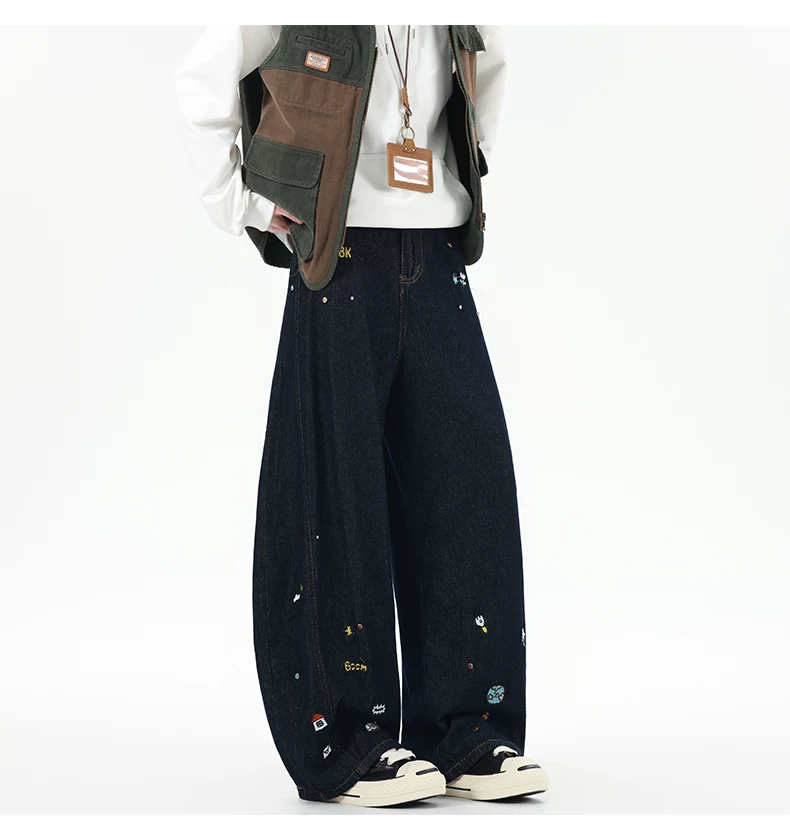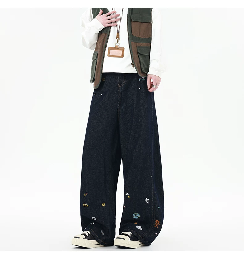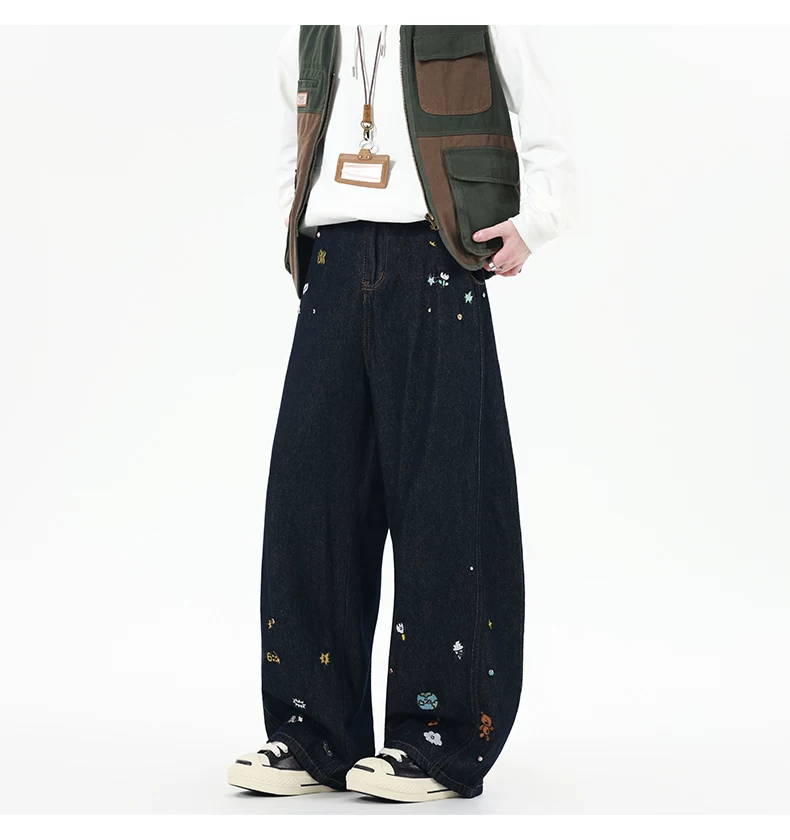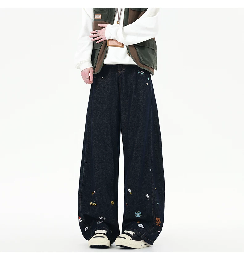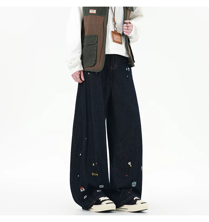 - Quần jean thêu hình kiếm phong cách Mỹ dành cho nam và nữ, quần dài ống đứng giặt mài thời thượng, quần ống rộng đa năng dành cho các cặp đôi.