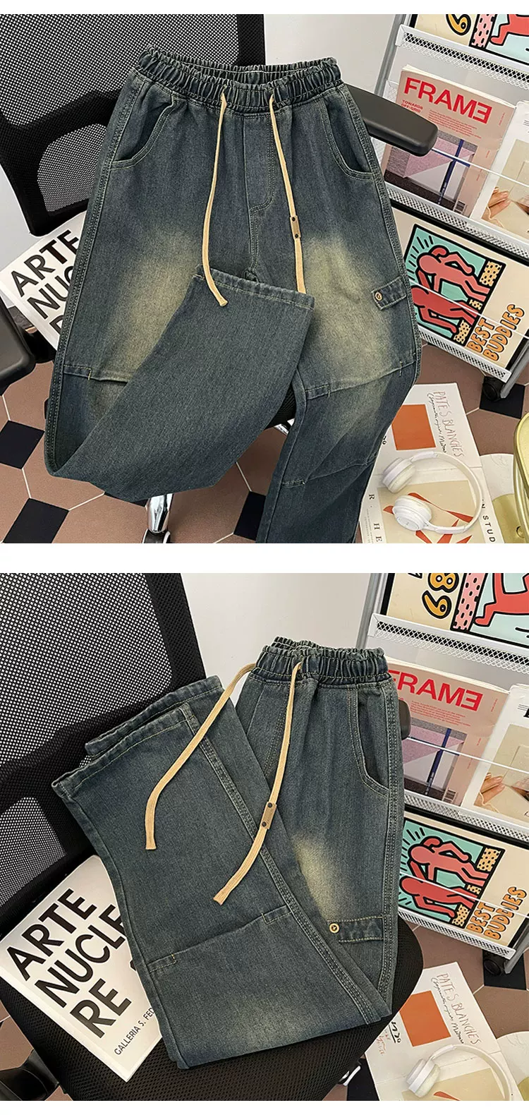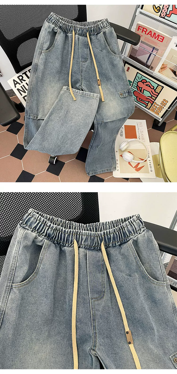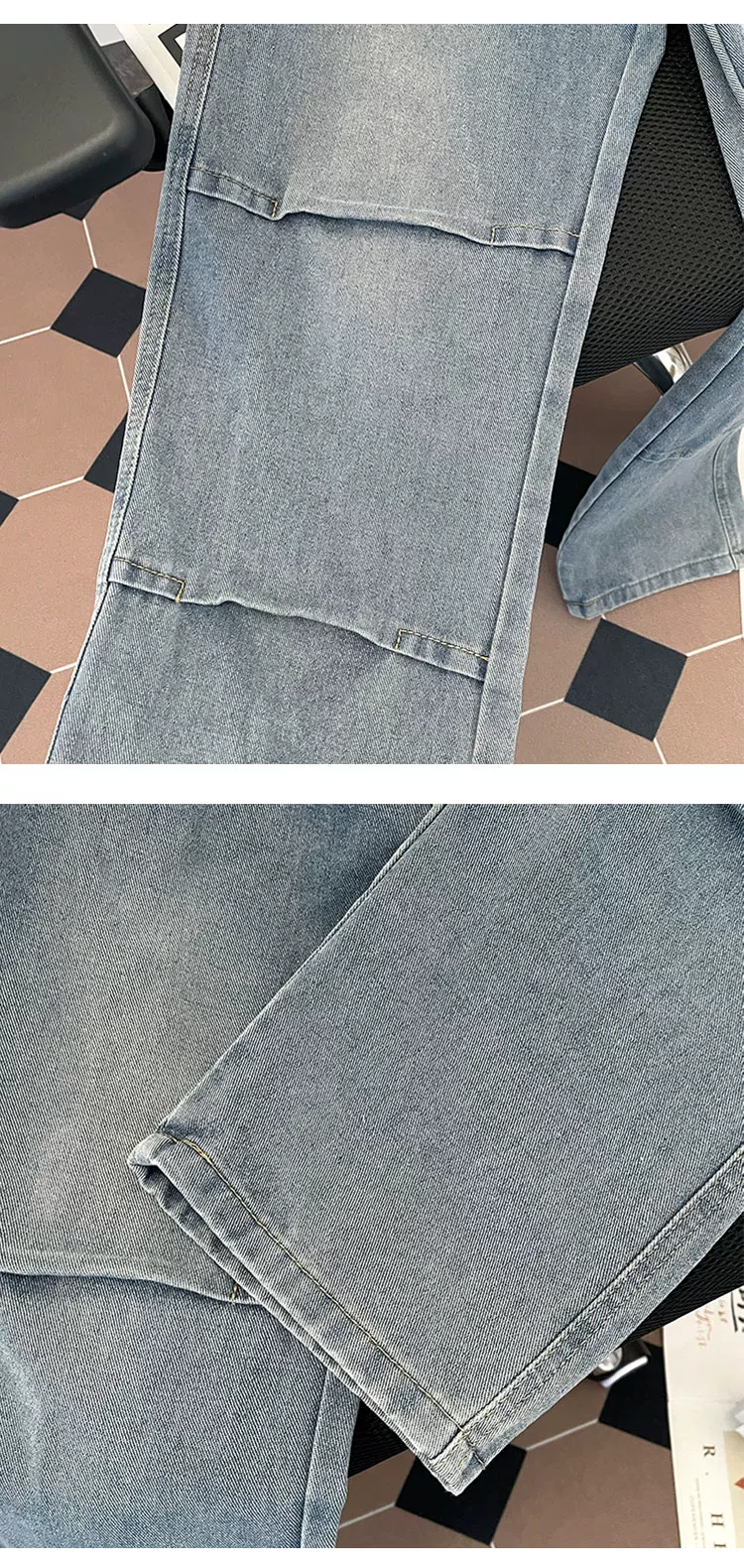 - Quần jean thiết kế xếp ly kiểu Mỹ dành cho nam, kiểu dáng mỏng mùa hè, quần ống đứng rộng rãi, quần dài phong cách casual cá tính.