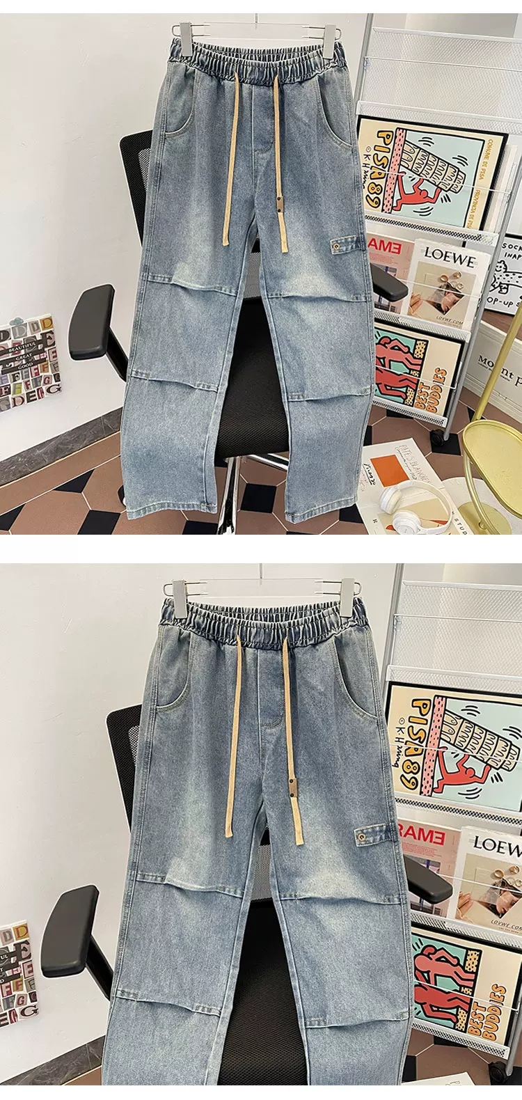 Quần jean thiết kế xếp ly kiểu Mỹ dành cho nam, kiểu dáng mỏng mùa hè, quần ống đứng rộng rãi, quần dài phong cách casual cá tính.