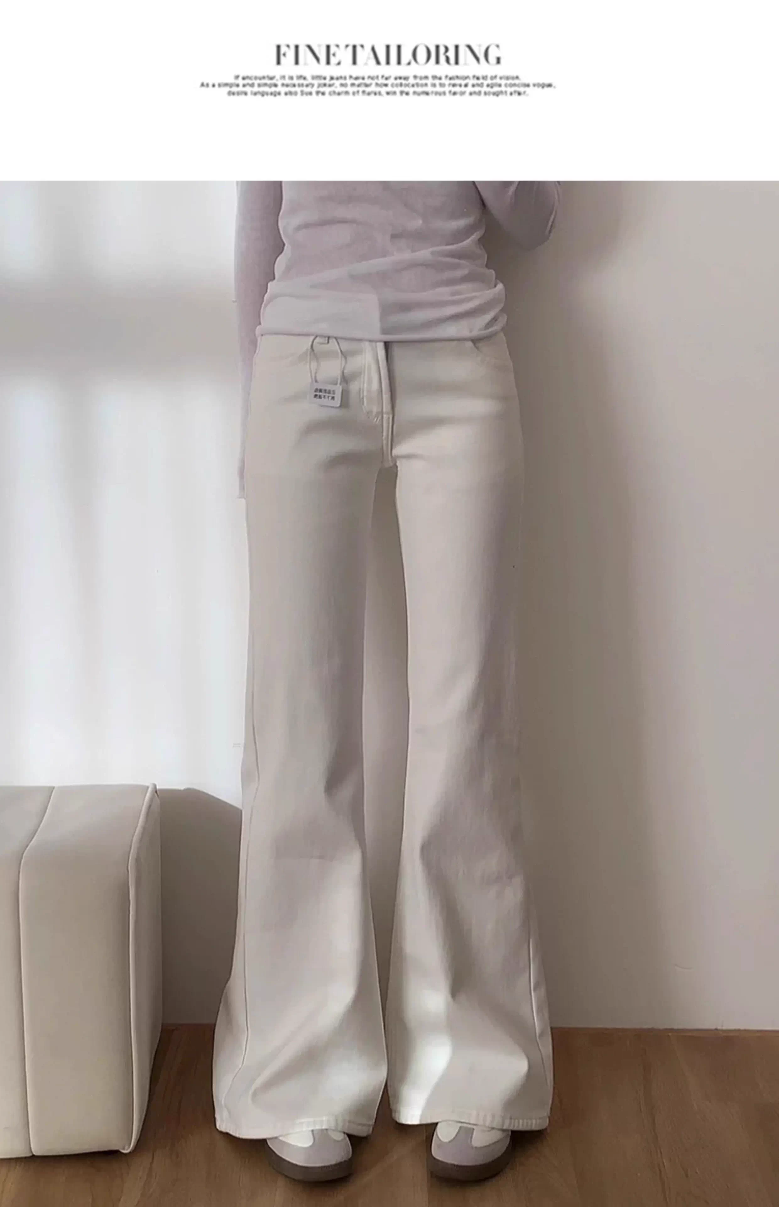 - Quần jean trắng dáng loe nữ, thu đông 2025, size lớn, cạp cao, co giãn, tôn dáng, dành cho người có dáng quả lê, quần ống chuông
