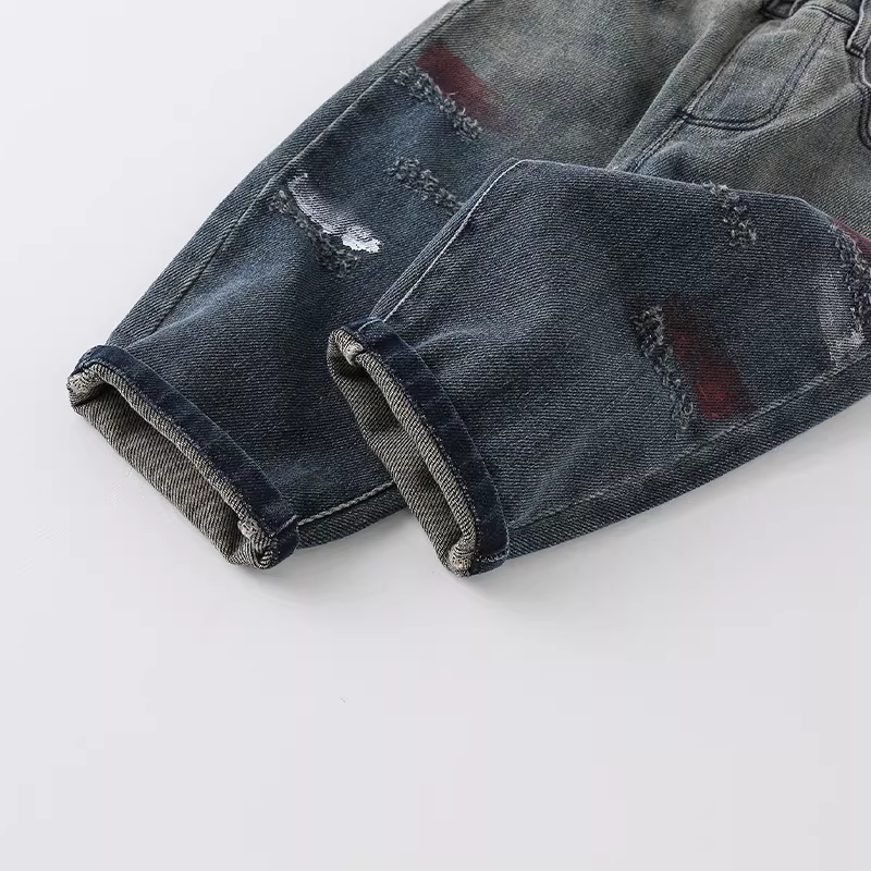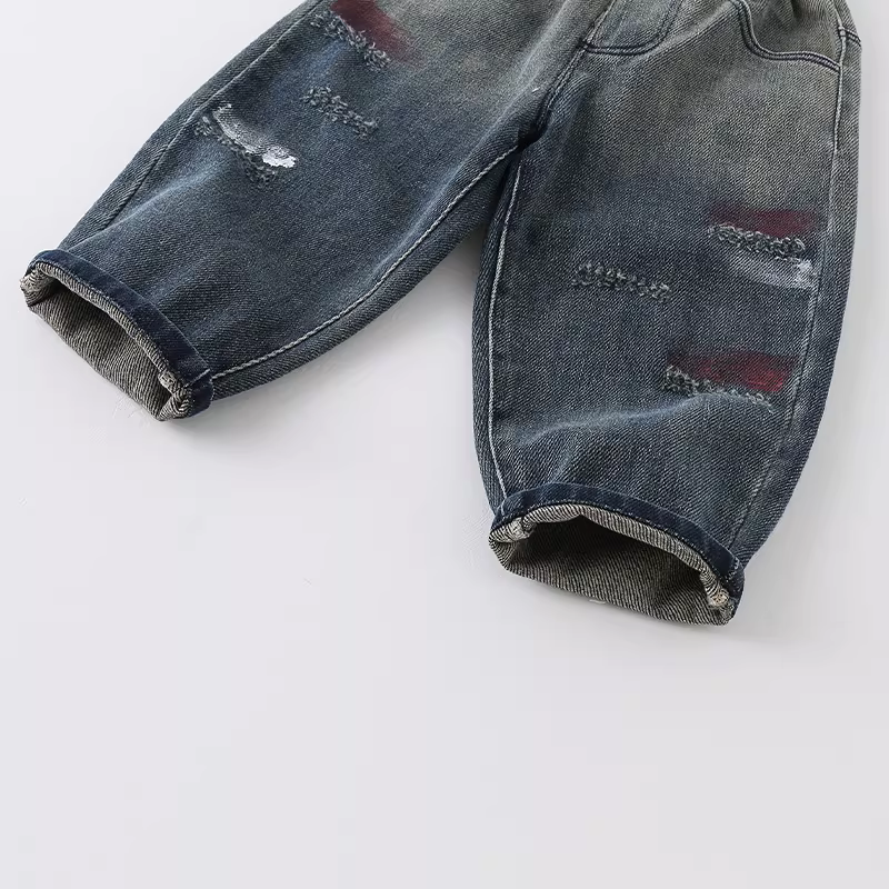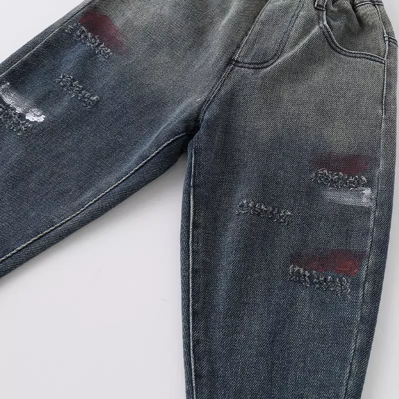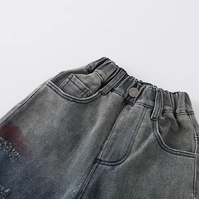 - Quần jean trẻ em thu đông 2025 kiểu mới thời trang đa năng in mặt cười cho bé trai quần dài AK880
