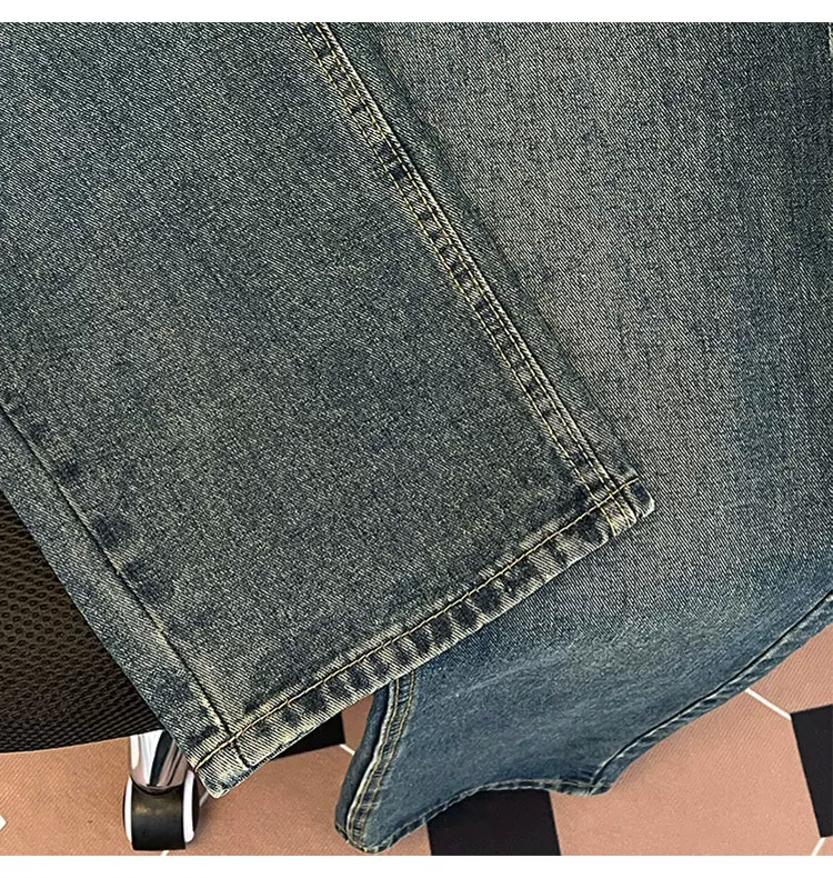 Quần jean vintage mùa hè dành cho nam, quần dài kiểu Mỹ cổ điển, quần dài ống rộng thời trang đa năng, phong cách thường ngày.