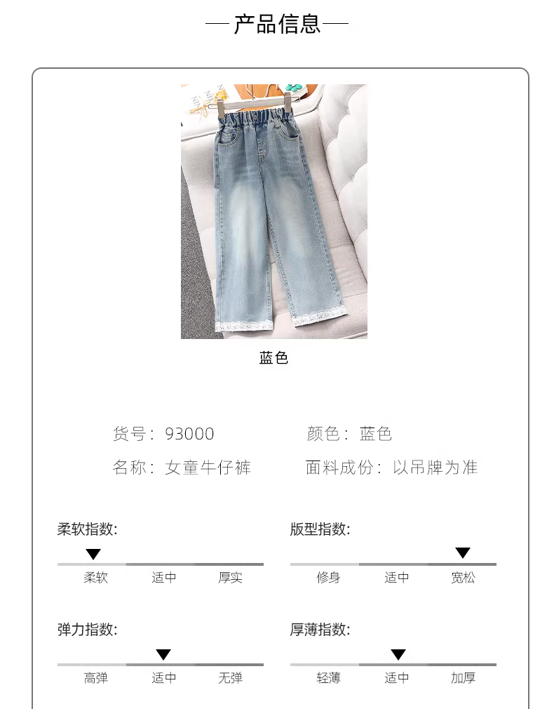 - Quần jeans bé gái xuân thu 2025 kiểu mới quần ống rộng ren trẻ em quần thẳng dáng xuông mặc mùa thu