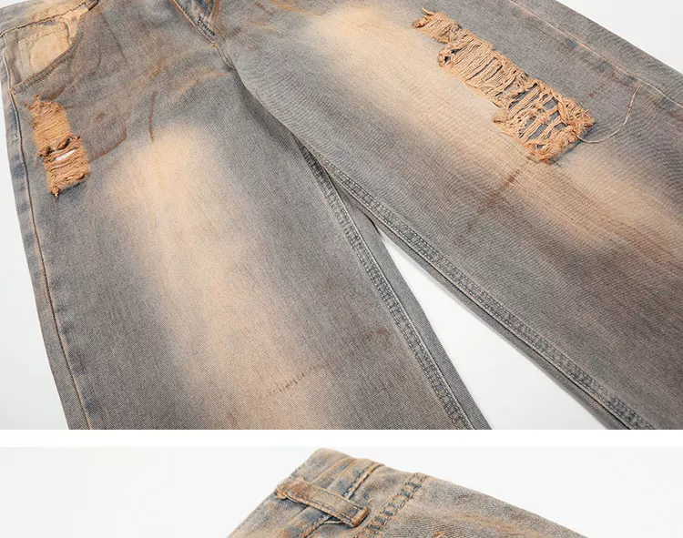 - Quần jeans K787 kiểu Mỹ cổ điển, xước rách, unisex, phong cách hip-hop, dáng rộng, ống thẳng, mặc thường ngày