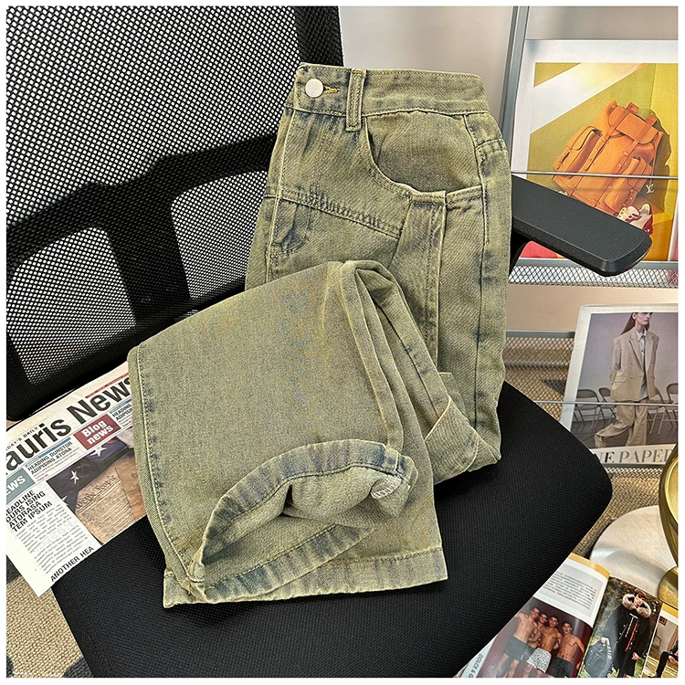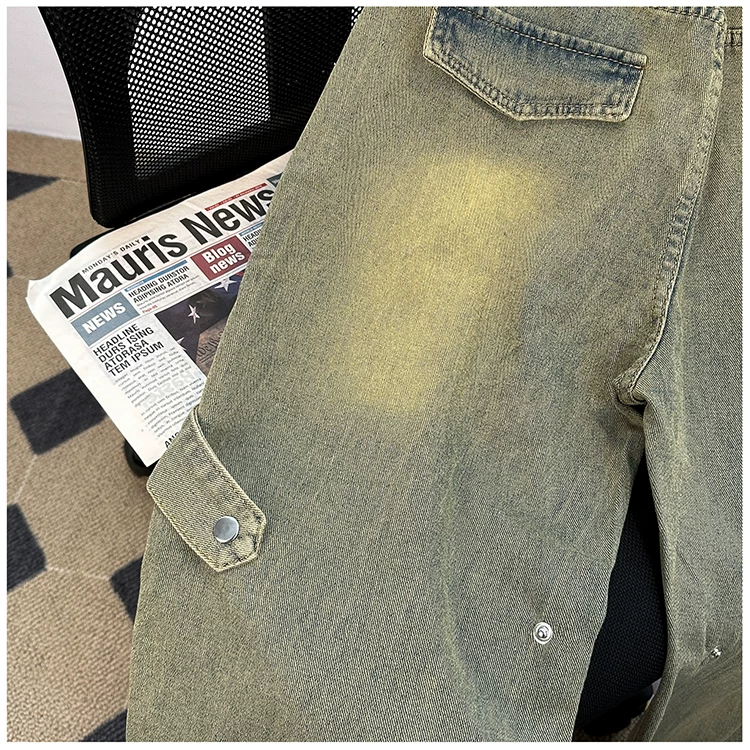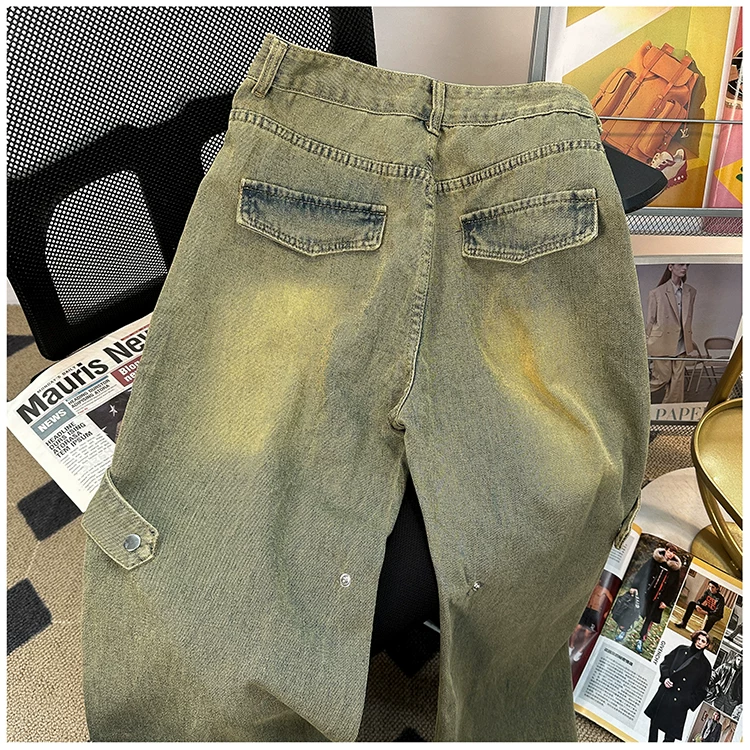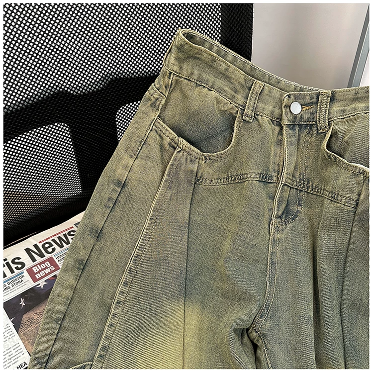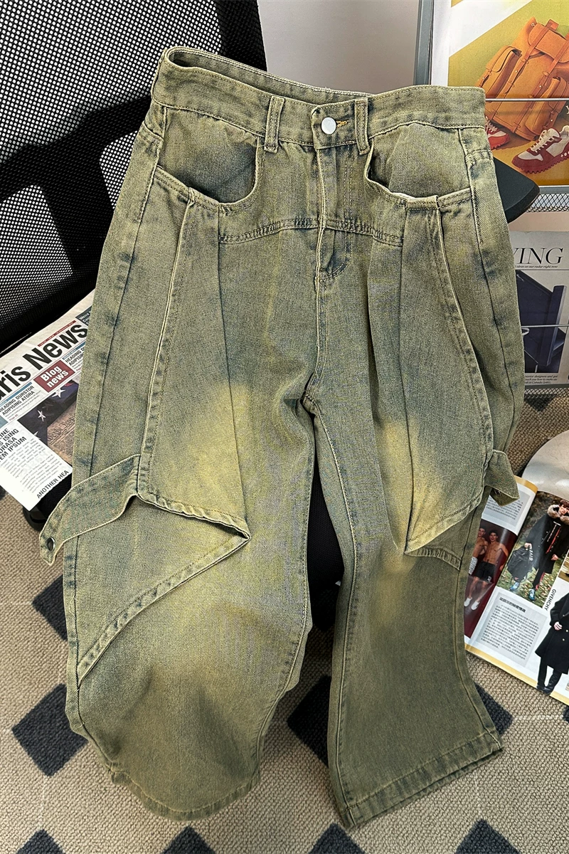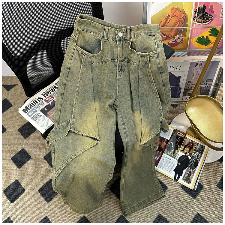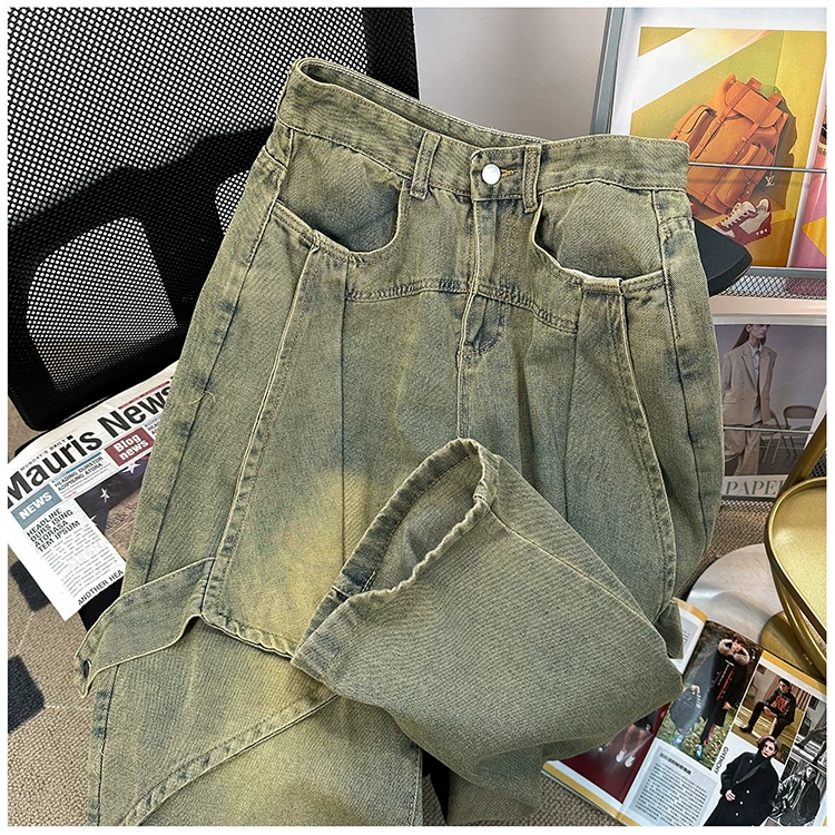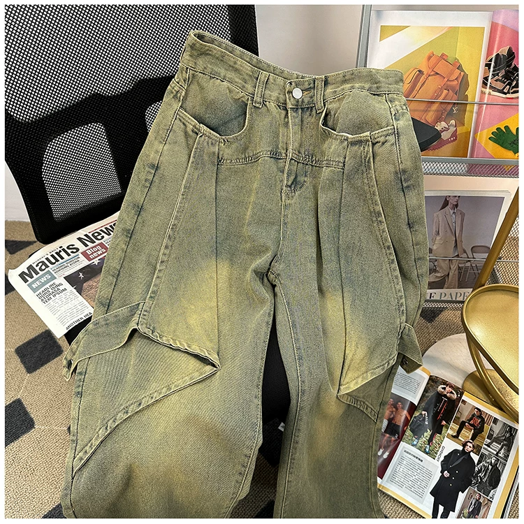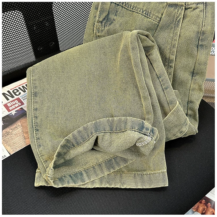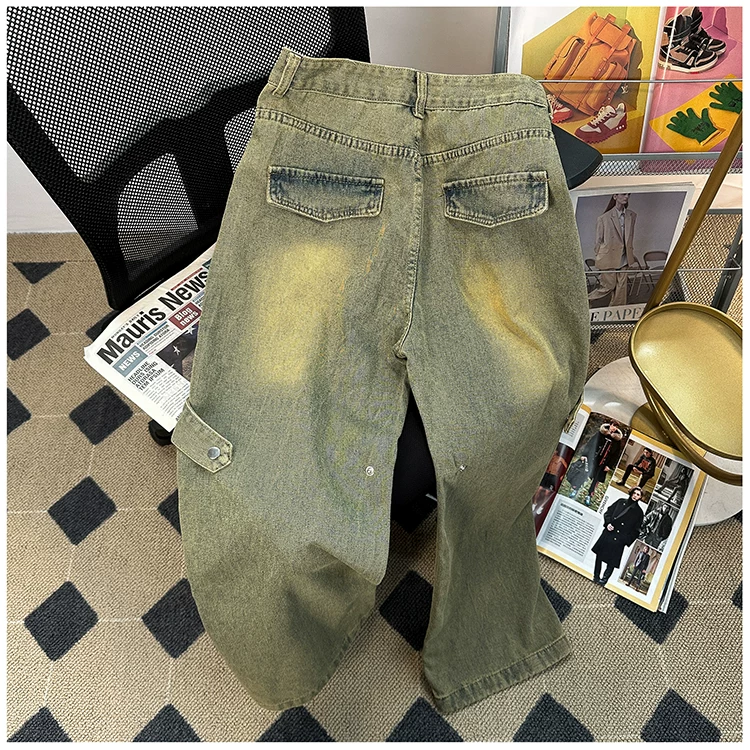 Quần jeans nam chất liệu dày dặn, thiết kế phá cách, xu hướng mới mùa thu 2024, quần dài chạm đất, kiểu dáng rộng thùng thình phong cách Mỹ, chất liệu washed.