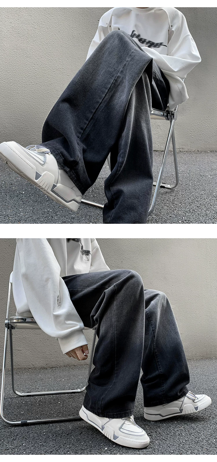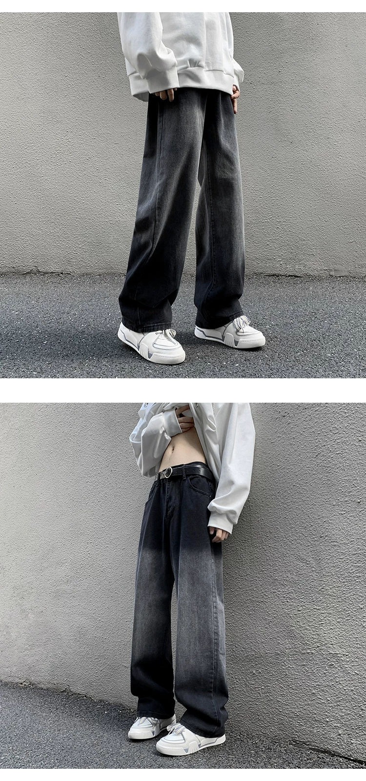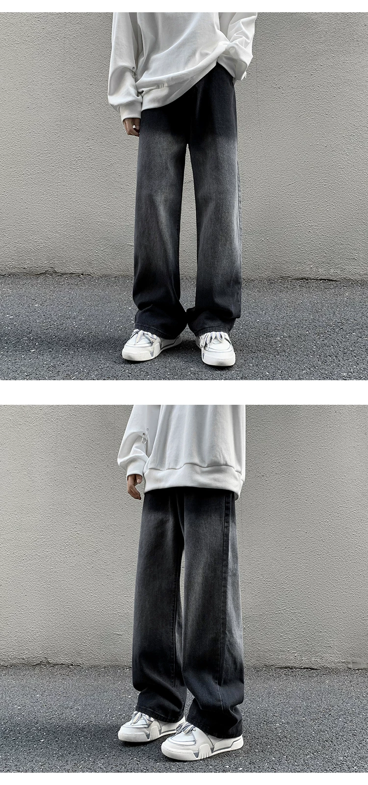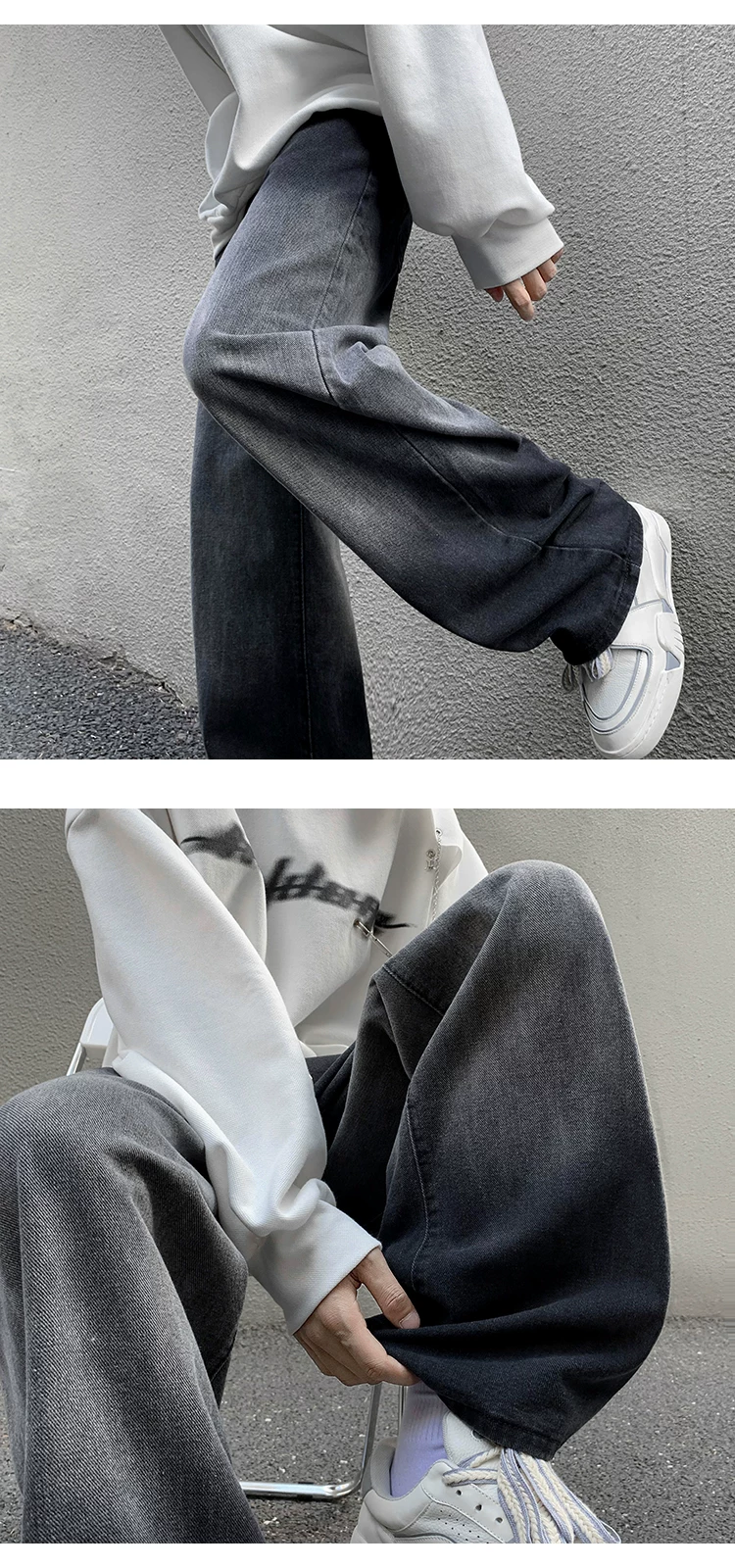 - Quần jeans nam kiểu gradient, mùa xuân, dáng rộng, phong cách đường phố, thương hiệu thời thượng, quần ống rộng suông.