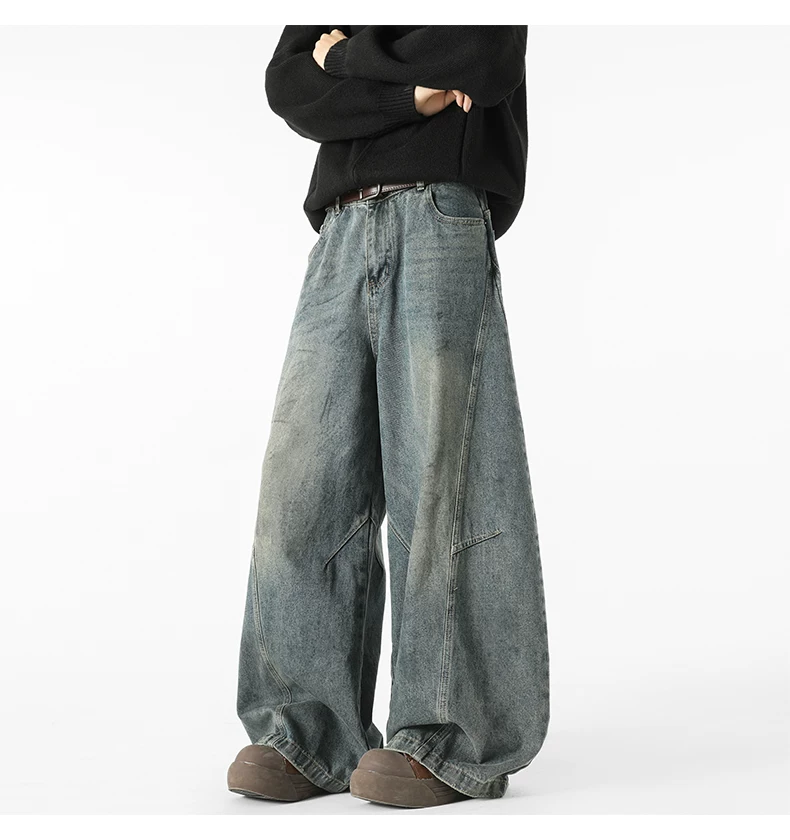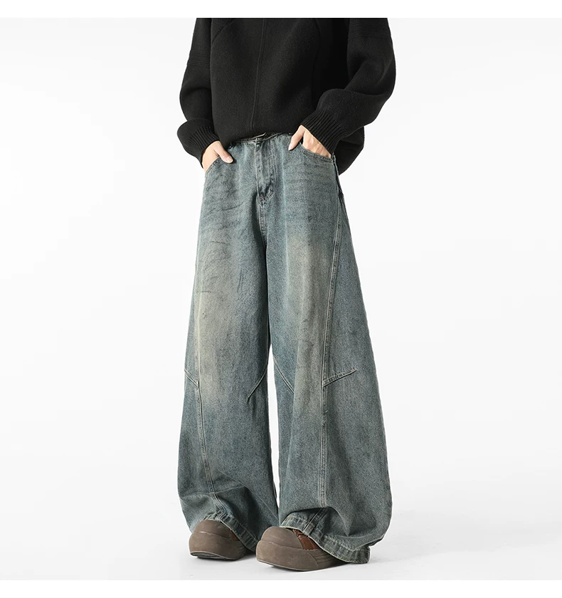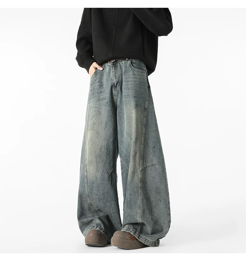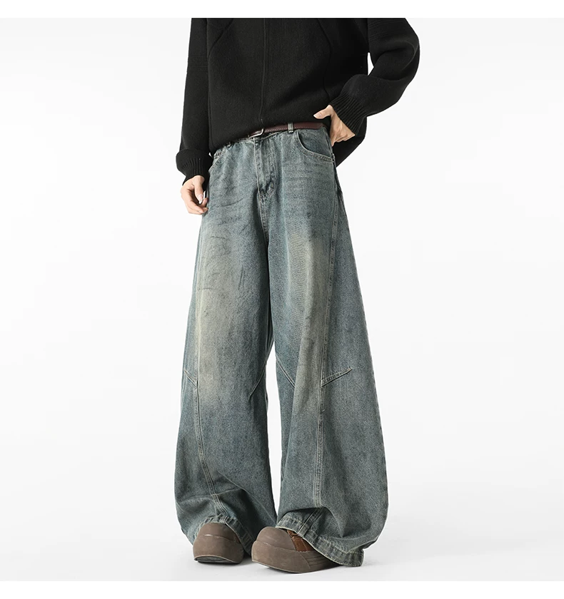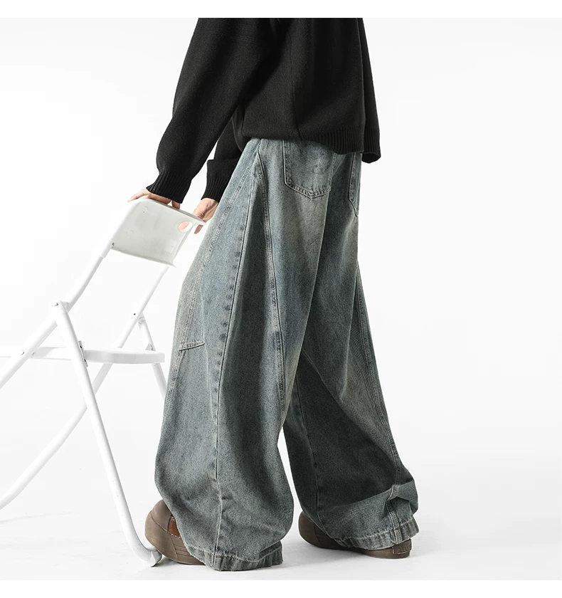 - Quần jeans nam kiểu Mỹ cổ điển, thiết kế thương hiệu thời thượng thu đông mới, quần ống rộng dài chạm đất, kiểu dáng xước.