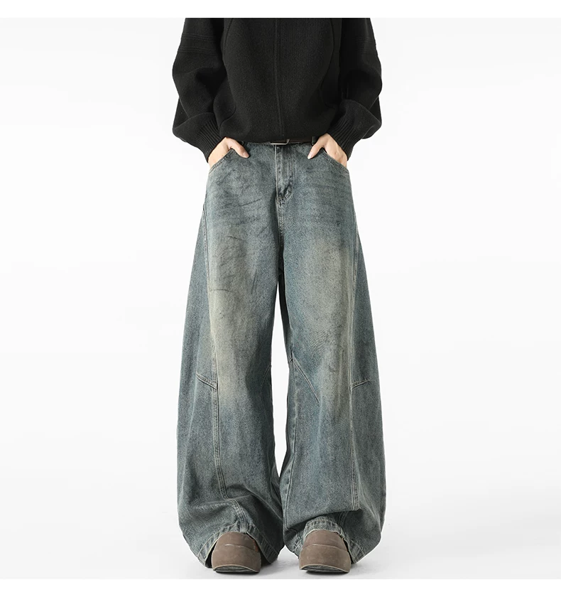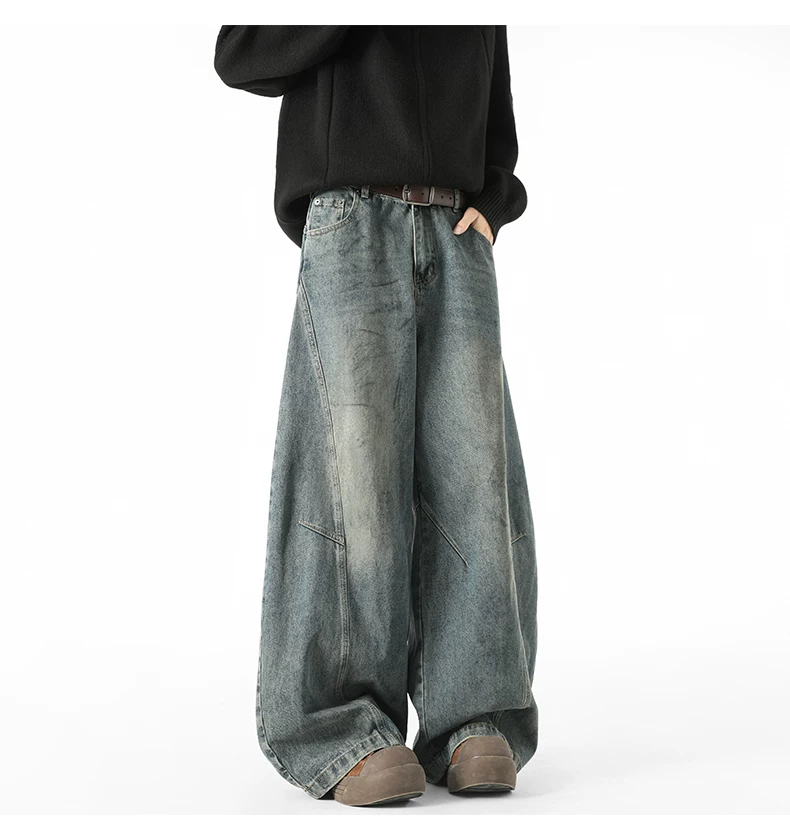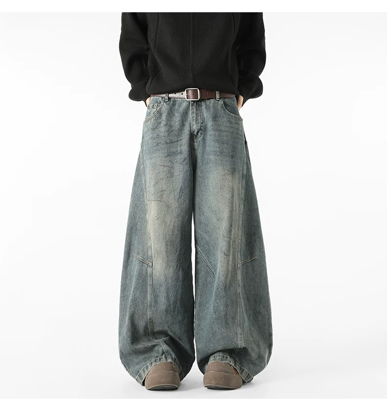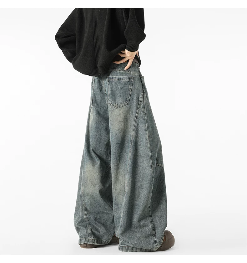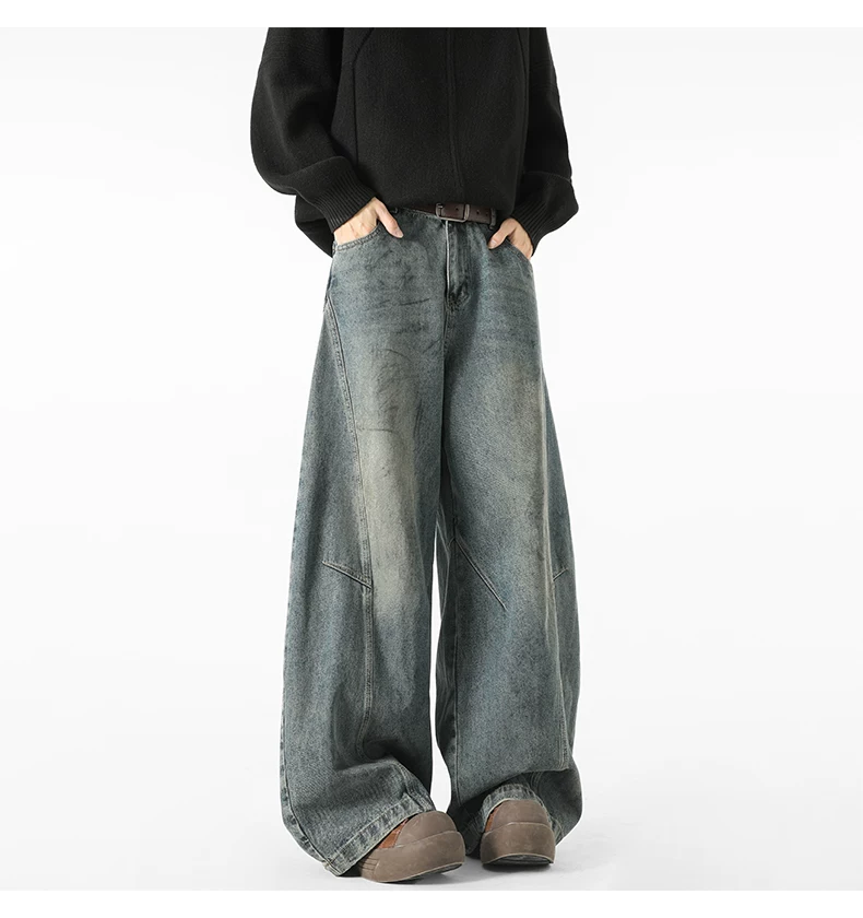 - Quần jeans nam kiểu Mỹ cổ điển, thiết kế thương hiệu thời thượng thu đông mới, quần ống rộng dài chạm đất, kiểu dáng xước.