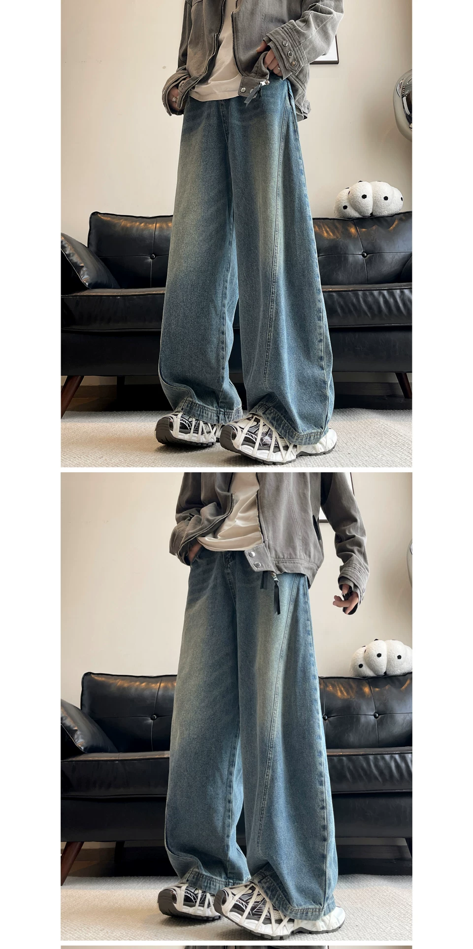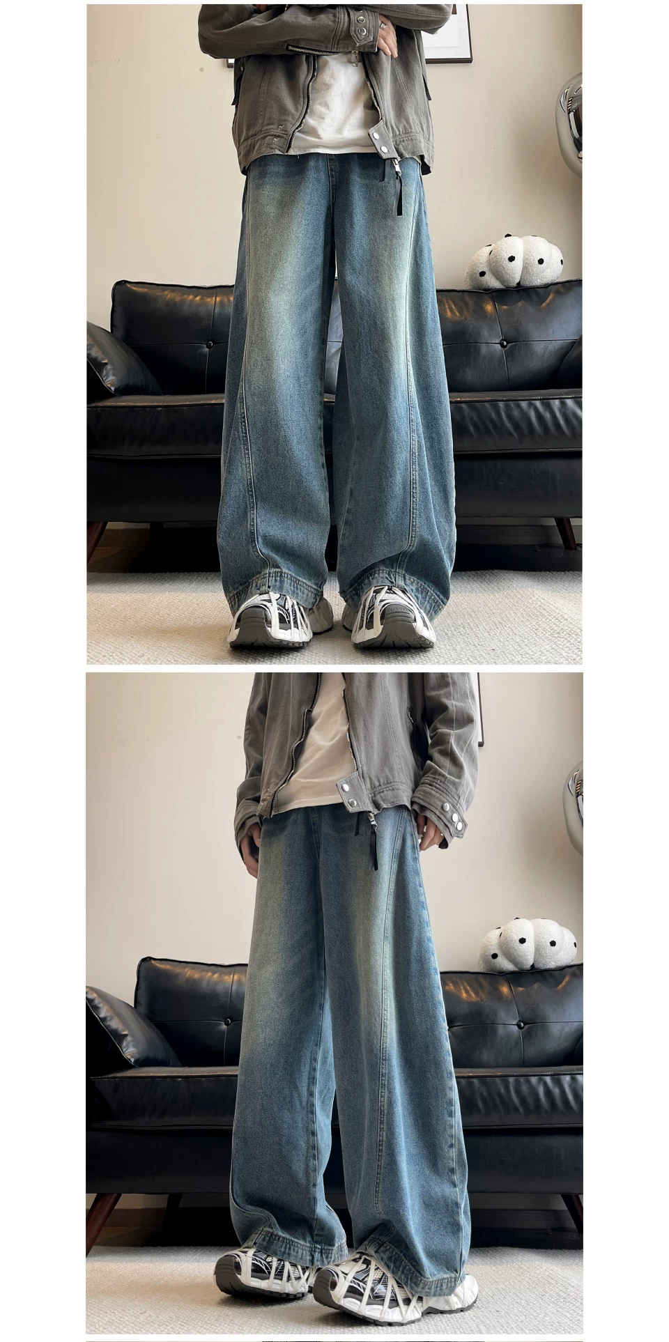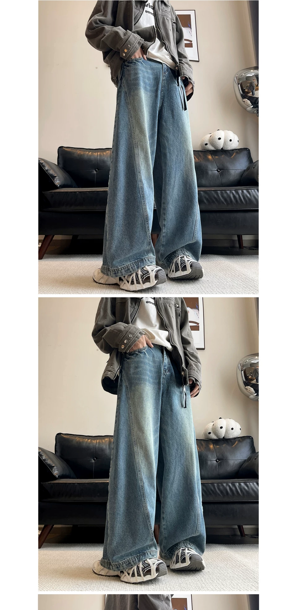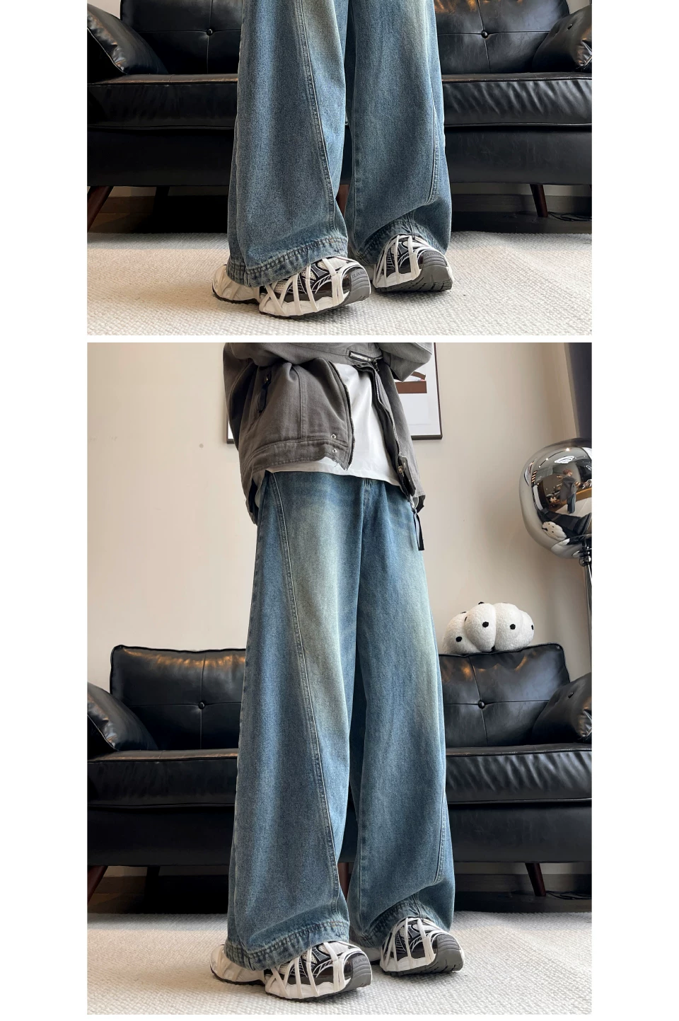 - Quần jeans nam phong cách hip-hop Mỹ, quần dài dáng rộng, ống loe nhẹ, chất liệu washed, hợp thời trang xuân thu.