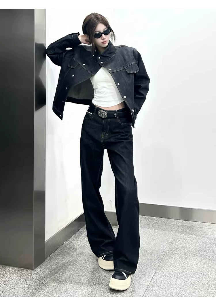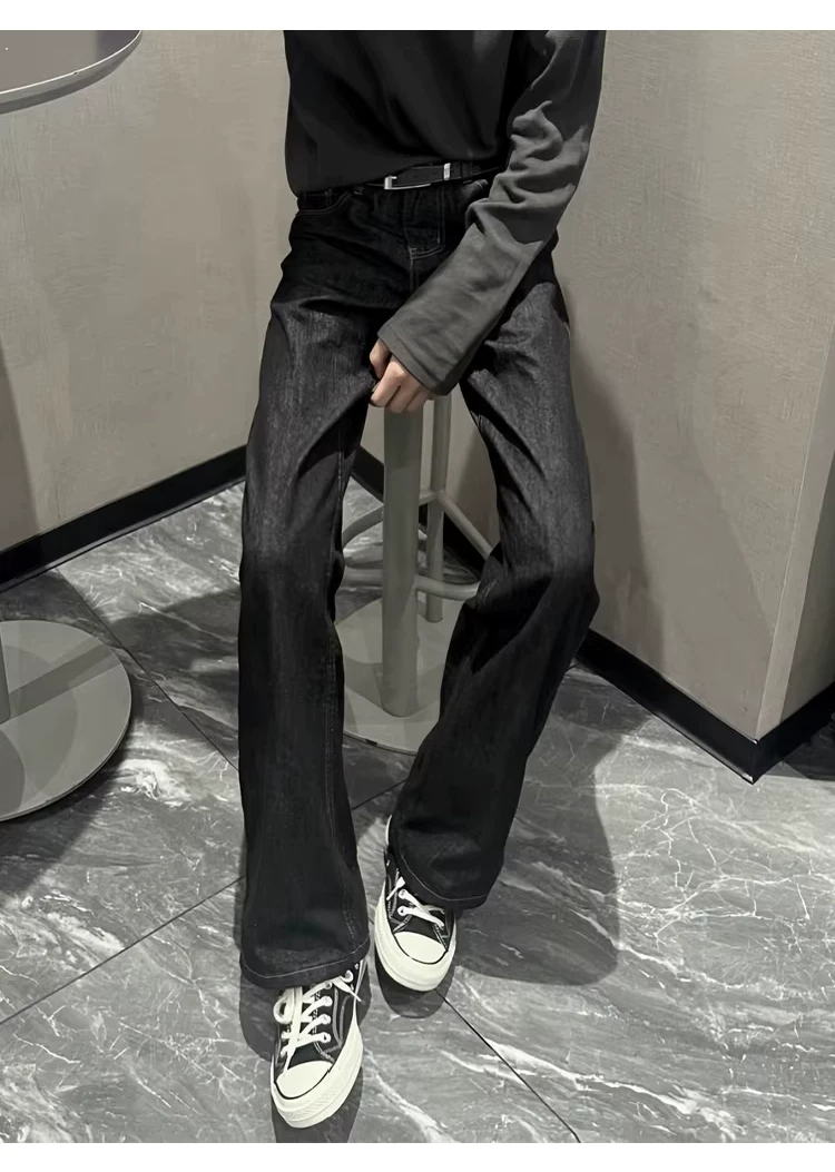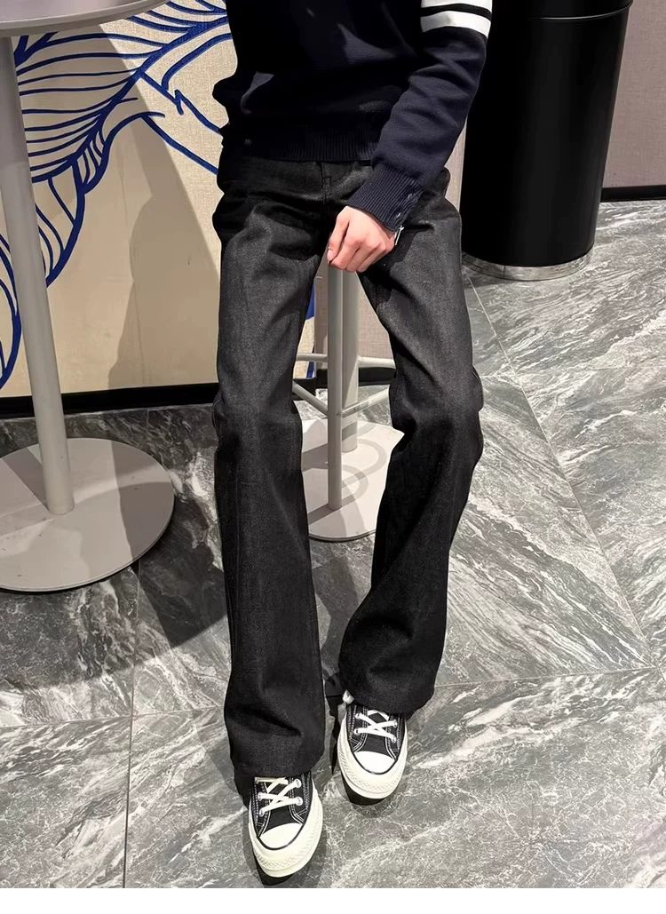 - Quần jeans nam phong cách retro Mỹ, dáng thẳng hơi loe, chất liệu cao cấp, thích hợp cho mùa xuân thu, quần dài chạm đất, thương hiệu thời thượng.