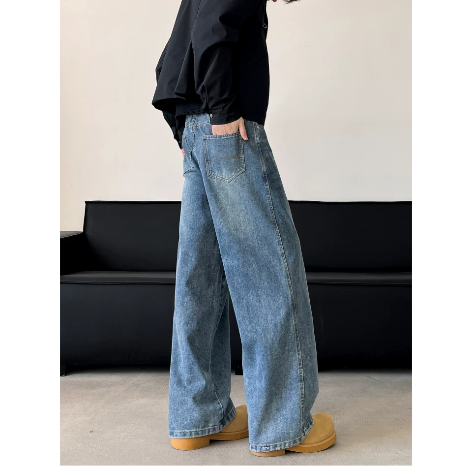 - Quần jeans nam vintage đã qua xử lý, dành cho mùa thu đông, phong cách retro Mỹ, thương hiệu thời thượng, quần dài ống rộng thoải mái.