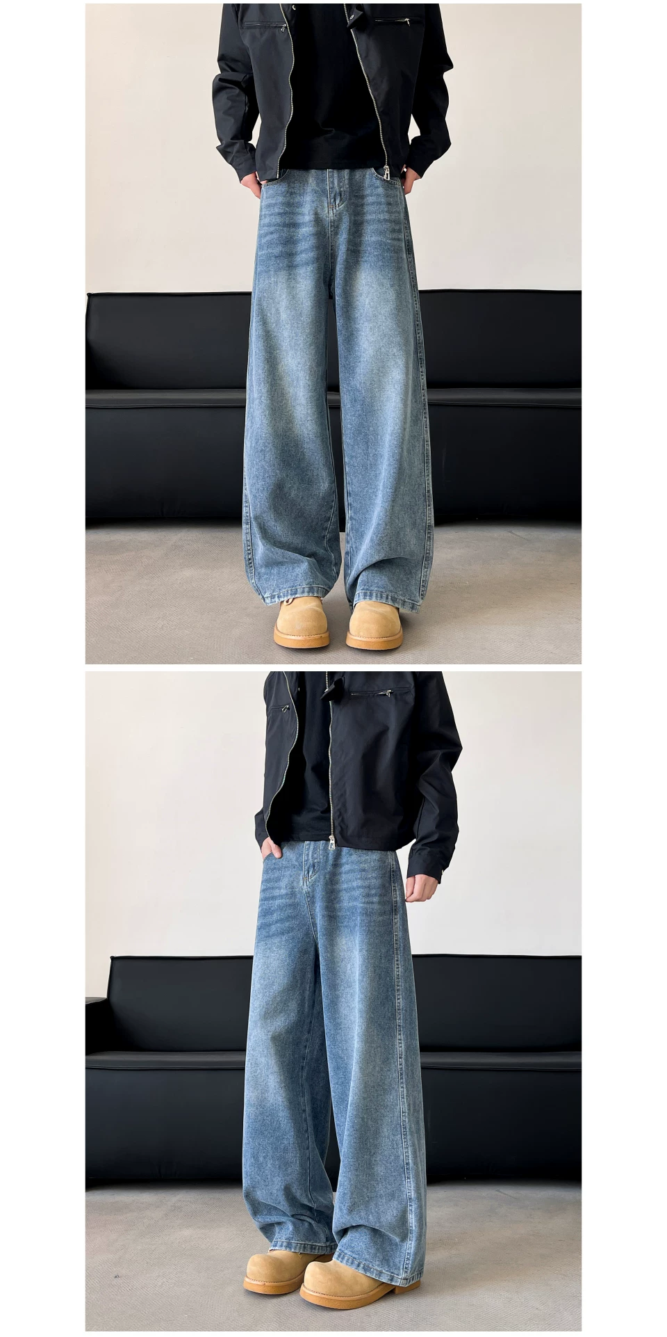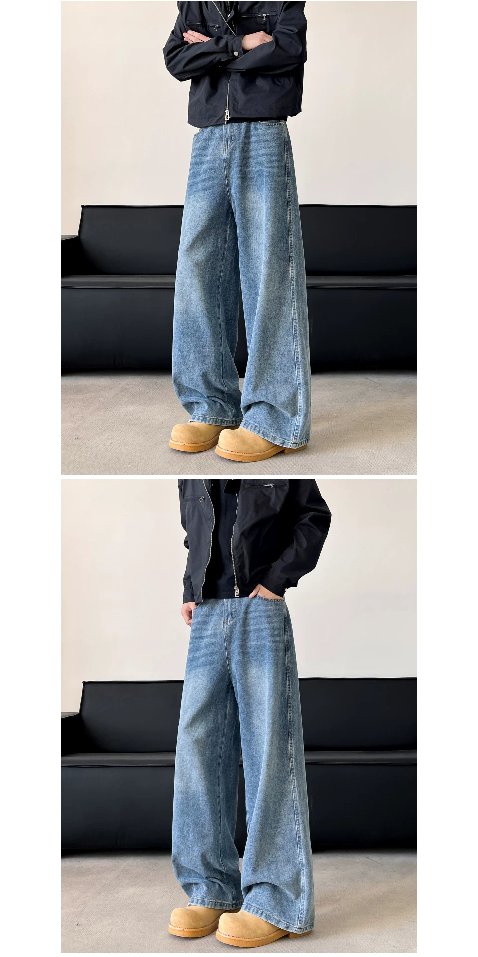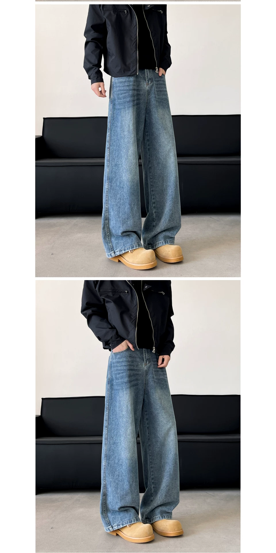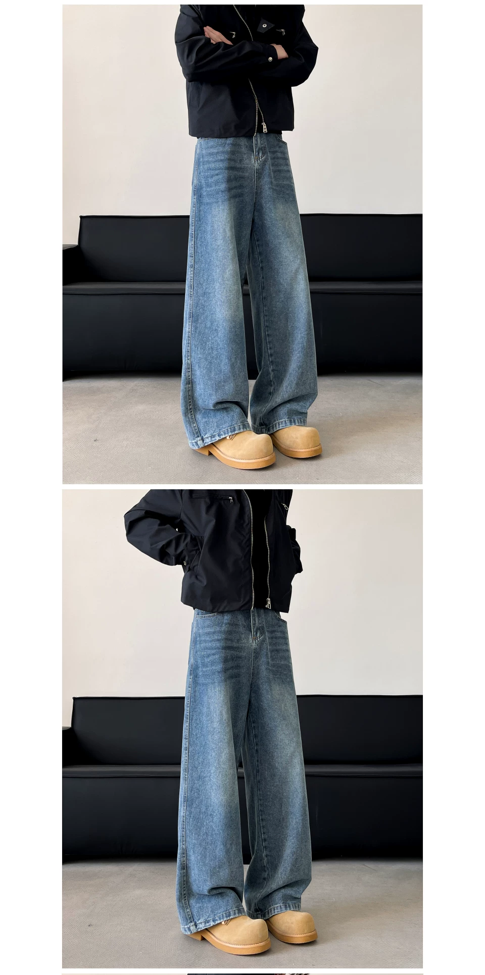 Quần jeans nam vintage đã qua xử lý, dành cho mùa thu đông, phong cách retro Mỹ, thương hiệu thời thượng, quần dài ống rộng thoải mái.