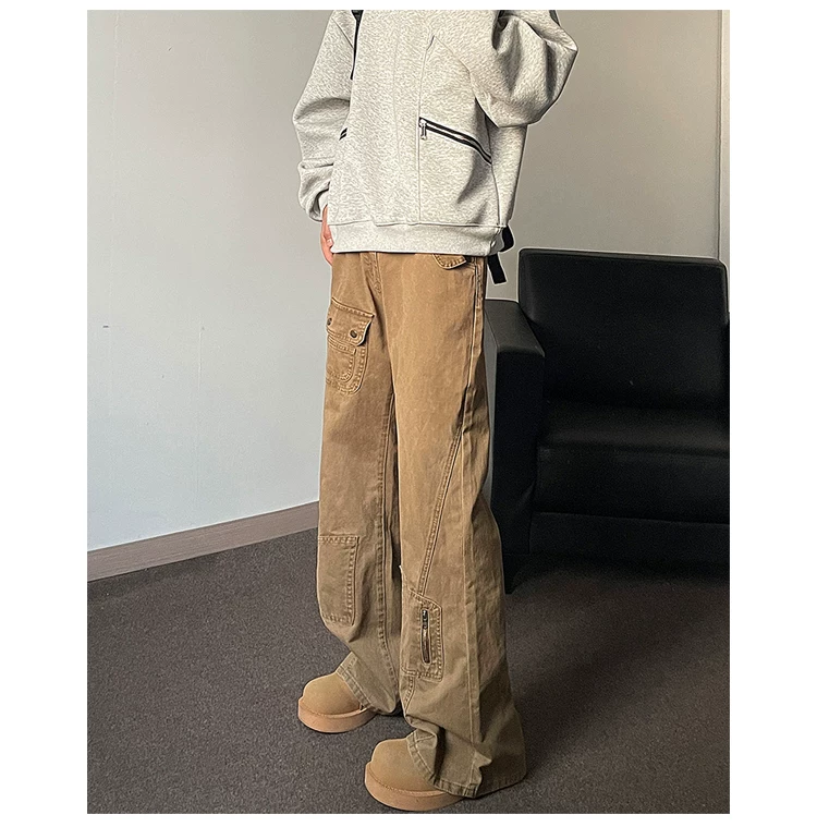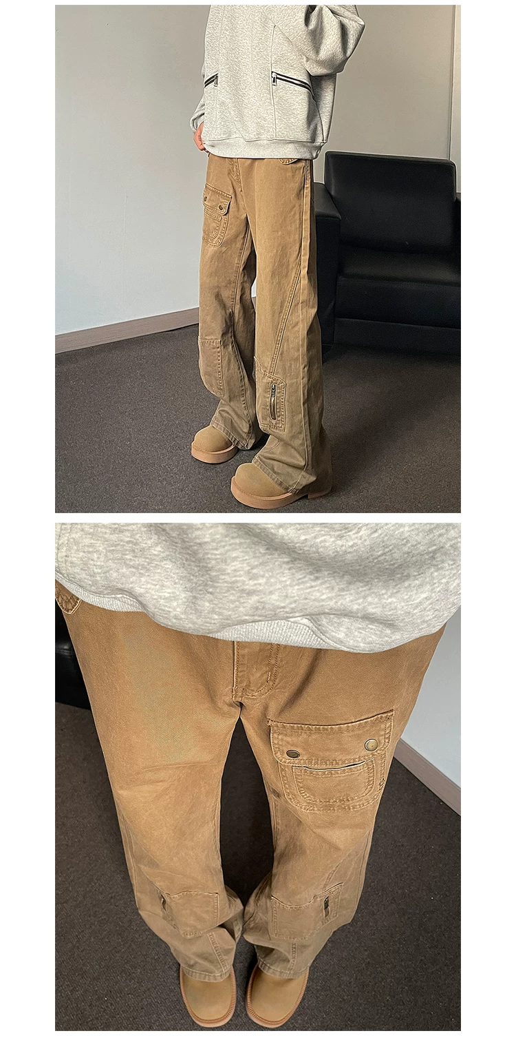 - Quần jeans nam vintage mùa xuân thu, quần kiểu Mỹ thời thượng, ống đứng, hơi loe, quần công sở thường ngày.