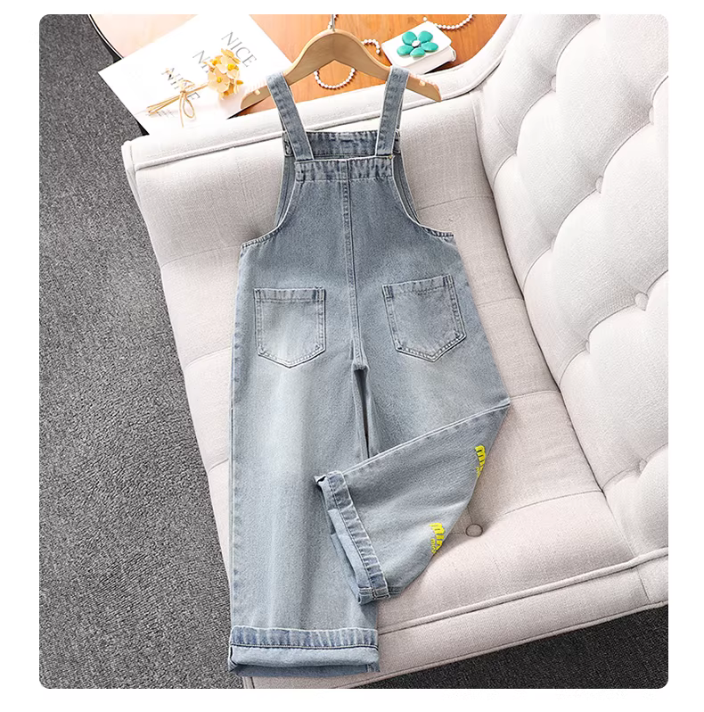 - Quần jeans nữ bé gái xuân thu 2025 kiểu mới, quần yếm ống thẳng phong cách Hàn Quốc, quần ống rộng trẻ em