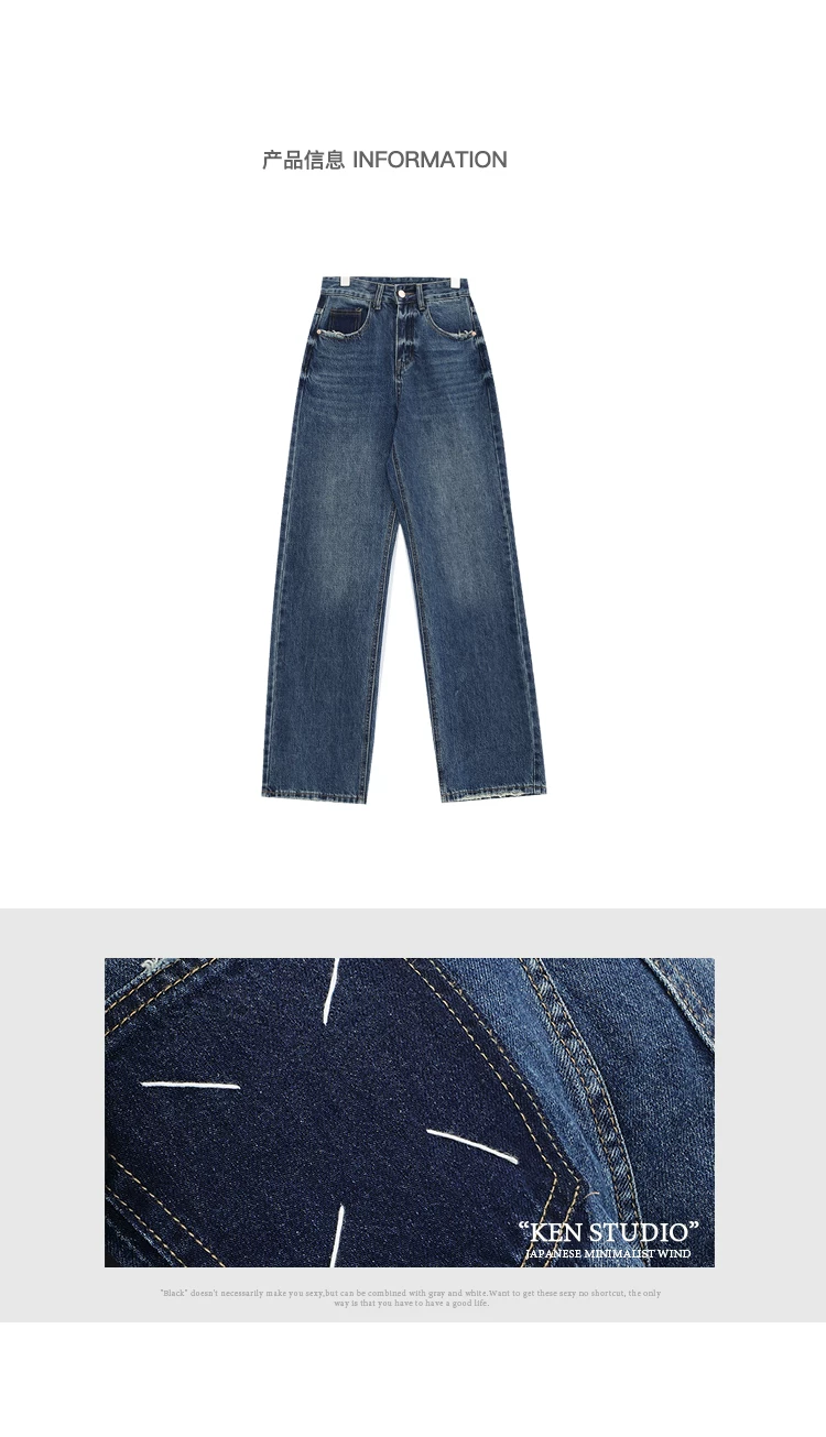 - Quần jeans nữ ống đứng lót lông mùa thu đông KEN STUDIO2025, quần ống rộng cạp cao màu xanh cổ điển