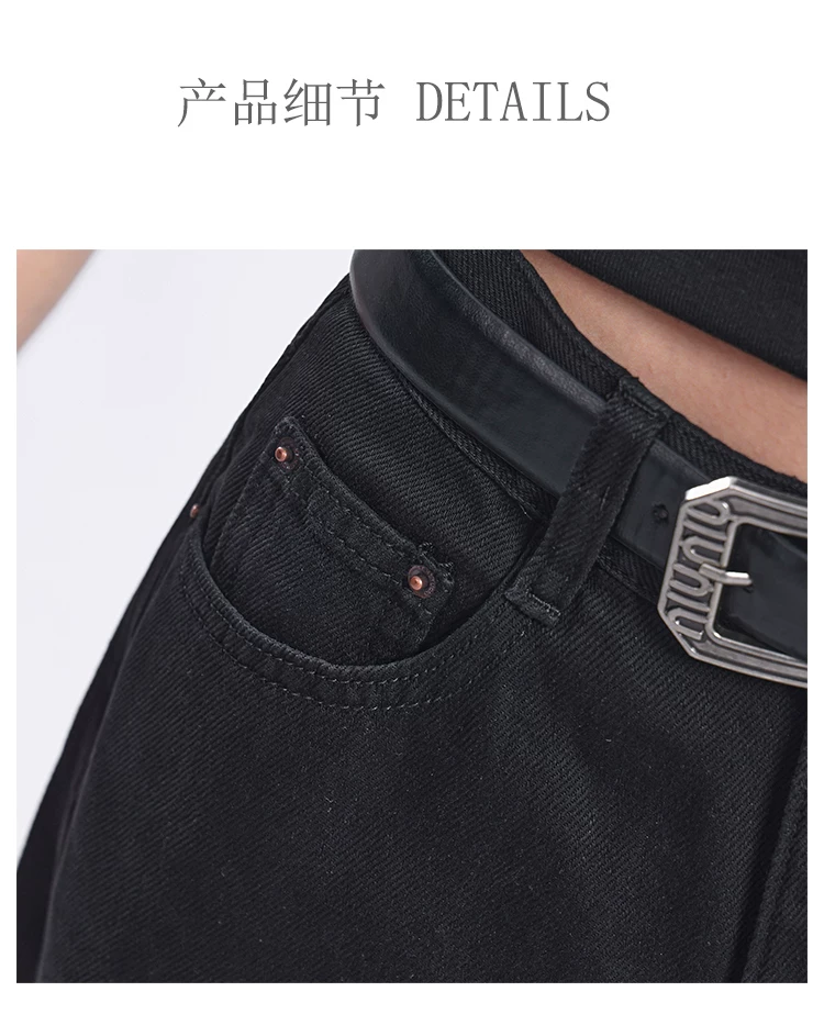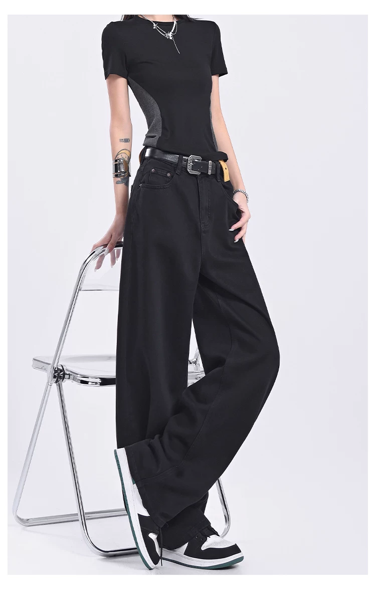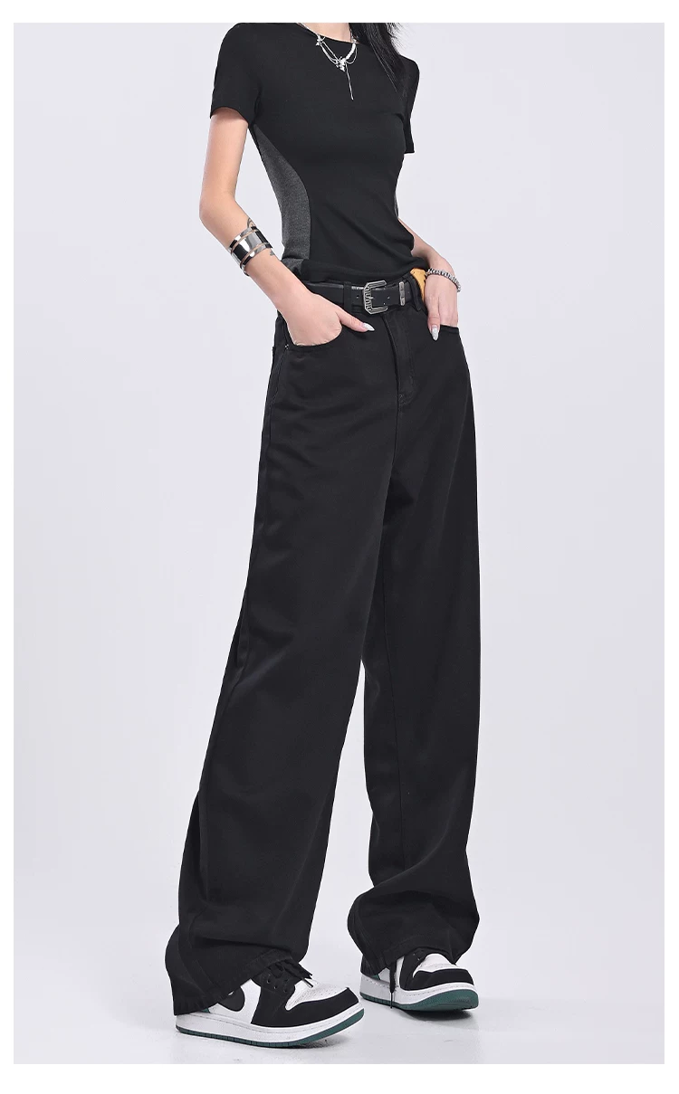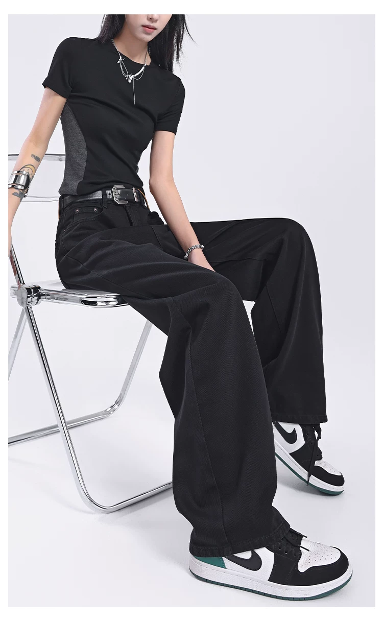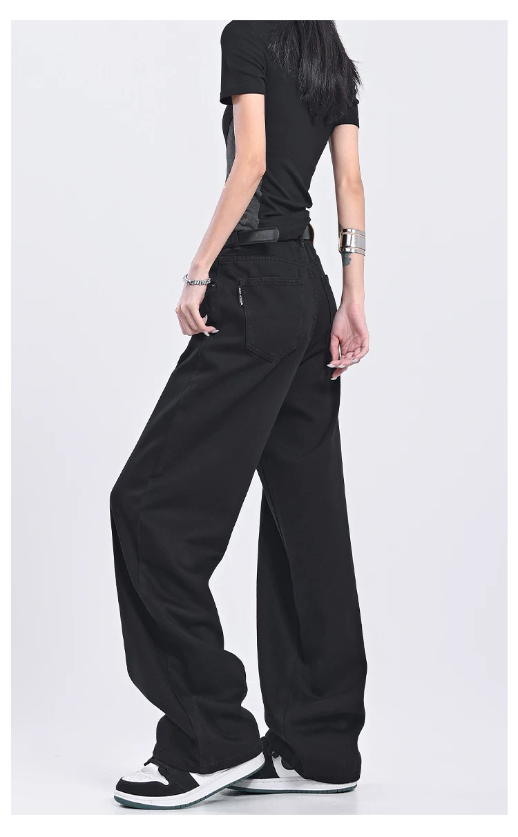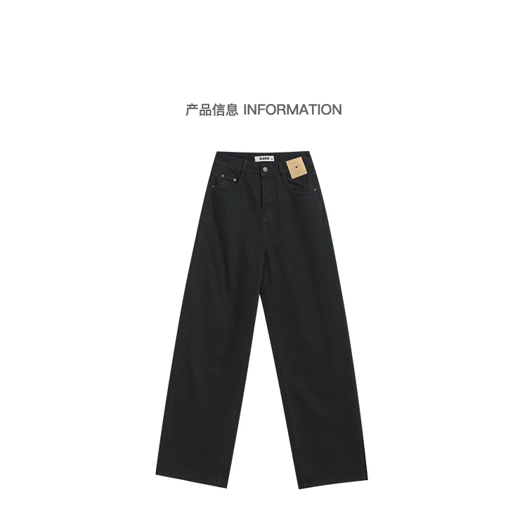 - Quần jeans ống đứng đen retro mới của KEN STUDIO2025 dành cho nữ, cạp cao, dáng rộng, quần ống rộng tôn dáng