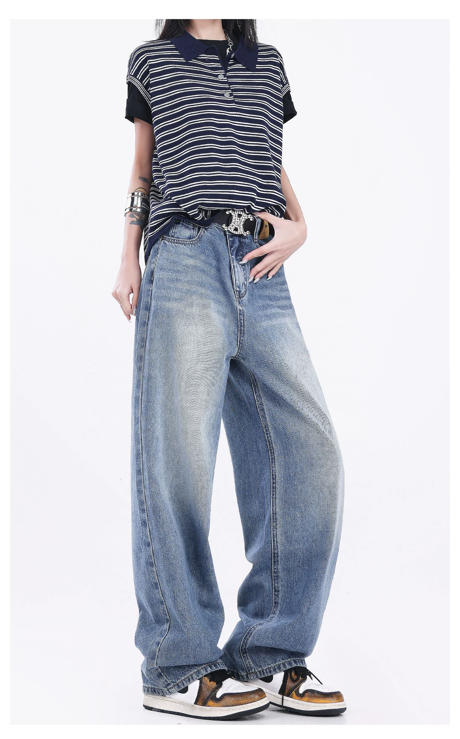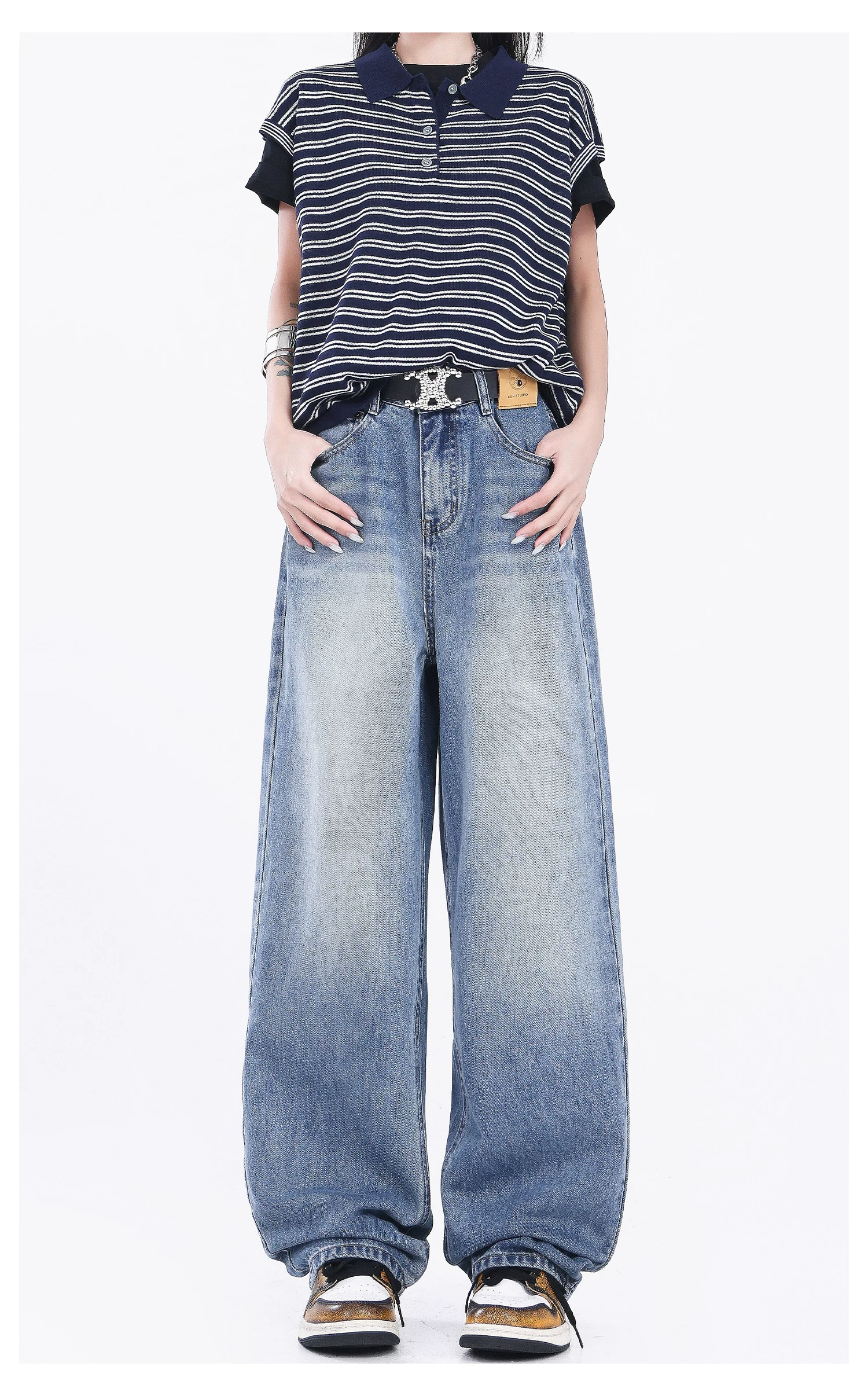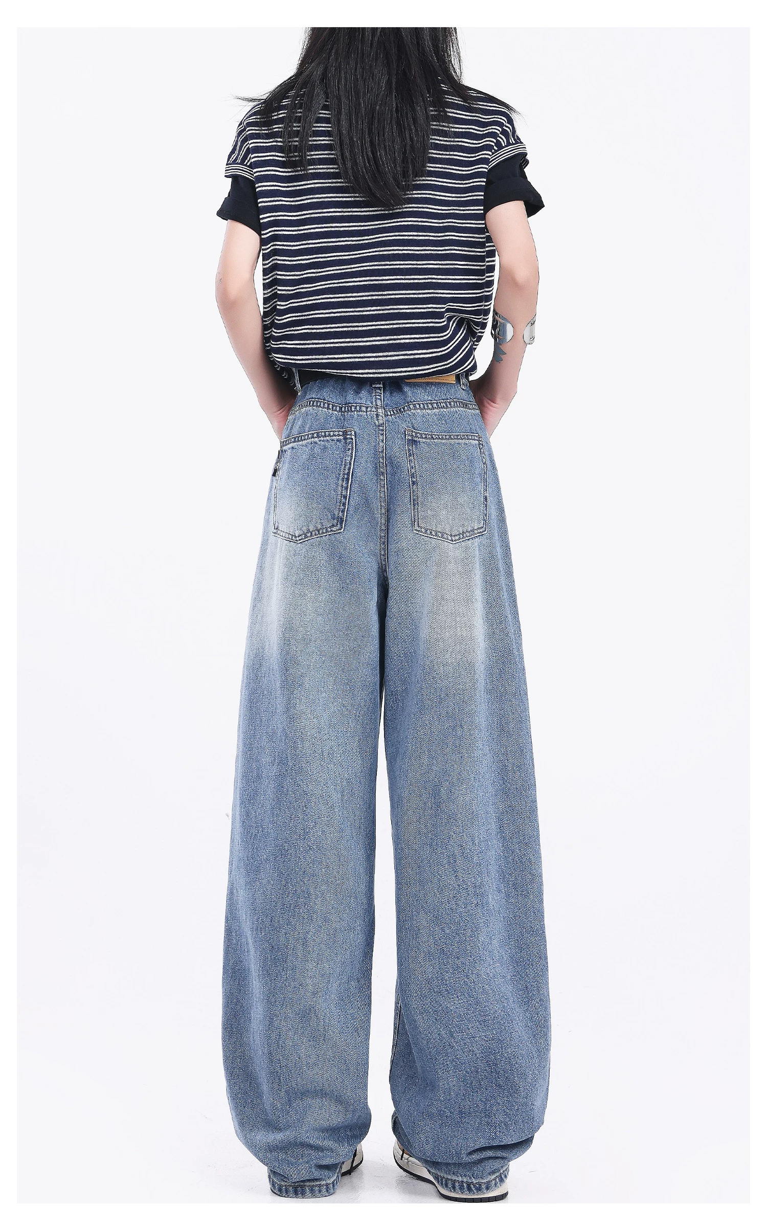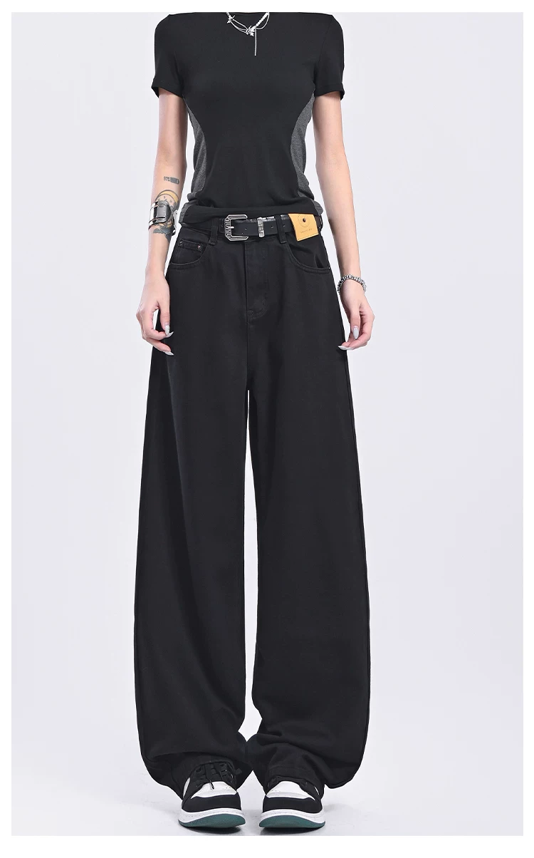 - Quần jeans ống đứng đen retro mới của KEN STUDIO2025 dành cho nữ, cạp cao, dáng rộng, quần ống rộng tôn dáng
