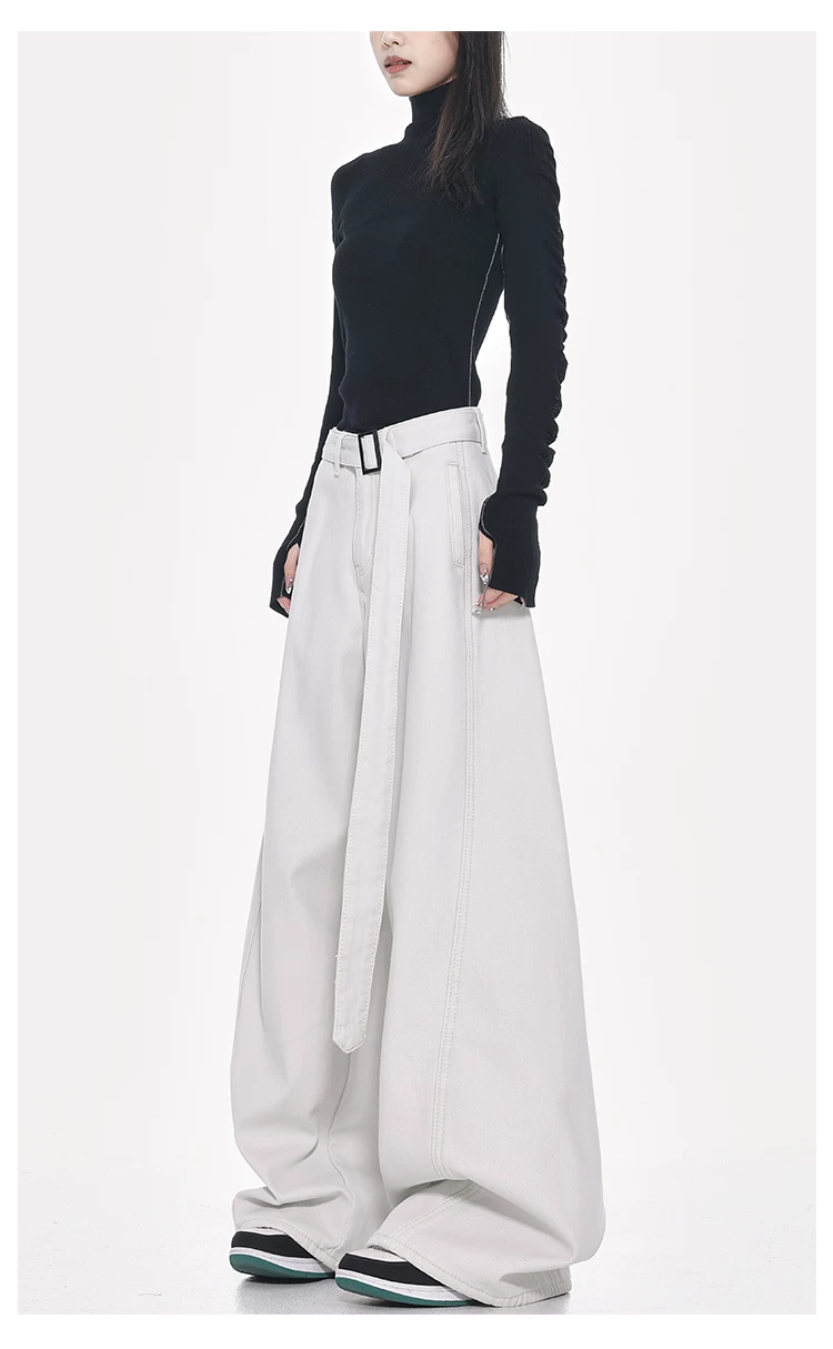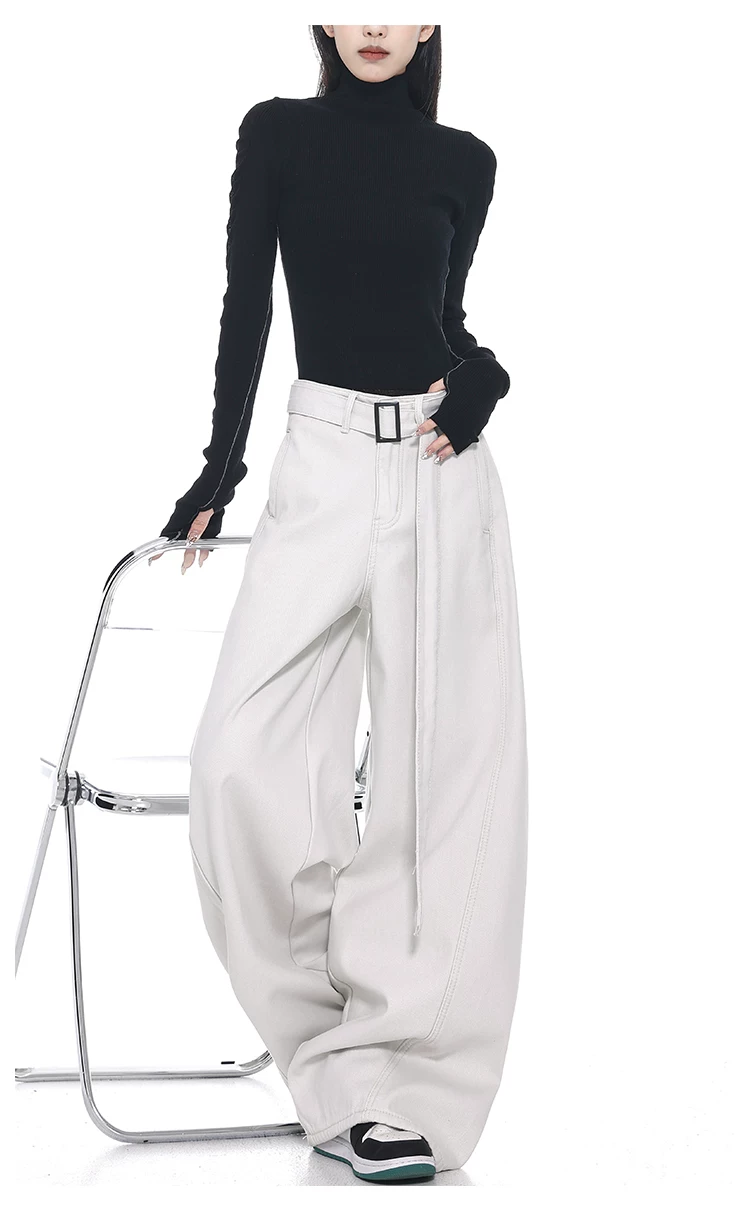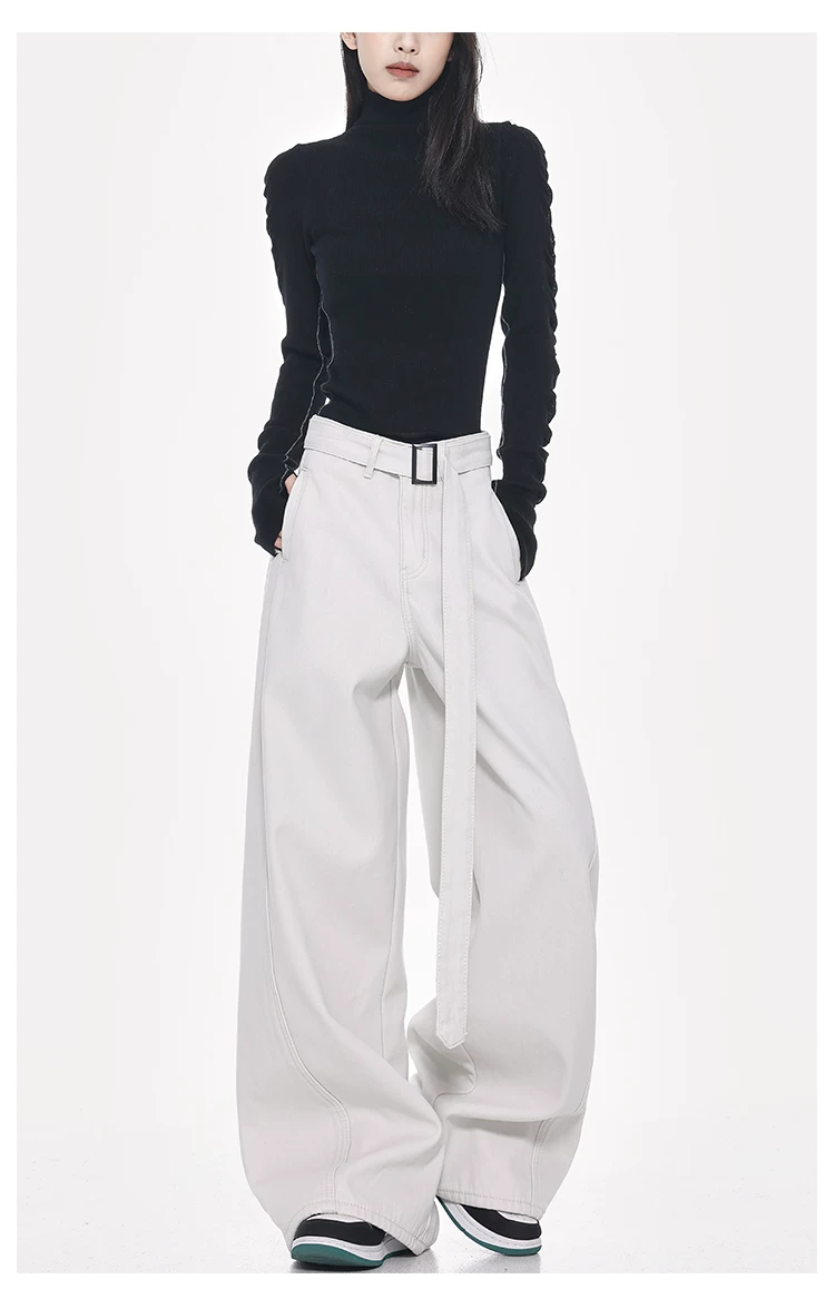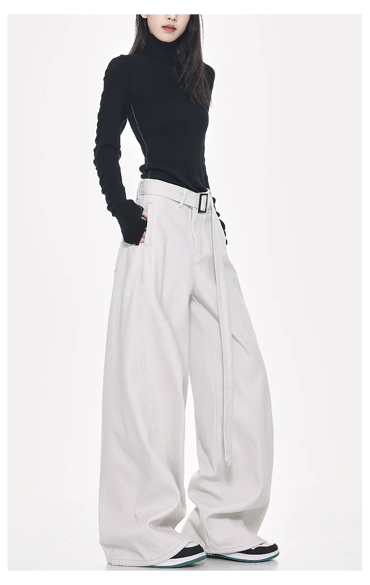 - Quần jeans ống đứng thiết kế thắt lưng trắng kiểu mới Xuân Thu của KEN STUDIO dành cho nữ, cạp cao, dáng rộng, tôn dáng