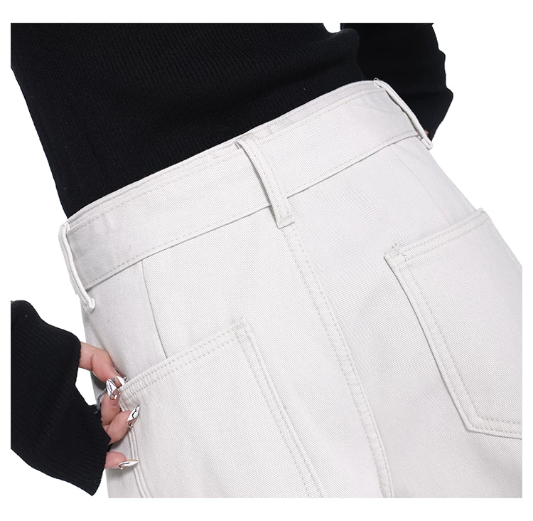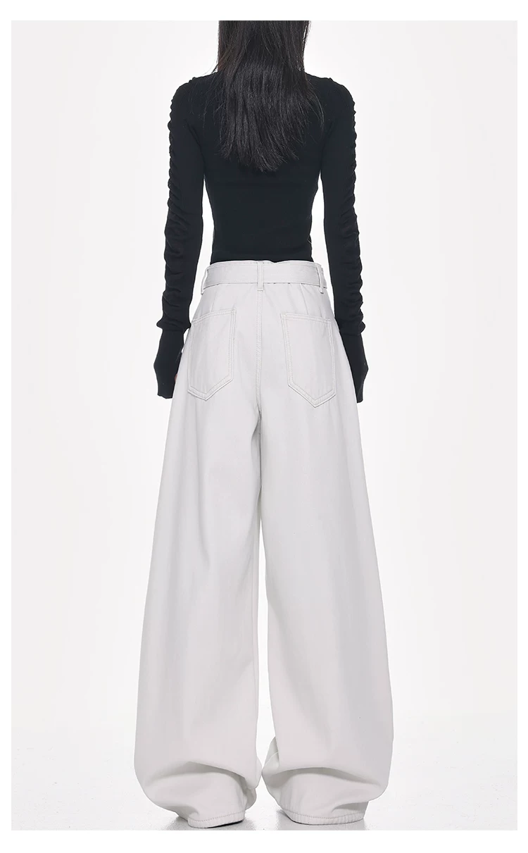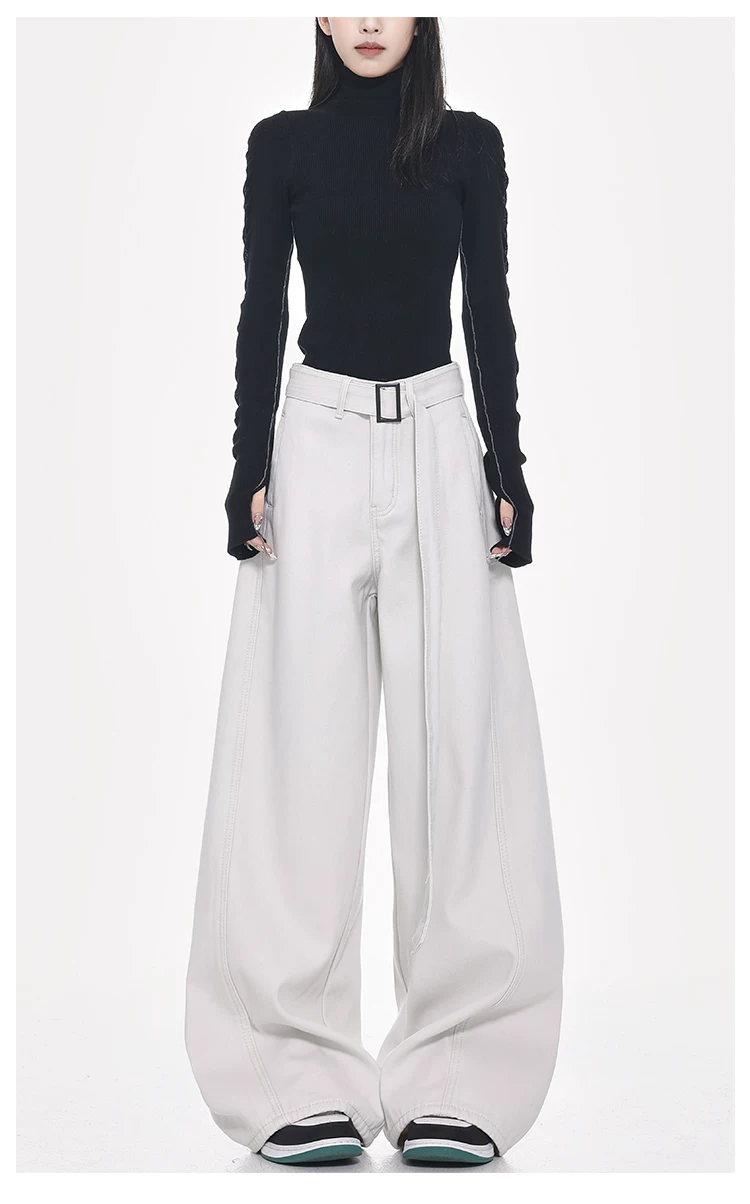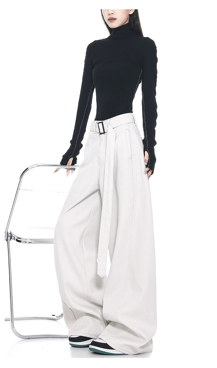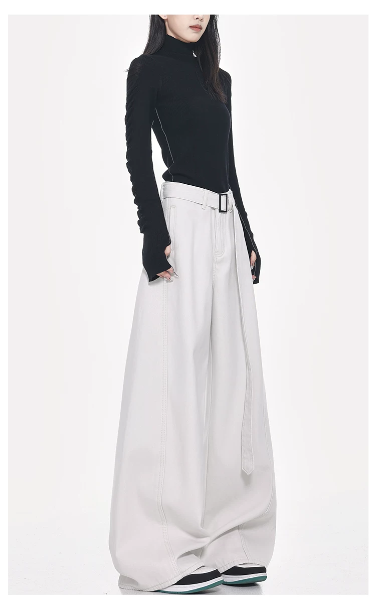 - Quần jeans ống đứng thiết kế thắt lưng trắng kiểu mới Xuân Thu của KEN STUDIO dành cho nữ, cạp cao, dáng rộng, tôn dáng