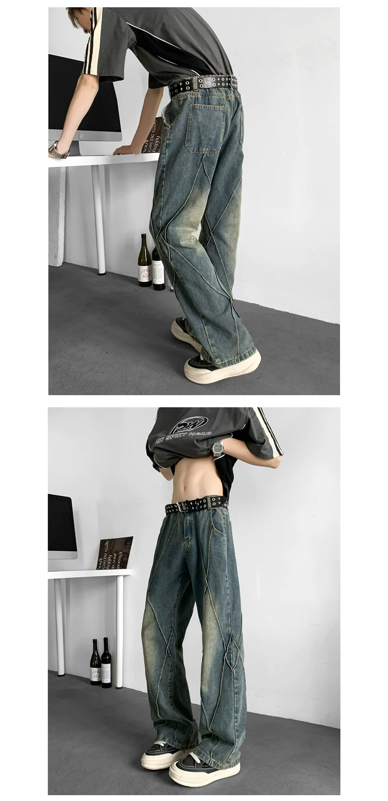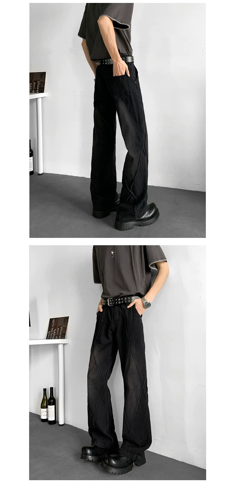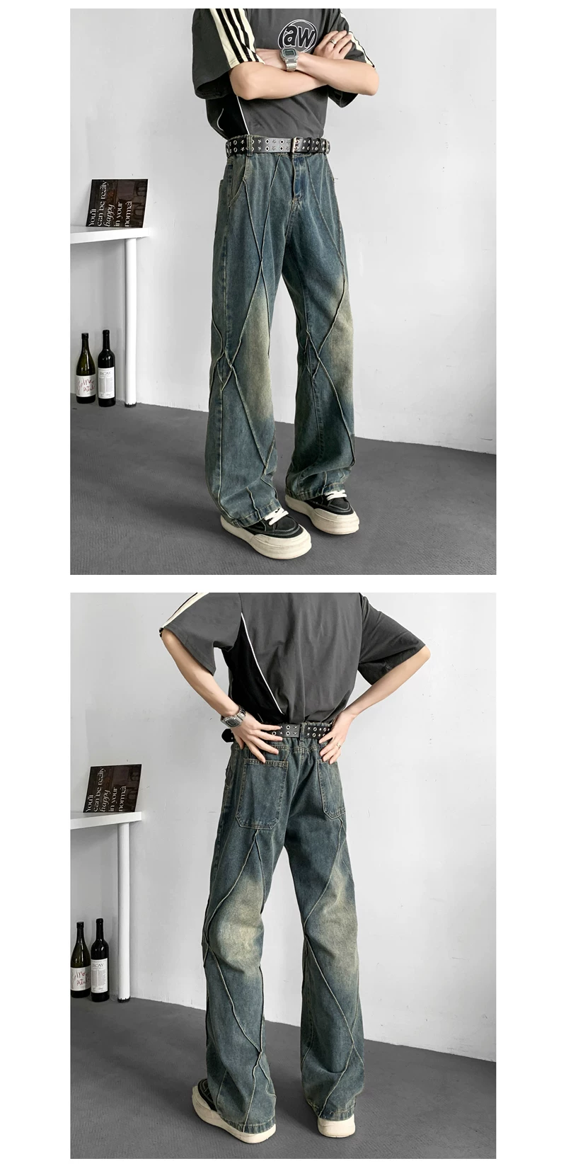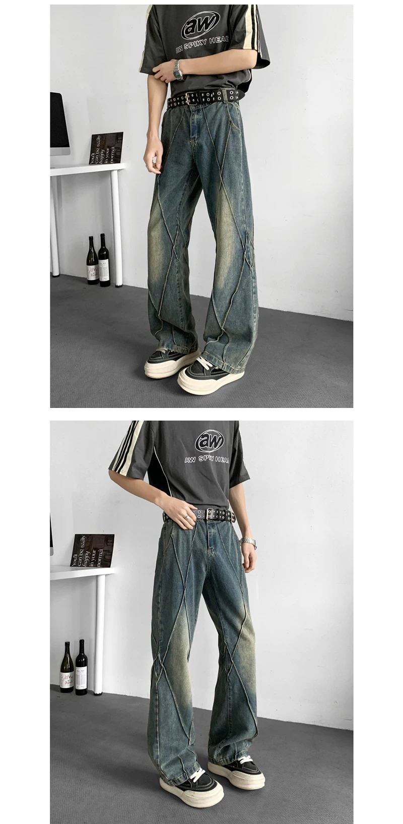 Quần jeans ống loe nam kiểu dáng phá cách mùa hè, quần ống rộng thẳng phong cách Mỹ.